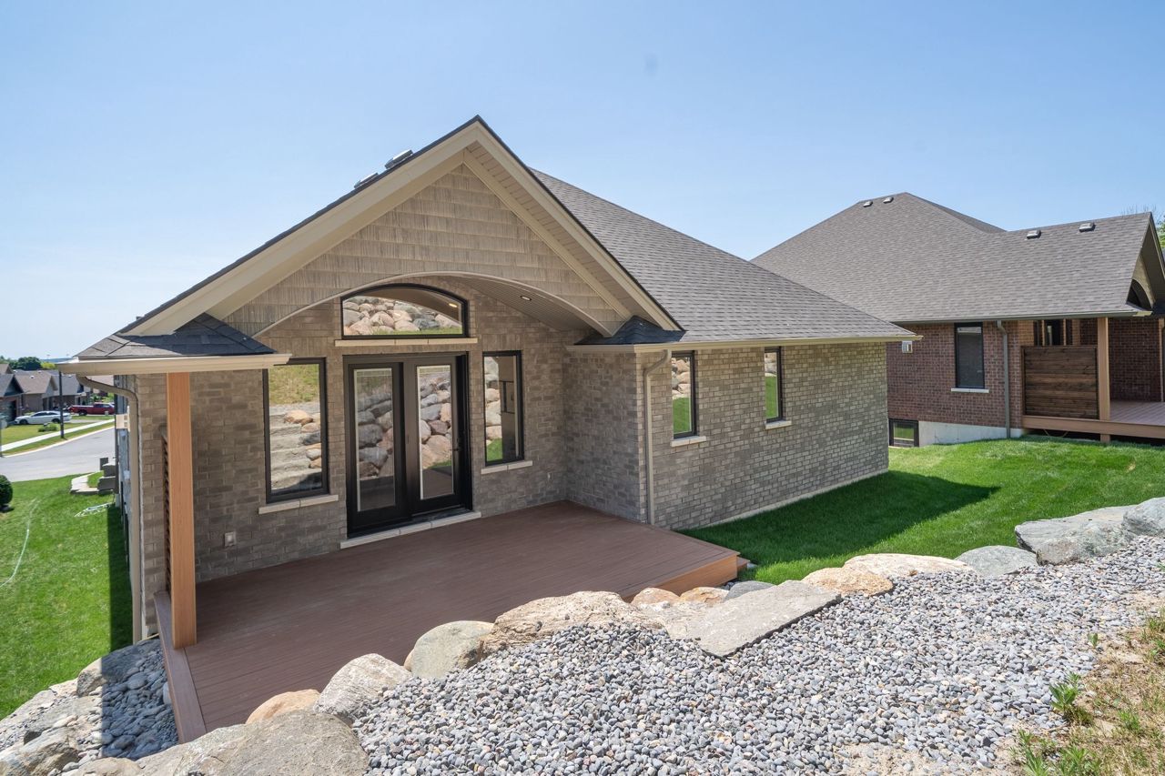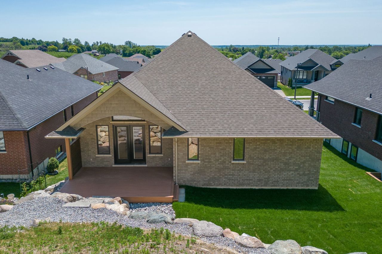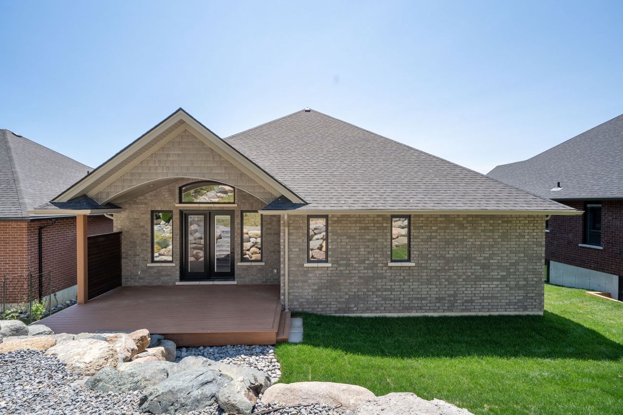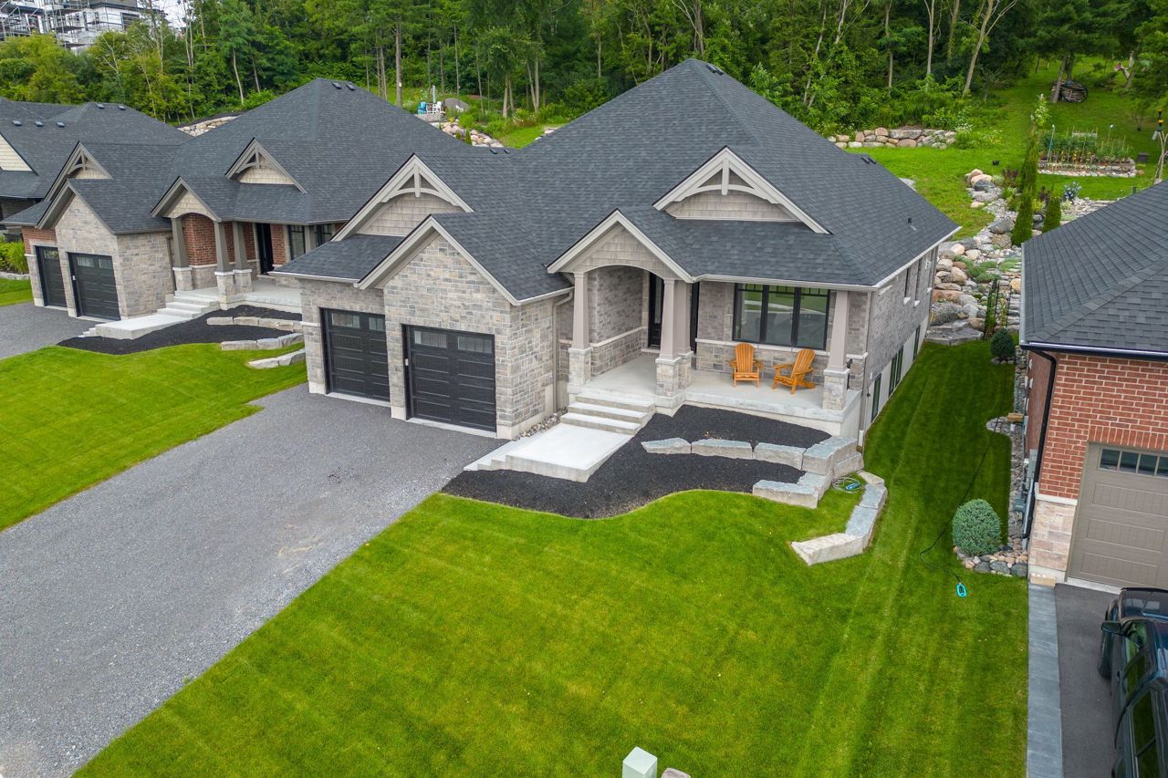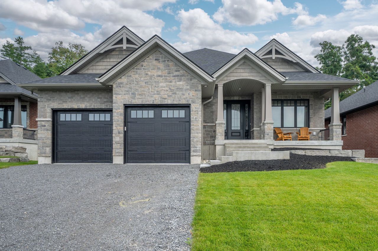 Stunning 4 bed, 3 bath home in sought-after Tackaberry Ridge subdivision on a rare half acre lot with hilltop views of Presqu'ile Bay. Craftsman style front porch & leaded glass front door lead to bright interior with elegant natural materials & modern accents. White oak hardwood floors & stately dining area lead to vaulted kitchen & living room with hewn beam accents & natural stone backdrop. Carefully designed kitchen with quartz counters, lit feature cabinets, & modern gold & black fixtures. Main floor primary suite with feature windows overlooking backyard & 4pc ensuite bath. Fully finished lower level with 2 additional bedrooms & attractive bath. Exclusive lot offers rare in-town space & overlook toward Presqu'ile Bay. Located in Brighton, this Len Kuipers Home offers an incomparably balanced lifestyle in a luxurious home.