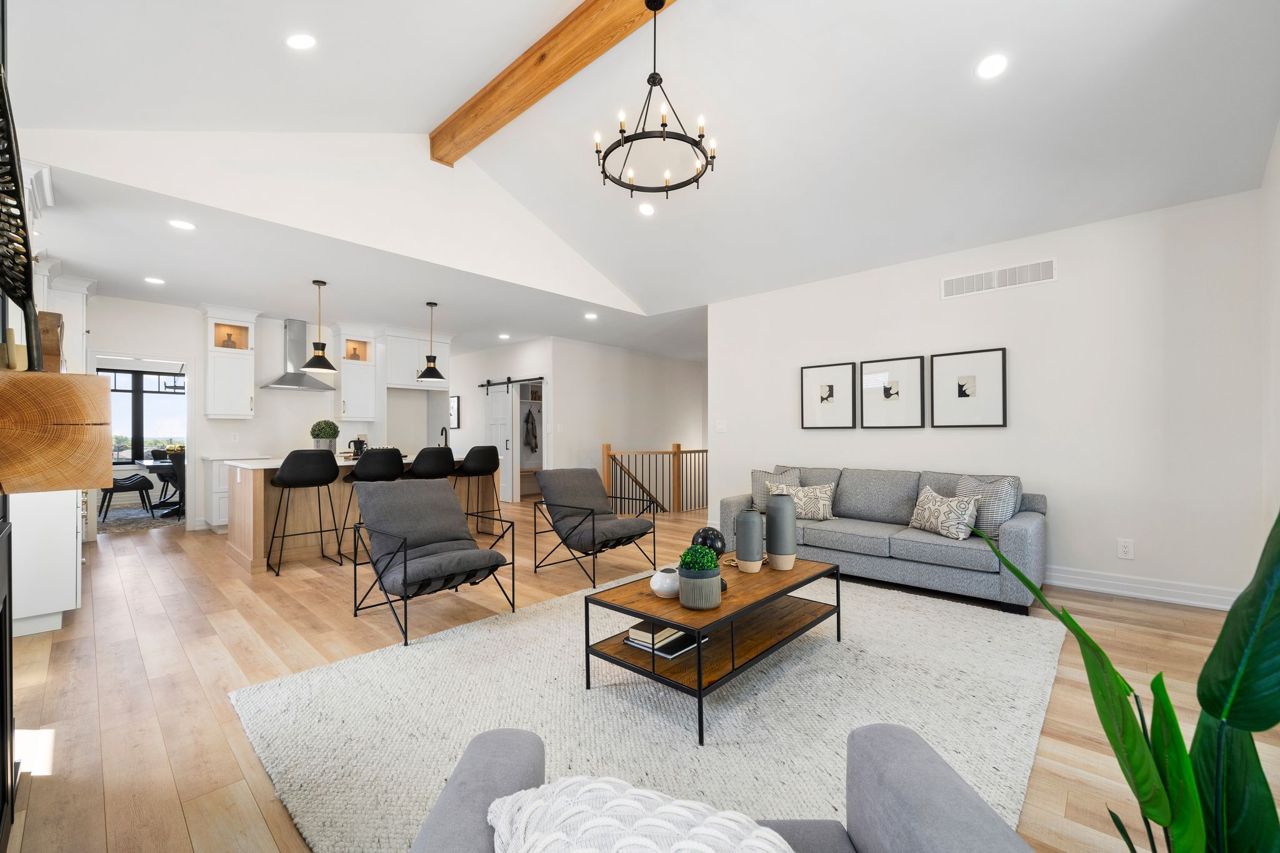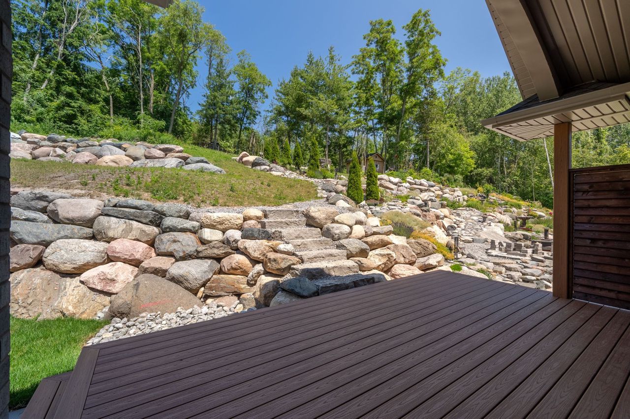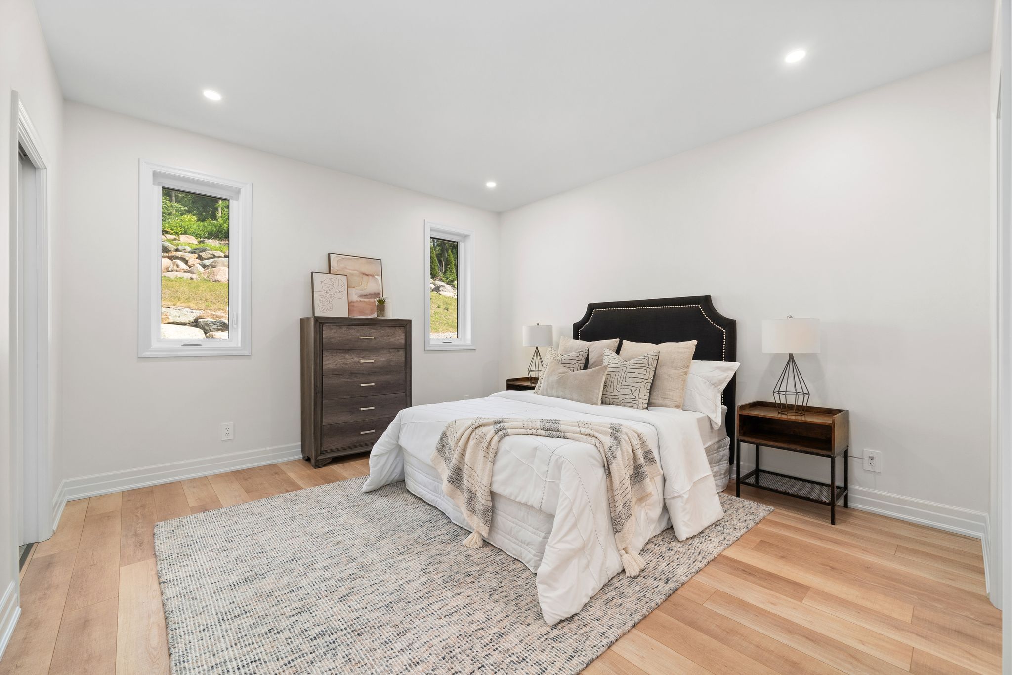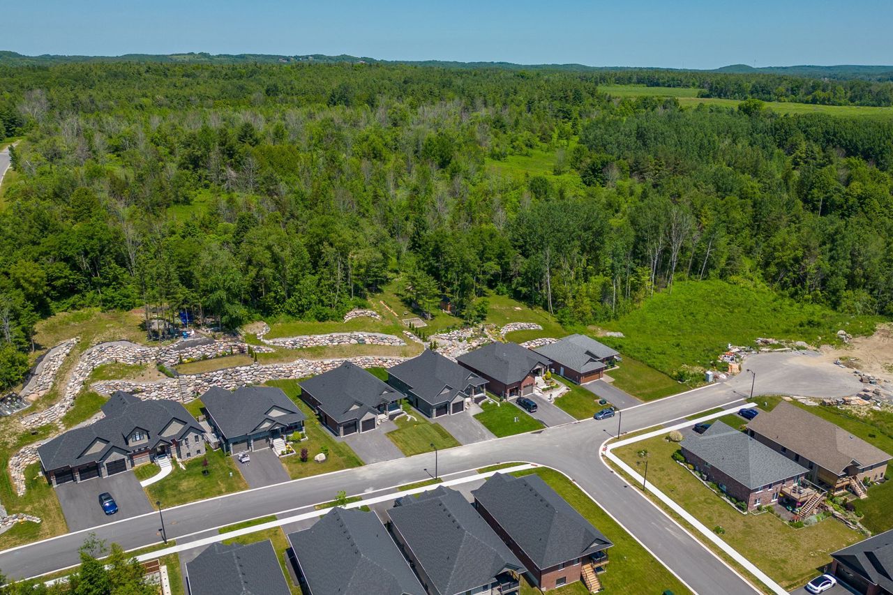 Stunning 4 bed, 3 bath home in sought-after Tackaberry Ridge subdivision on a rare half acre lot with hilltop views of Presqu'ile Bay. Craftsman style front porch & leaded glass front door lead to bright interior with elegant natural materials & modern accents. White oak hardwood floors & stately dining area lead to vaulted kitchen & living room with hewn beam accents & natural stone backdrop. Carefully designed kitchen with quartz counters, lit feature cabinets, & modern gold & black fixtures. Main floor primary suite with feature windows overlooking backyard & 4pc ensuite bath. Fully finished lower level with 2 additional bedrooms & attractive bath. Exclusive lot offers rare in-town space & overlook toward Presqu'ile Bay. Located in Brighton, this Len Kuipers Home offers an incomparably balanced lifestyle in a luxurious home.