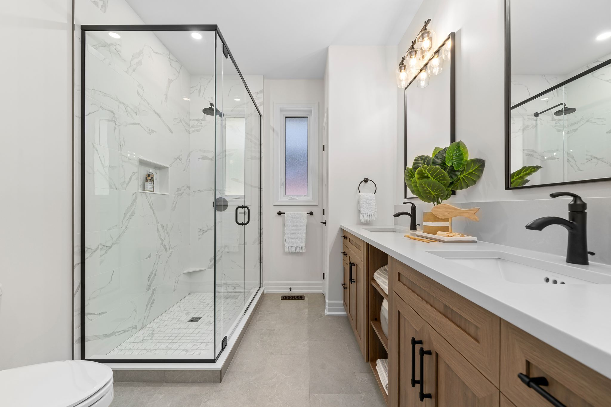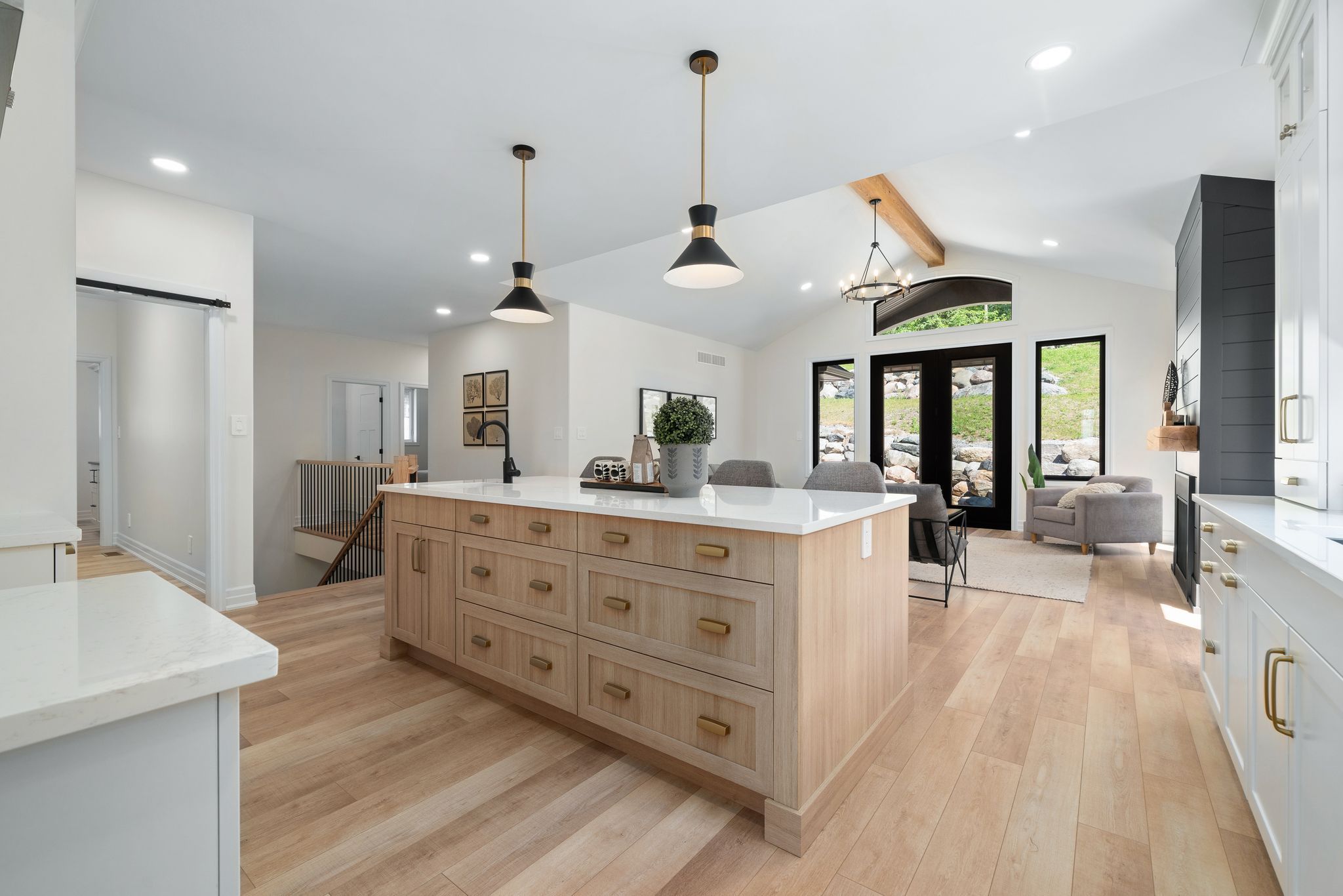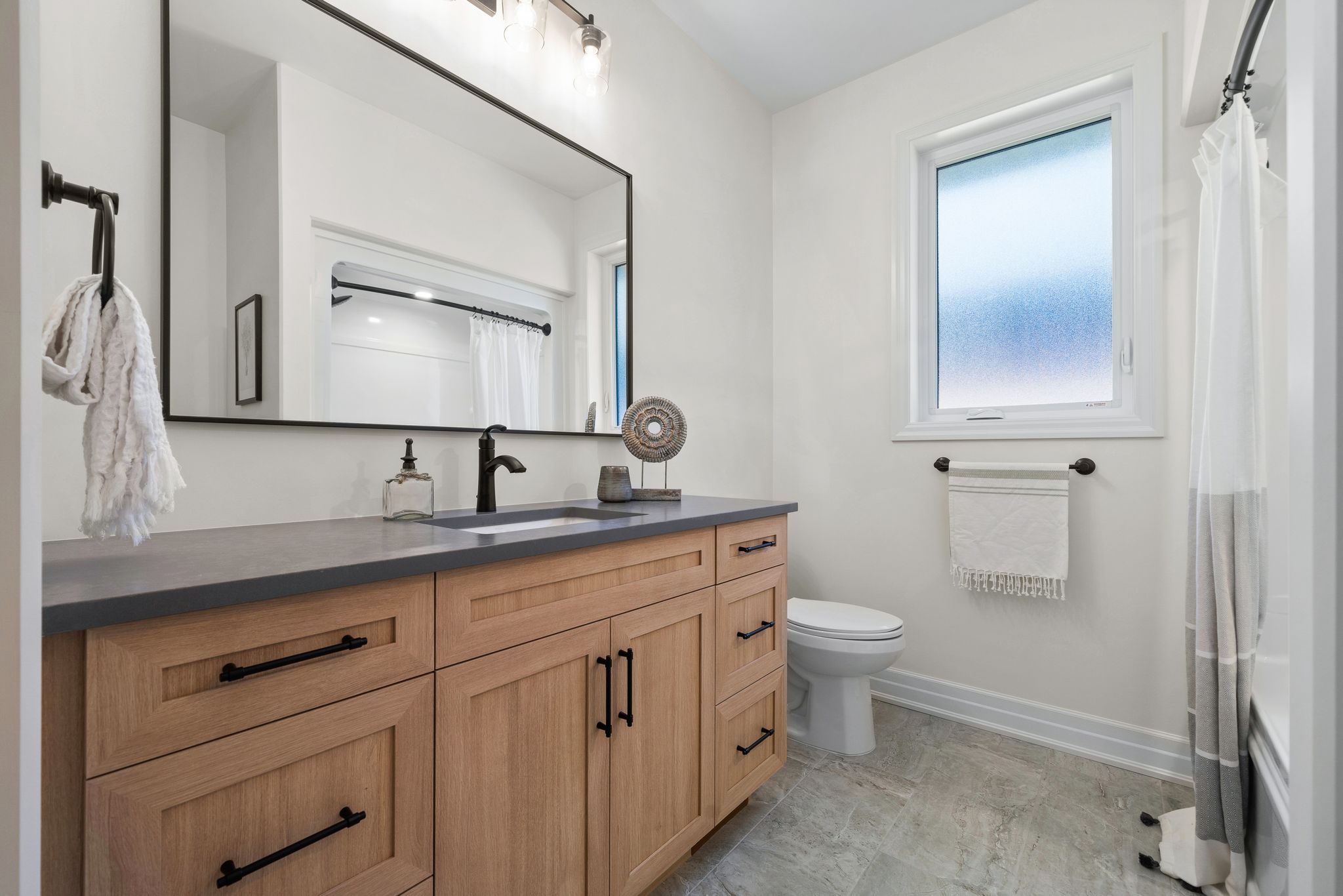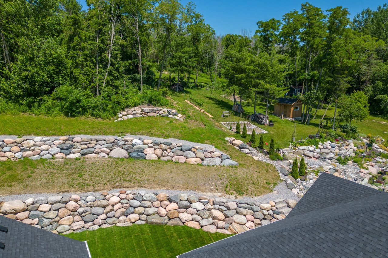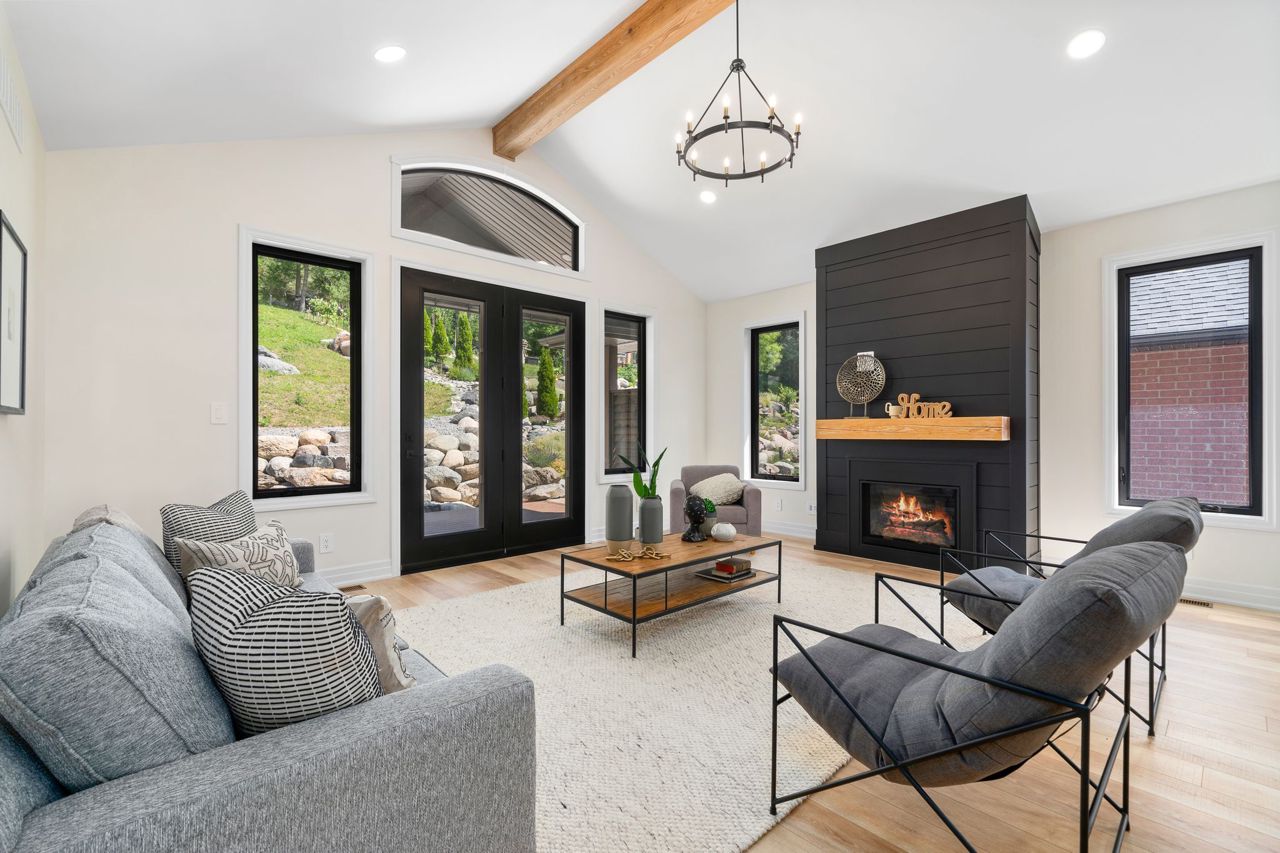 Stunning 4 bed, 3 bath home in sought-after Tackaberry Ridge subdivision on a rare half acre lot with hilltop views of Presqu'ile Bay. Craftsman style front porch & leaded glass front door lead to bright interior with elegant natural materials & modern accents. White oak hardwood floors & stately dining area lead to vaulted kitchen & living room with hewn beam accents & natural stone backdrop. Carefully designed kitchen with quartz counters, lit feature cabinets, & modern gold & black fixtures. Main floor primary suite with feature windows overlooking backyard & 4pc ensuite bath. Fully finished lower level with 2 additional bedrooms & attractive bath. Exclusive lot offers rare in-town space & overlook toward Presqu'ile Bay. Located in Brighton, this Len Kuipers Home offers an incomparably balanced lifestyle in a luxurious home.