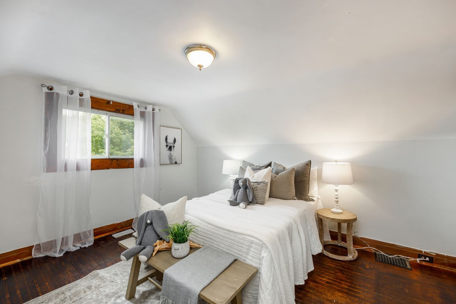Sunderland Charmer!! Cute as a button this home sits on a 50ft by 102ft in town lot with all municipal services including natural gas! Features of this home include 16ft by 24ft detached garage built in 2010, new roof and shingles in '19, newer gas forced air furnace, AC, fully fenced in yard and a primary bedroom on the main floor!