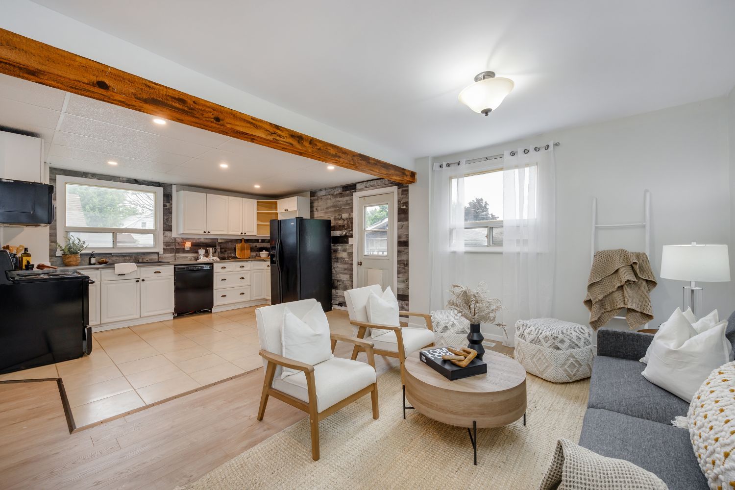 Includes Appliances (As is), Light Fixtures, & Hot Water Tank. AC is a rental and will be paid out on closing. Excluded: Stagers Draperies, Rods will remain.