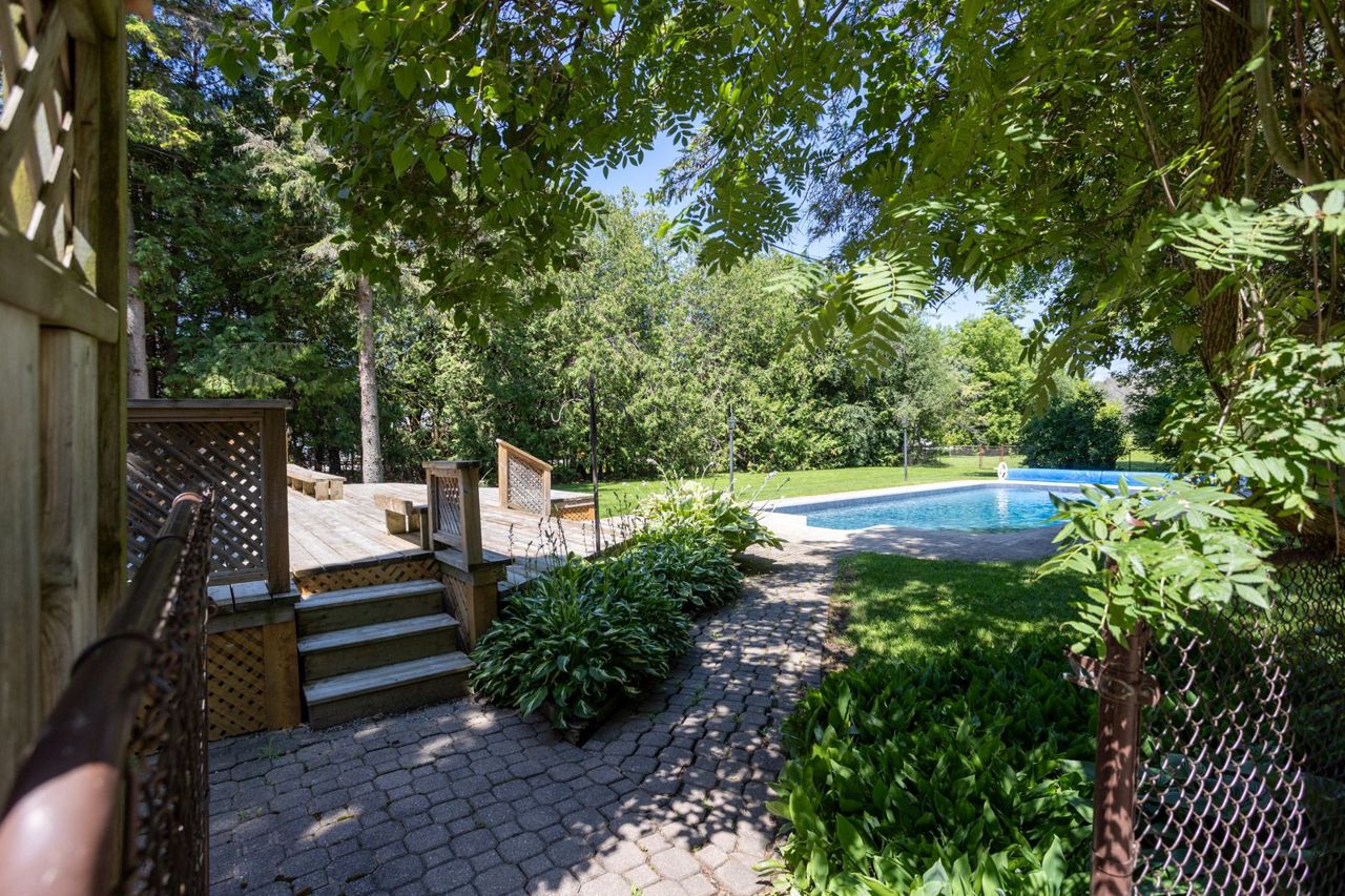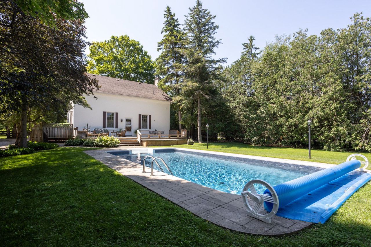 This is your chance to live in a paradise of your own, where nature and tranquility are your neighbors. On this 3 acre property, you have a park lake setting, with a river that flows through it. You can relax in your inground swimming pool (new liner July 2023). Large Country sized kitchen complete with Quartz counters and built in Appliances. This 4 bedroom home is cozy and spacious, with a fireplace, and wood floors. This home is located in a private, quiet area, away from the noise and traffic of the city, yet close to town, amenities and schools. It's a rare opportunity to own a piece of paradise.Private Laneway leads up to the home with circular drive. Large Mature trees. Detached oversized 2 car garage.