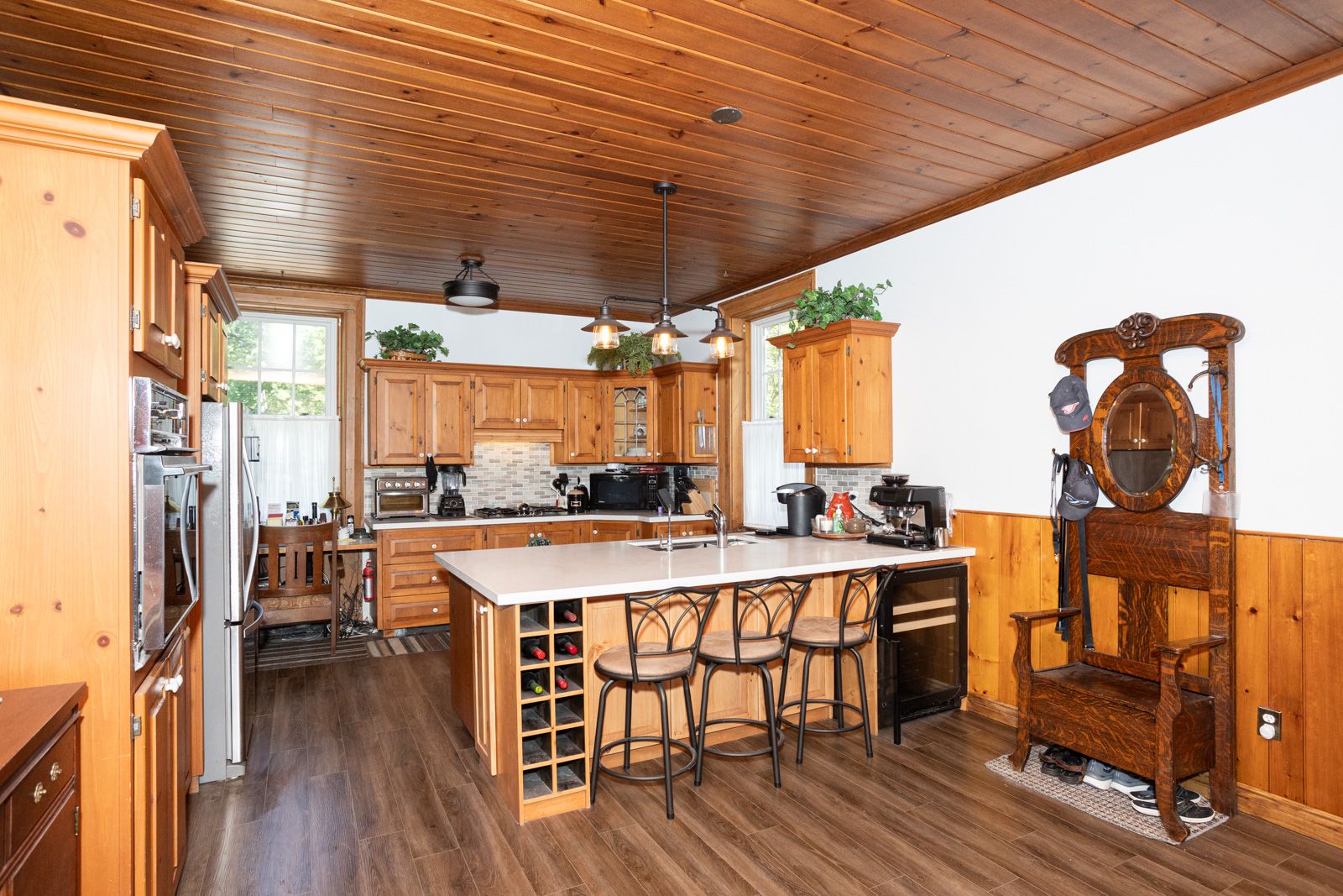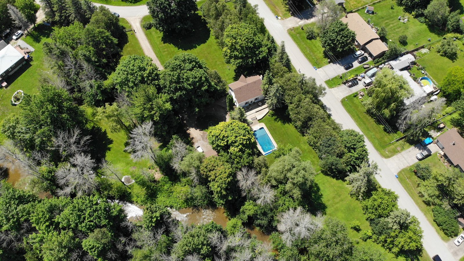 This is your chance to live in a paradise of your own, where nature and tranquility are your neighbors. On this 3 acre property, you have a park lake setting, with a river that flows through it. You can relax in your inground swimming pool (new liner July 2023). Large Country sized kitchen complete with Quartz counters and built in Appliances. This 4 bedroom home is cozy and spacious, with a fireplace, and wood floors. This home is located in a private, quiet area, away from the noise and traffic of the city, yet close to town, amenities and schools. It's a rare opportunity to own a piece of paradise.Private Laneway leads up to the home with circular drive. Large Mature trees. Detached oversized 2 car garage.