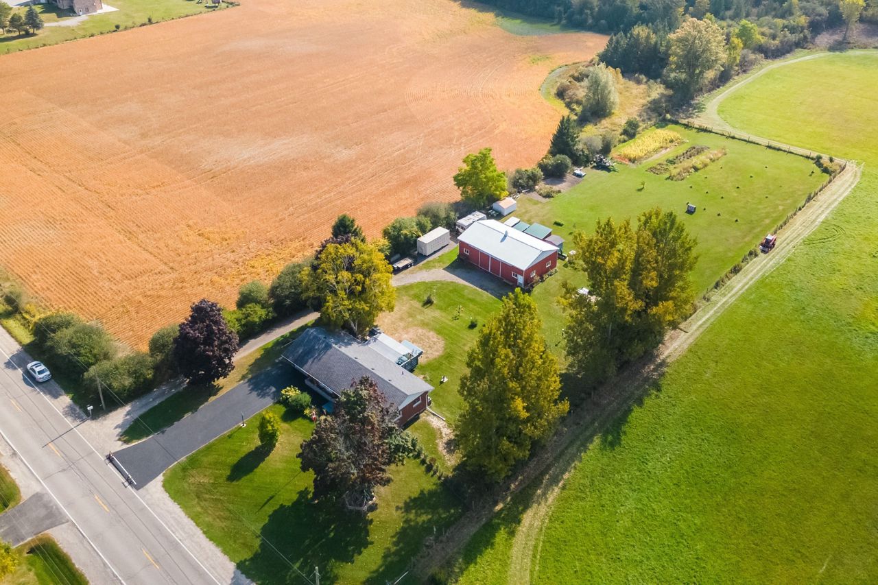 1224 sqft brick bungalow with a workshop on 1.63 acres surrounded by farmers fields right on the edge of Cannington. 3 bedrooms and 1.5 baths on the main floor with mostly hardwood flooring throughout. Bright kitchen with stainless steel appliances. Laundry hookup in a closet off the kitchen but the machines are currently setup in the basement. Finished basement with a 4th bedroom and a storage room that could easily become a 5th bedroom if needed. Attached garage with access directly inside as well as to the back yard. The deck has gas hookups for a bbq and generator. Fully fenced backyard. 30ft x 50ft heated and insulated shop with its own separate laneway. Plenty of gardens. Brand new hot water tank, furnace, and UV light. AC and shingles aprx. 10 years old. Most windows replaced in 2015. 200 amp breaker panel, wired for a generator.
