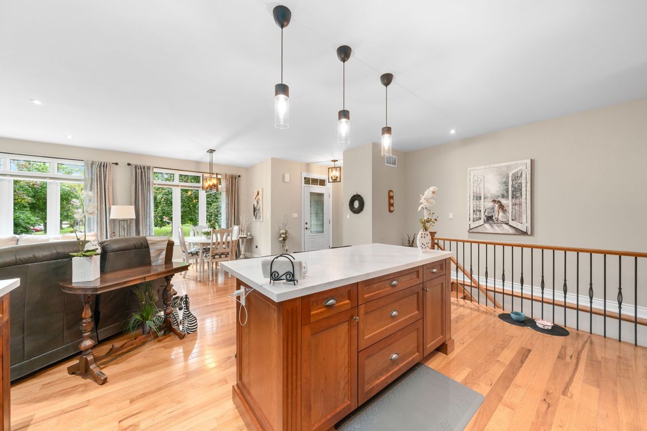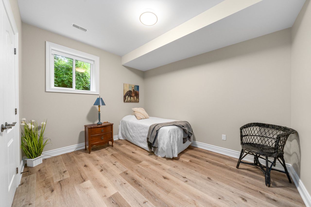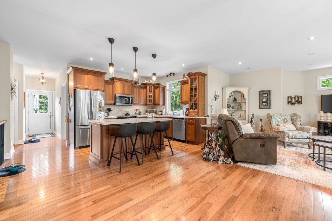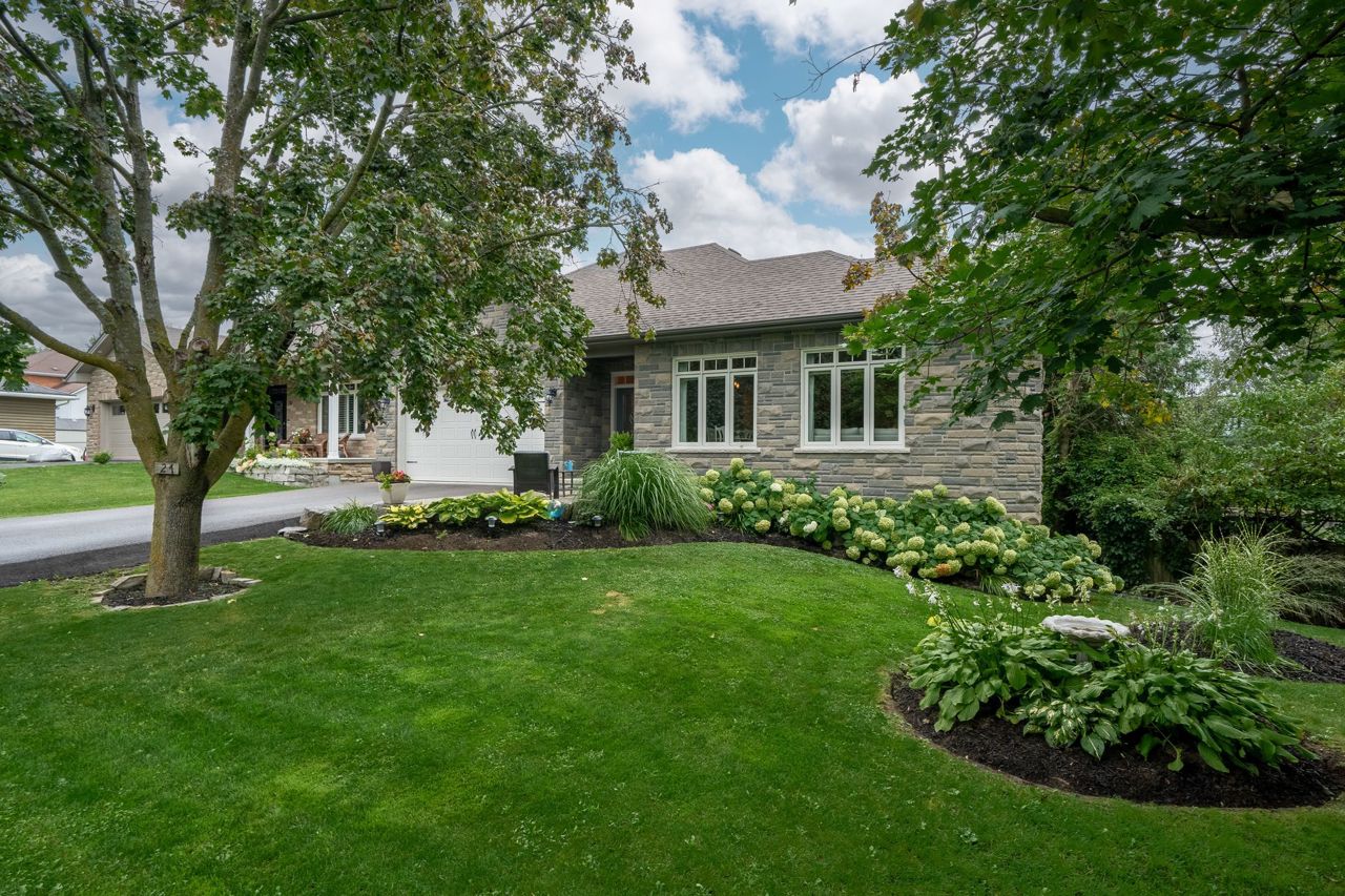 This beautiful stone bungalow is nestled in the heart of scenic Sunderland, tucked away at the end of a quiet street. Custom built by "Van Kessel" this home was crafted with meticulous attention to detail and a commitment to quality. An open concept main floor with upgraded kitchen, complete with quartz countertops, cherry cabinets and modern appliances. 2 bedrooms + ensuite, laundry & access to garage and backyard on the main floor. Featuring gleaming hardwood floors, large windows and 9 ft ceilings. A bright and inviting lower lever, offering 2 large bedrooms, 3rd bath, and spacious living room. A well designed layout offering ample storage and high end finishes throughout. Landscaped with interlocking brick, perennial gardens, mature trees, and fully fenced yard with a deck for entertaining. Enjoy the charm of a small town with the convenience of modern amenities just moments away! Ideally located for commuters, and families looking for a lovely community.Sump pump, $3,000 water filtration system, air exchanger, pot lights, custom vanities, ceramic tiled shower, California blinds