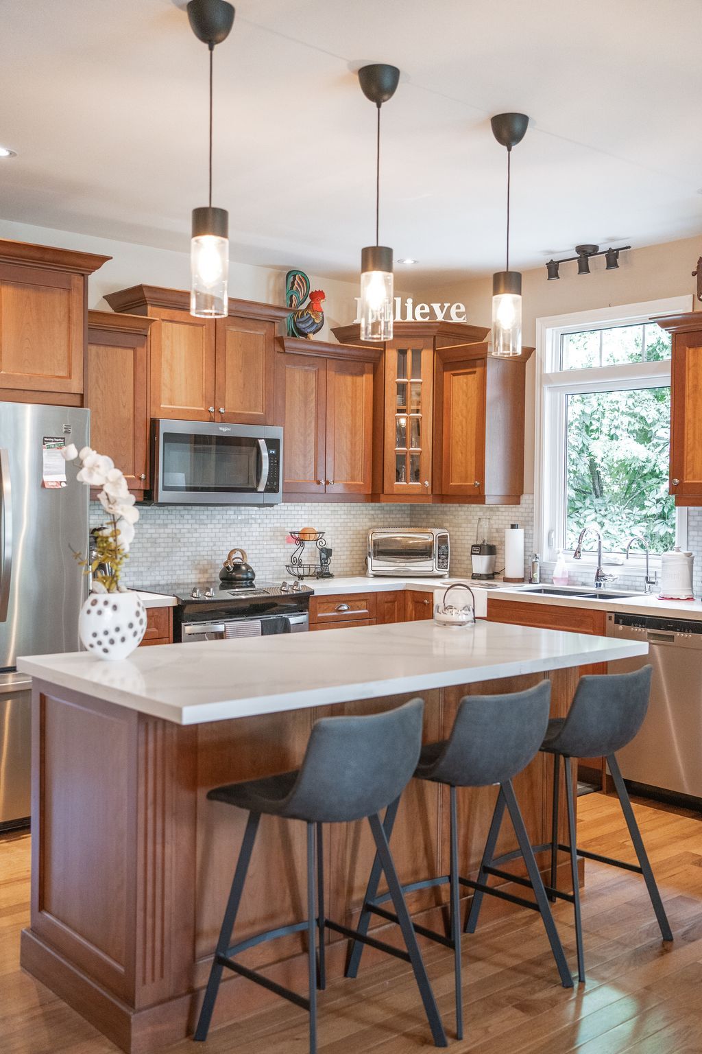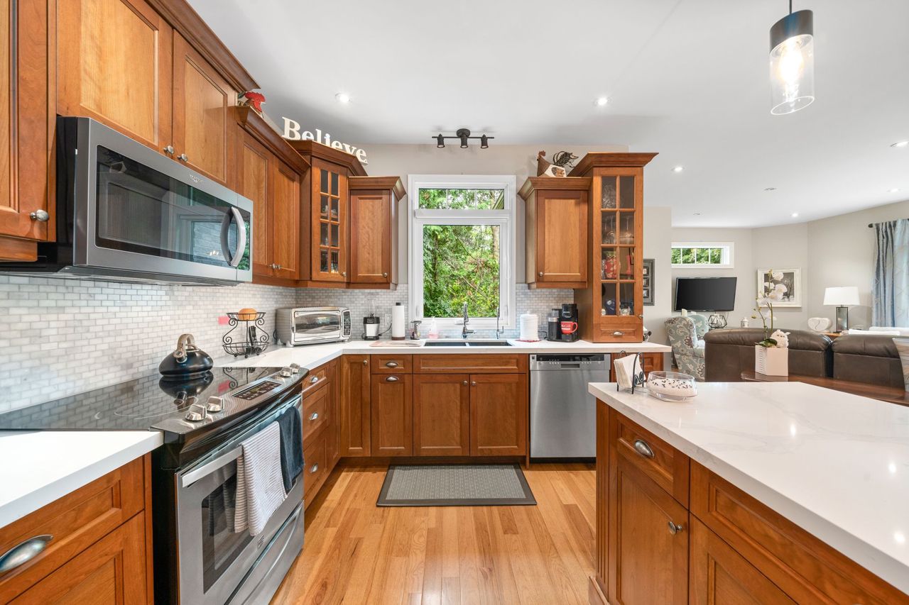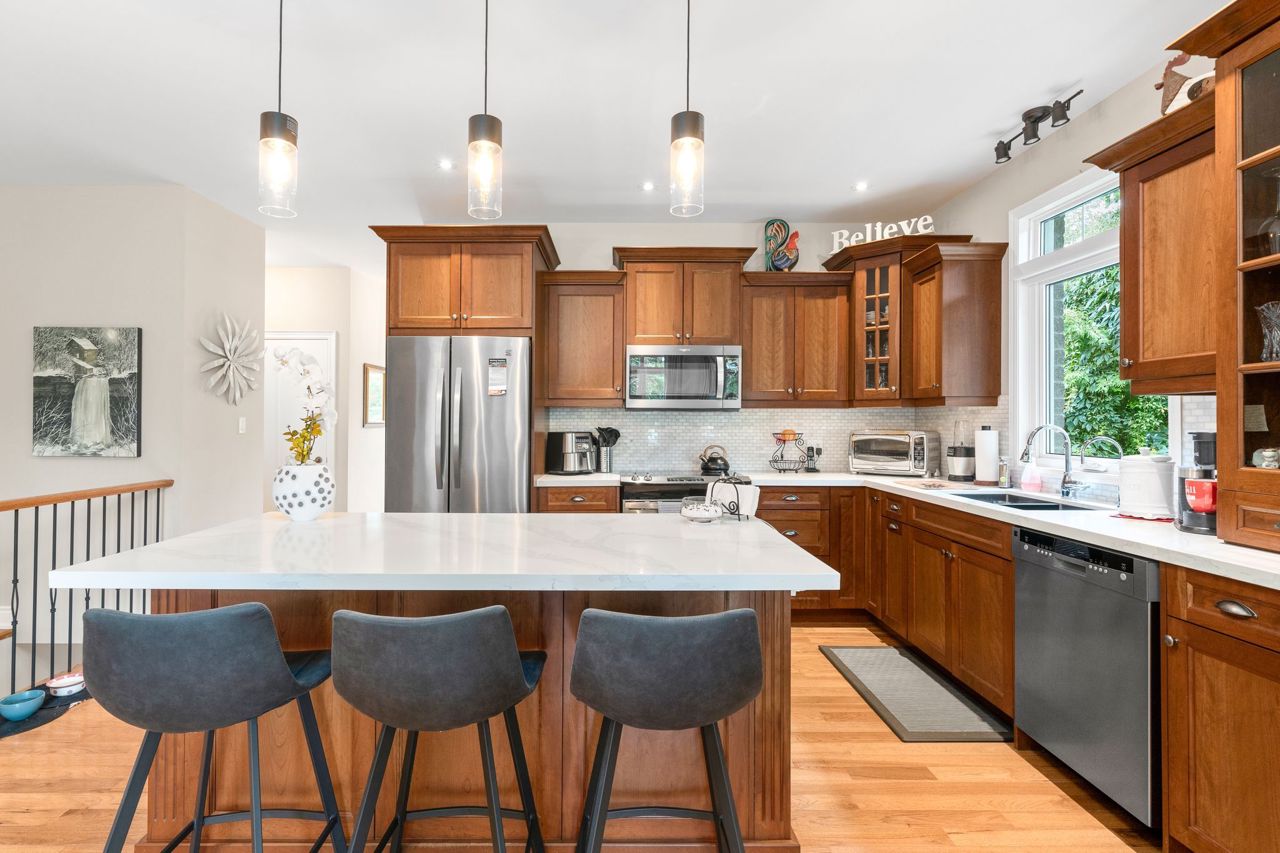 This beautiful stone bungalow is nestled in the heart of scenic Sunderland, tucked away at the end of a quiet street. Custom built by "Van Kessel" this home was crafted with meticulous attention to detail and a commitment to quality. An open concept main floor with upgraded kitchen, complete with quartz countertops, cherry cabinets and modern appliances. 2 bedrooms + ensuite, laundry & access to garage and backyard on the main floor. Featuring gleaming hardwood floors, large windows and 9 ft ceilings. A bright and inviting lower lever, offering 2 large bedrooms, 3rd bath, and spacious living room. A well designed layout offering ample storage and high end finishes throughout. Landscaped with interlocking brick, perennial gardens, mature trees, and fully fenced yard with a deck for entertaining. Enjoy the charm of a small town with the convenience of modern amenities just moments away! Ideally located for commuters, and families looking for a lovely community.Sump pump, $3,000 water filtration system, air exchanger, pot lights, custom vanities, ceramic tiled shower, California blinds