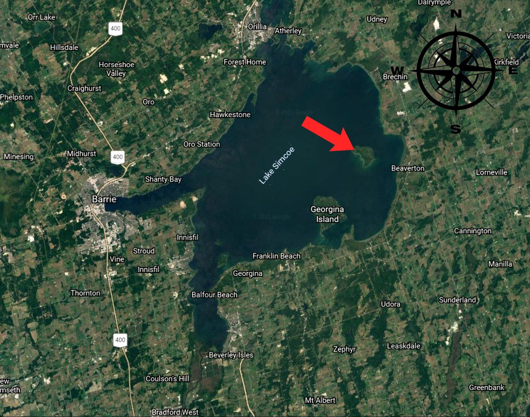 Seize An Exclusive Opportunity For A Refined Investment In Idyllic Natural Splendor. Secure Ownership Of This Pristine 75-Acre Thorah Island Parcel, Offering Freehold Title And Over 4300 Feet Of Prime Shoreline Along Lake Simcoe. Immerse Yourself In Breathtaking Sunrise And Sunset Vistas, Ideal For A Spectrum Of Water Activities, From Serene Swimming To Leisurely Kayaking And Boating, As Well As Exciting Winter Pursuits Such As Ice Fishing And Snowmobiling. The Property Includes A 25'x30' Wood-Log Structure On A Sturdy Stone Foundation, Accessible Solely Via Personal Watercraft. Hydro Services Are Readily Accessible Along Shore Rd. Situated Just A 10-Minute Westward Journey From Beaverton, North Of Georgina Island, This Exceptional Investment Opportunity Awaits Astute Buyers And Their Representatives To Conduct Thorough Due Diligence.Structure On Property Is Offered As-Is, Where-Is, As-Is, No Reps Or Warranties. Note That Docking Facilities Are Currently Absent.
