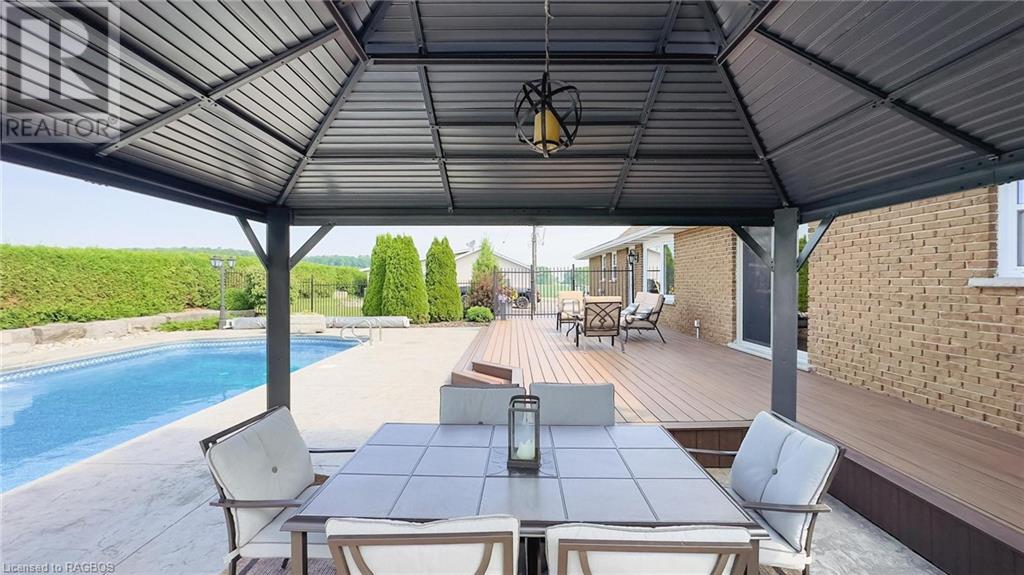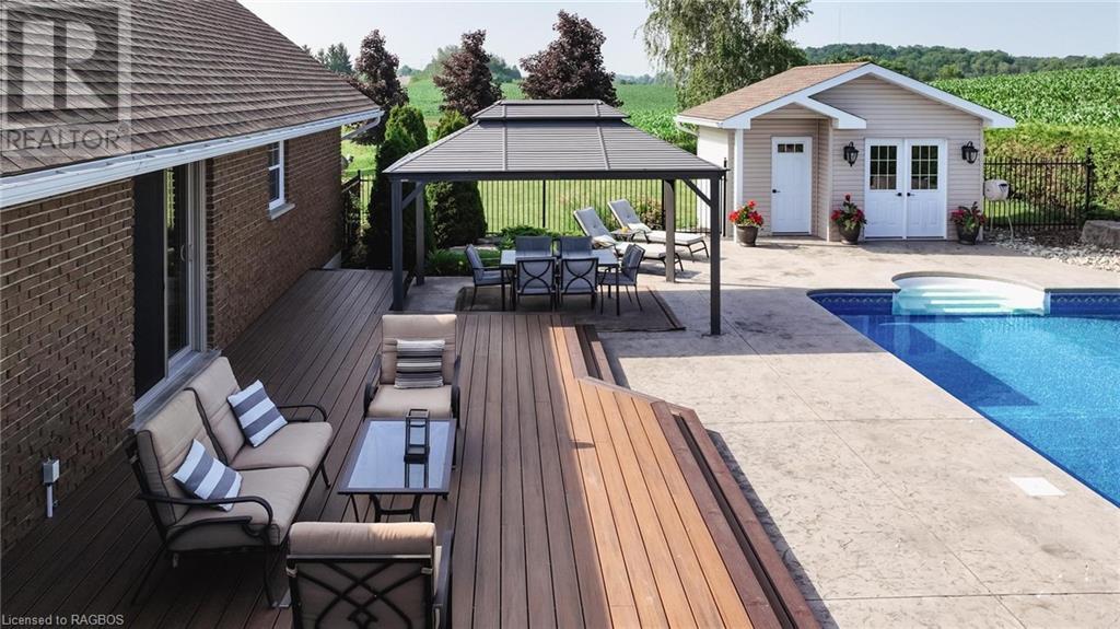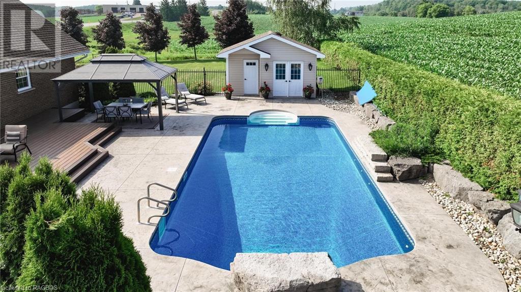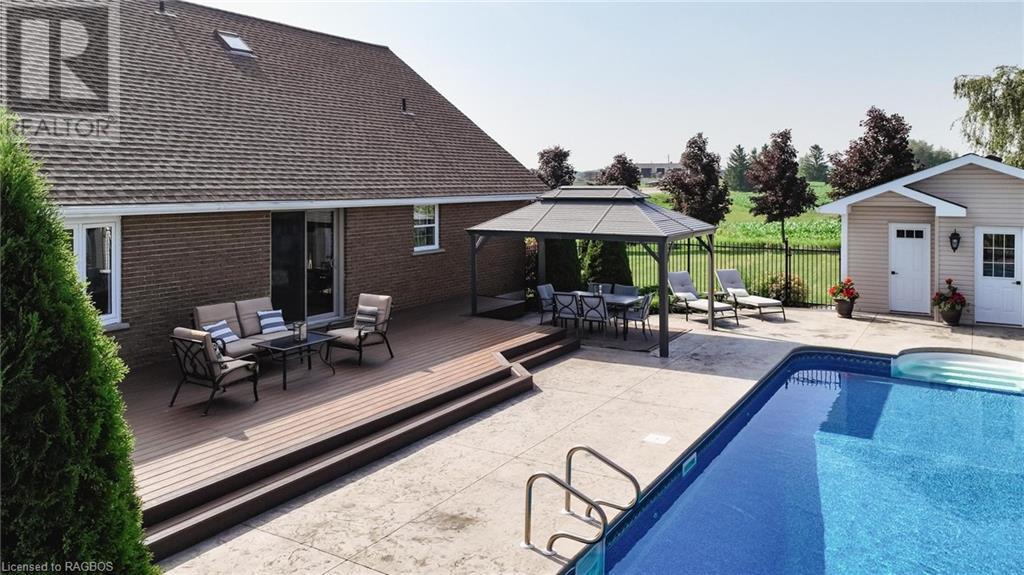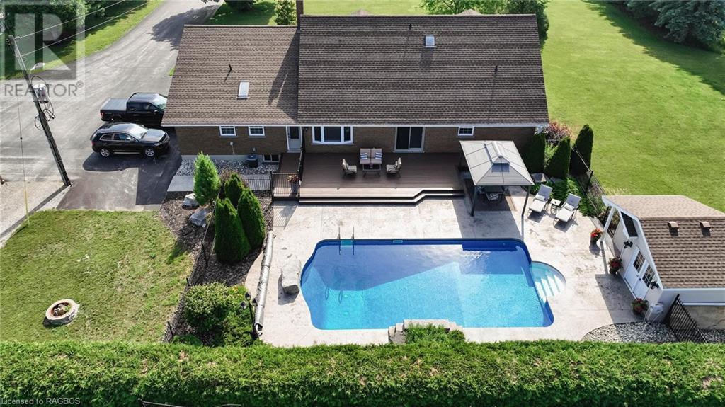 Welcome to 1047 Bruce Road 3, Walkerton. This 2 storey home includes 4 bedrooms and 3 bathrooms in over 4000 Square Feet of living space. The home features 2 main floor bedrooms and 2 main floor living rooms, two second floor bedrooms and an additional 2 rooms in the basement that could be used for a bedroom, office or exercise room. The home is move in ready and has had updates to the kitchen, bathrooms, flooring, roof and more. On top of all that, the backyard sets it off with a large inground pool and resort like setting. Enjoy your summer days by the pool overlooking the country side in this beautiful property. The property also includes a 3 car detached garage (40' x 32') and paved driveway with ample parking. (id:22211)