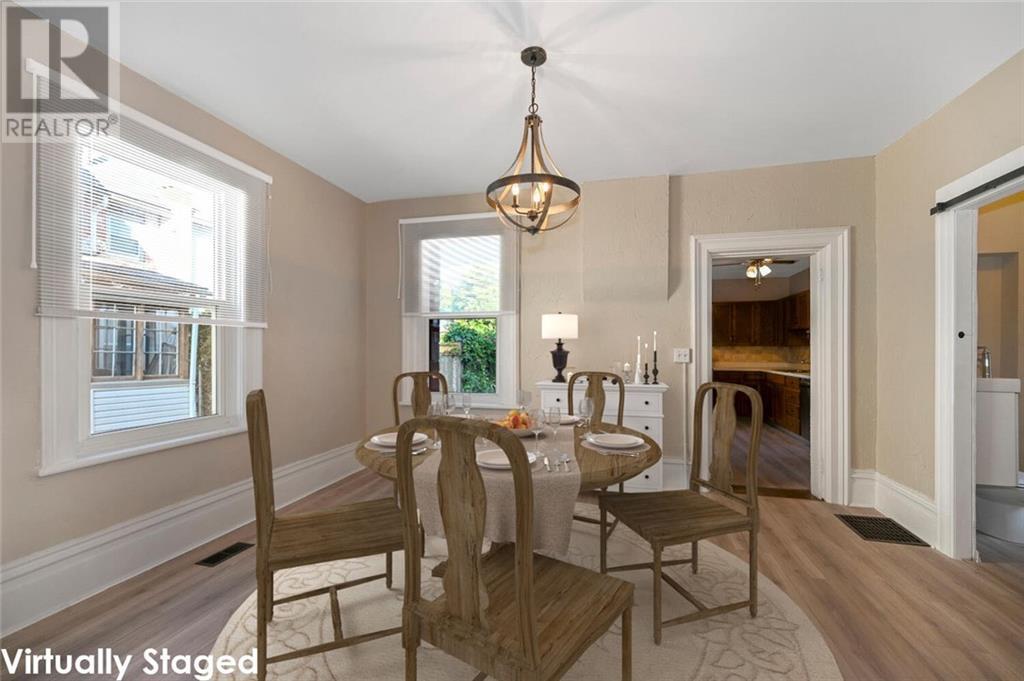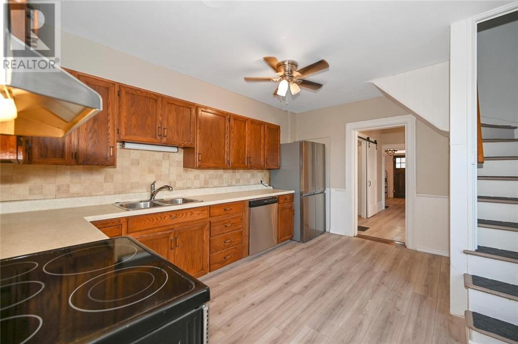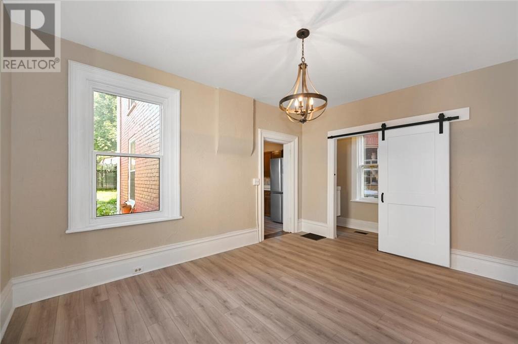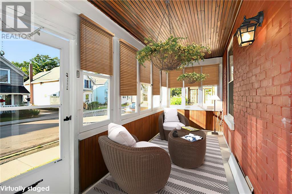 This 3 beds, 1.5 baths home is only a short walk to downtown shopping, restaurants and waterfront. You are greeted by a large veranda that can be used in the warmer months. Through the door you will enter into a large front foyer, to your left is the living room and large door way that opens to DR, barn door host a 2 pc bathroom and door to basement. Kitchen is large enough to use as an eat in, with tons of counter and cupboard space and all appliances has been updated. Just off of the kitchen you will find another room that could be a FR, mudroom and there is an outside entrance on the East side as well as a small storage area off the back of this room. Head upstairs to find 3 bedrooms, 4 pc bath and laundry storage area. Must supply a current credit report, and fill out rental application. A new AC unit was installed in July of 2023, to help keep you cool in the summers.. (id:22211)