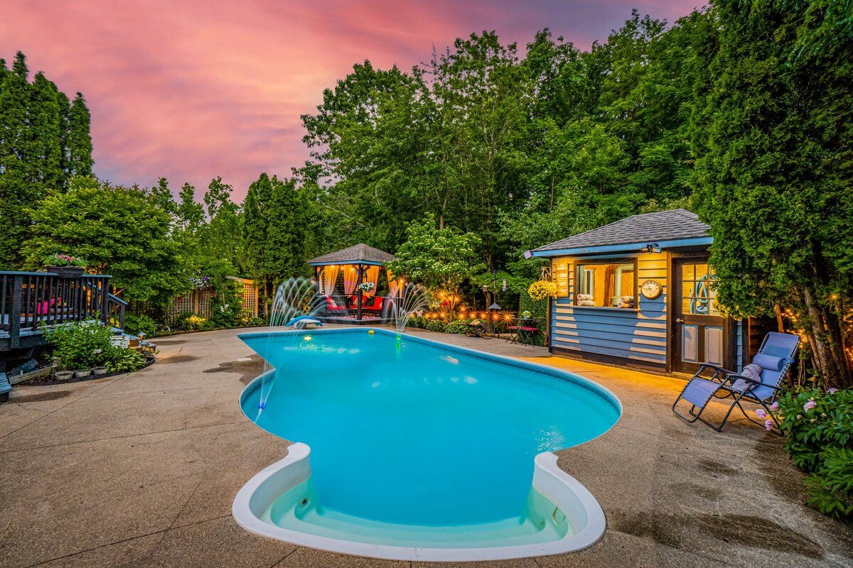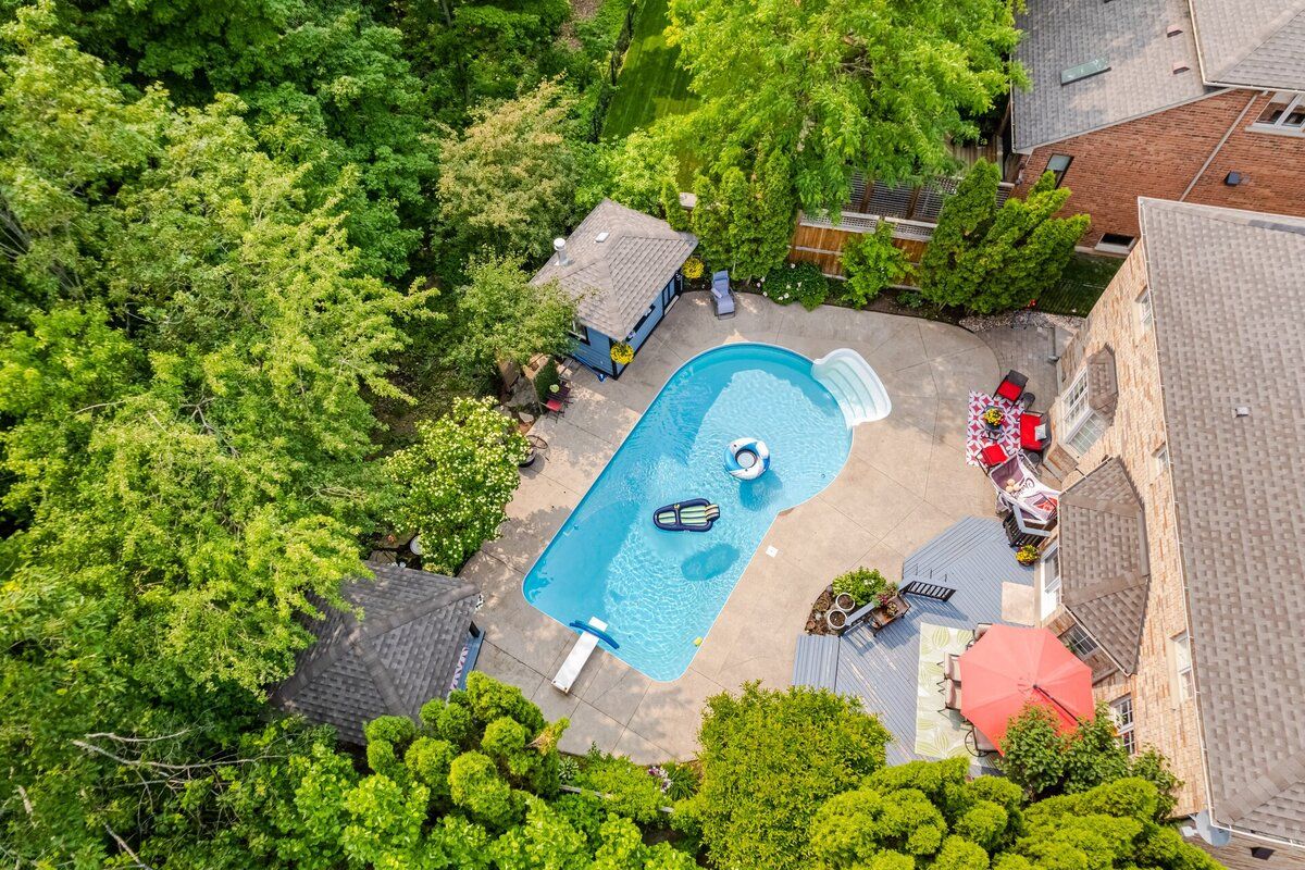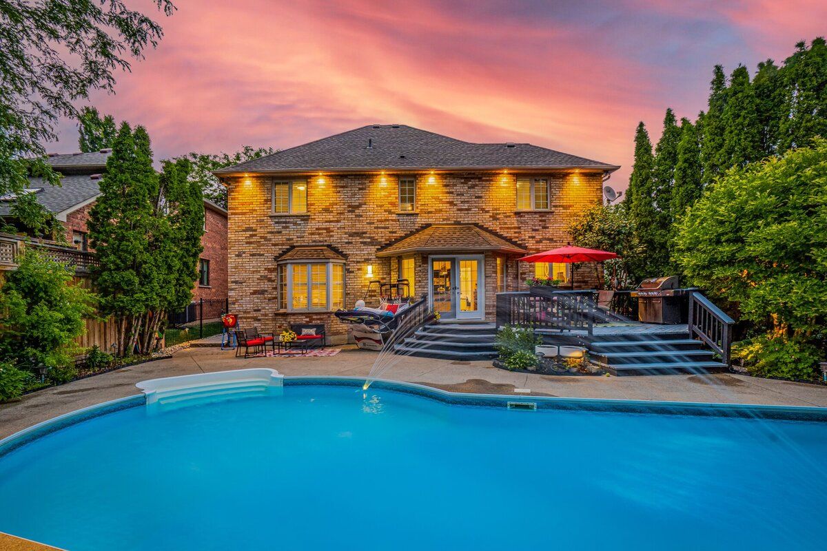 Discover luxury living in this stunning home on Tyandaga's finest st. With 4,109 sqft of exceptional living experience. Step inside and be amazed by the main floor's L/D Room with an 18+ft high ceiling & skylight, H/W floors, 24x24 tiles, elegant light fixtures, & a captivating feature wall. M/Floor Office, Family Room, and Eat-in Kitchen overlooking the Swimming Pool. The second floor features a loft-style area and 4 bedrooms, including a primary bedroom with built-ins, walk-in closet organizers, & a spa-like 5pc bathroom with heated floors. The Basement is perfect for entertainment, with a Rec room, 2 additional bedrooms, a mini kitchen, and a 3pc bathroom. Host guests & create memories. Enjoy the breathtaking natural view from your backyard, with an I/G pool, deck, pool house, and gazebo. The property backs onto a private ravine, a rare find. Modern design meets natural beauty. Close to Hwy, Shopping, and GO. Don't miss this amazing opportunity to live in luxury.