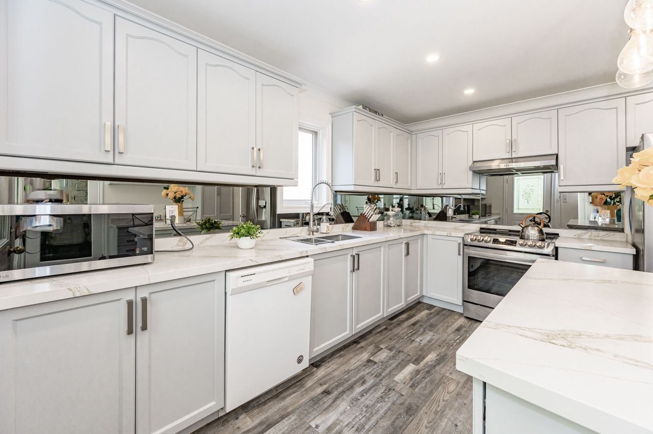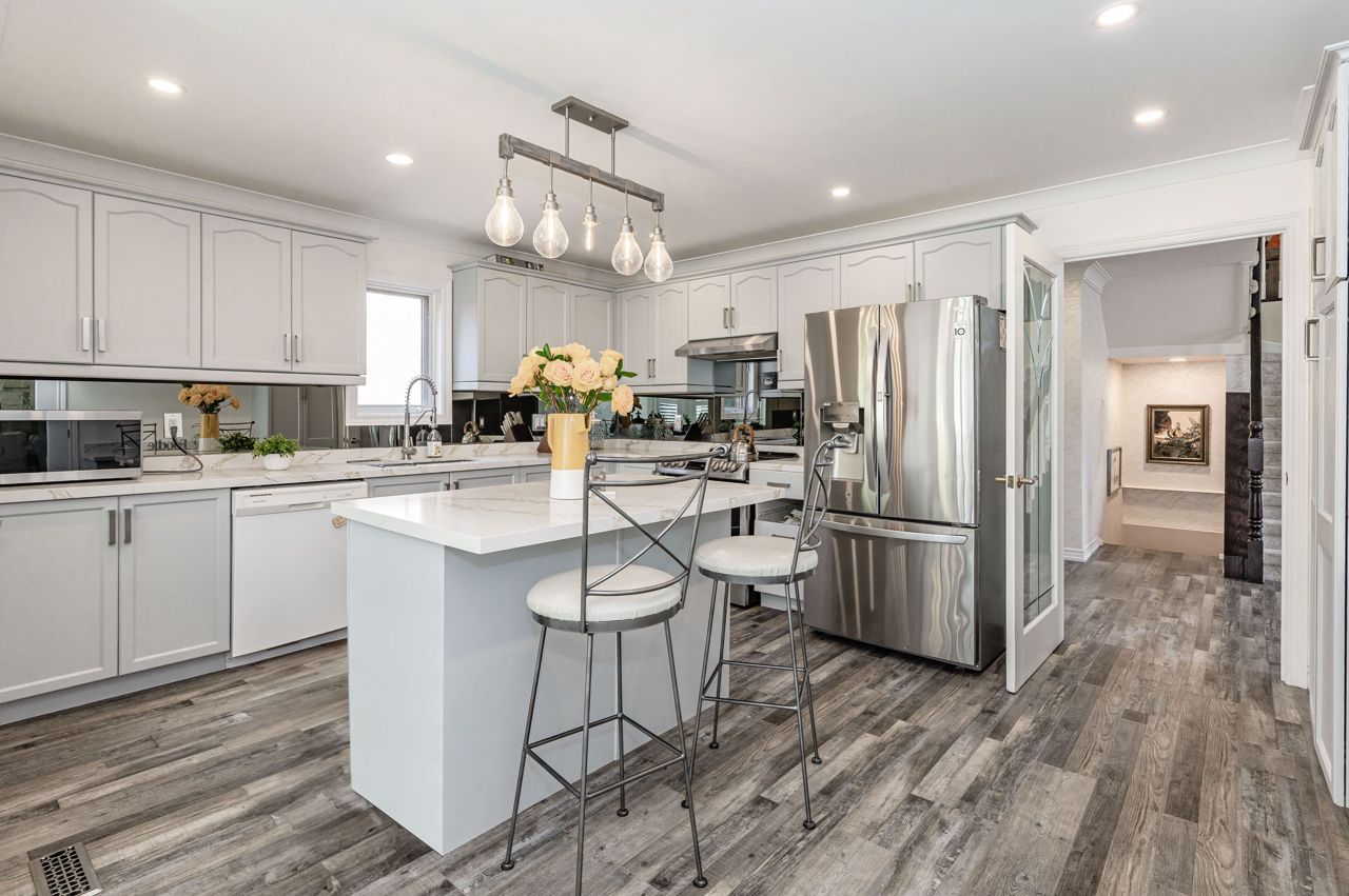 The kitchen will make your inner chef swoon, complete with ample storage & a generous eat-in area. You will love the convenience of a main-floor laundry room. Upstairs, you will find a gorgeous family room with a fireplace, a primary bedroom that offers a spacious layout, walk-in closets & newly renovated ensuite bath with custom shower, & a spacious double-sink vanity. Plus, an additional bed & bath. Enjoy a fully-finished basement with a rec room, a third bedroom & a newly renovated 3-piece bathroom.