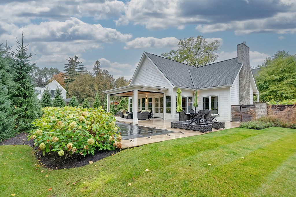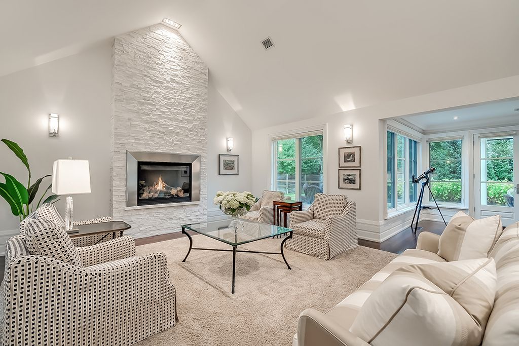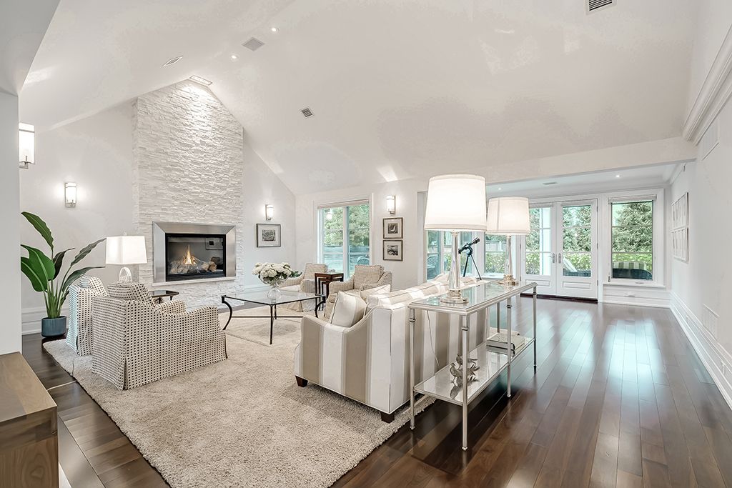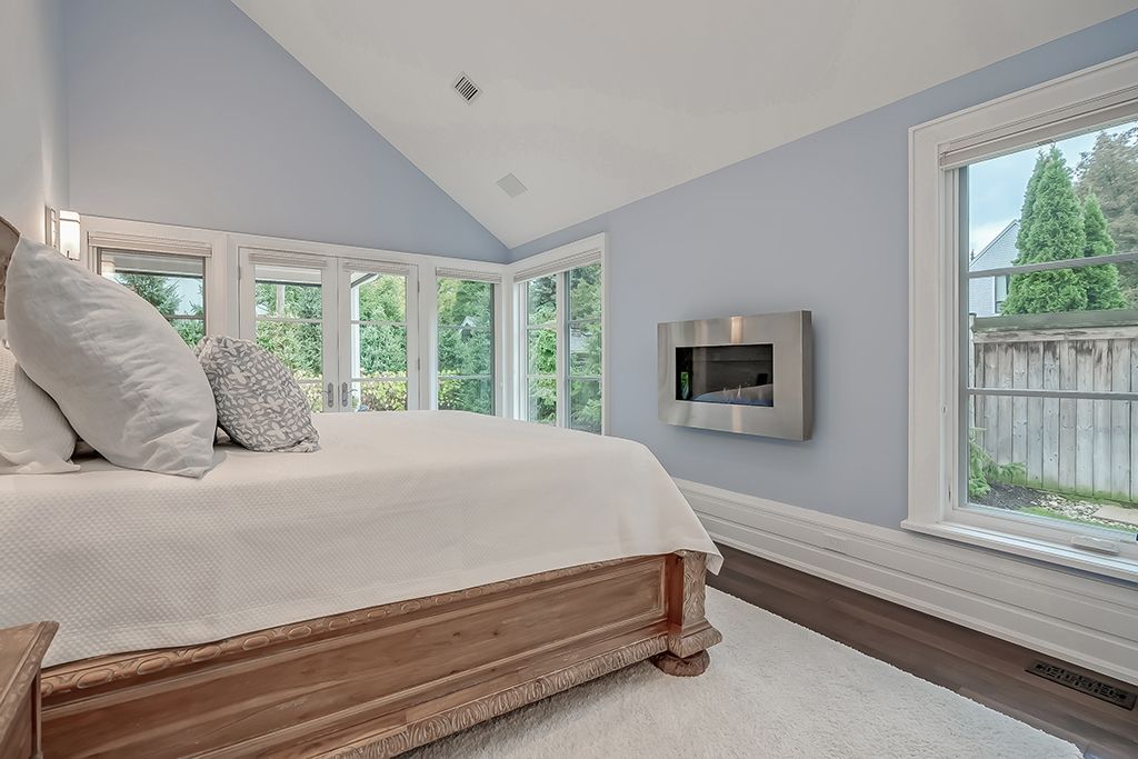 Completely rebuilt modern farmhouse style bungaloft south of Lakeshore Road! 4,115 sq.ft. of stunning custom finishes & features throughout including hardwd, heated tile, custom millwork, pot lighting, vaulted ceilings, built-in audio speakers, 3 gas fireplaces, security system, central vac & more! Main level primary suite w/dressing rm & 6-piece ensuite. Custom kitchen open to family rm & dining features quartz, oversized island & access to butler's pantry. Great rm/sunrm w/gas fireplace & French drs open to extremely private covered patio w/automatic 'Dreamscreens'. Main level w/additional bedrm/office & inside entry to heated double garage. Upper level features a study/work area & 2 spacious bedrms, both w/ensuites. Lower level w/home theatre, laundry/exercise rm & 3-piece bath. Professionally landscaped exterior by DenBok w/heated inground pool, custom lighting, irrigation, BBQ gas line, extensive use of stone & an aggregate double drive w/snow melt system. 4 beds, 5.5 baths.