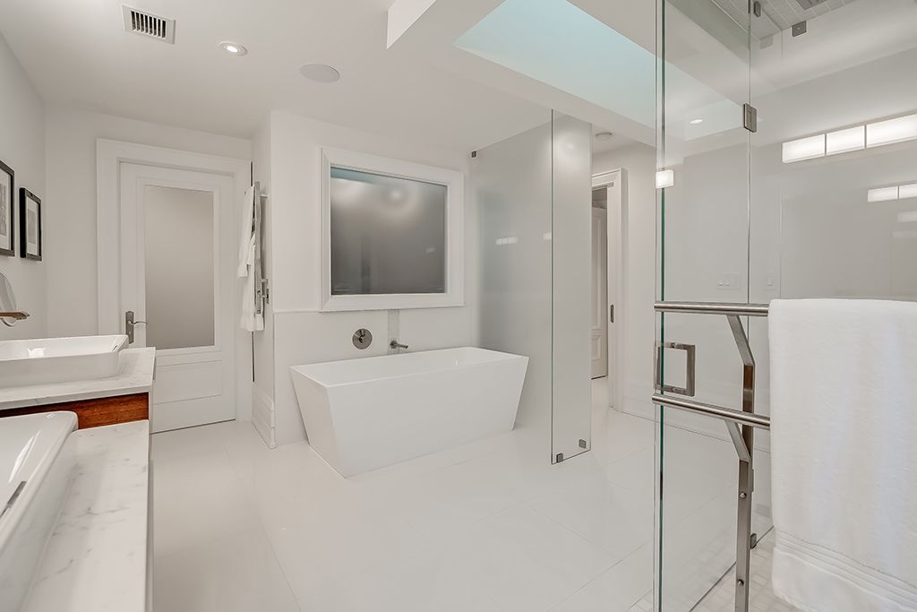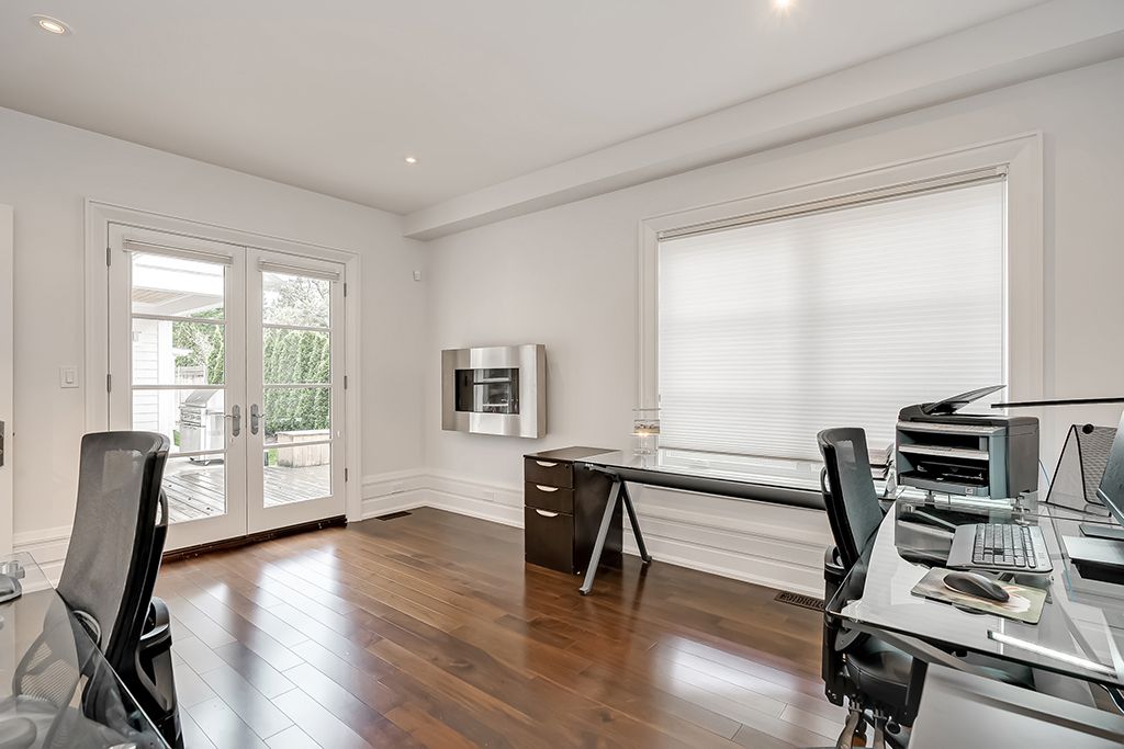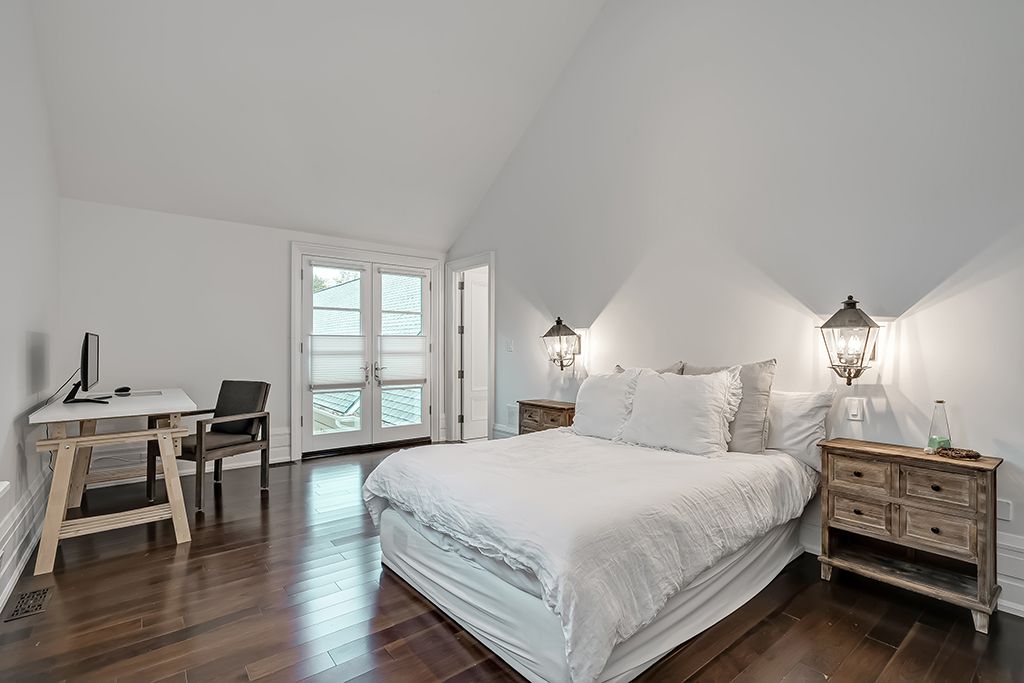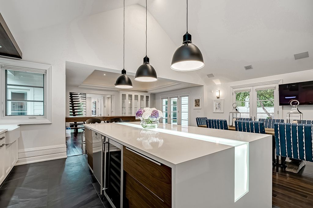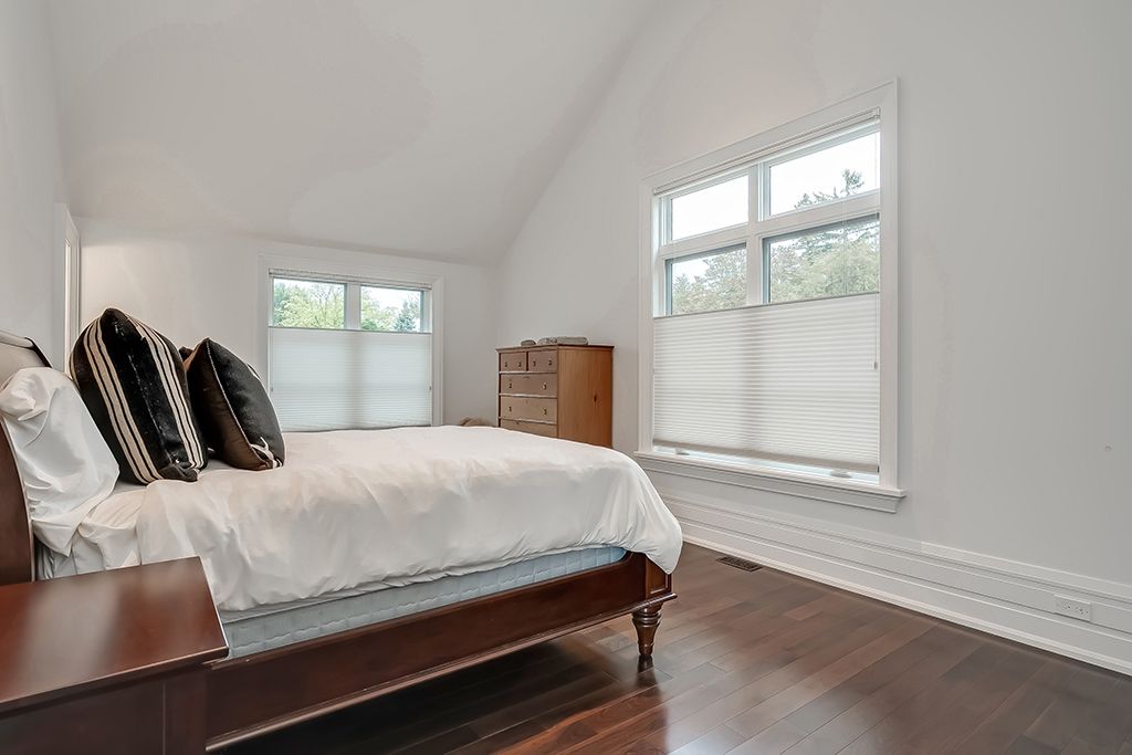 Completely rebuilt modern farmhouse style bungaloft south of Lakeshore Road! 4,115 sq.ft. of stunning custom finishes & features throughout including hardwd, heated tile, custom millwork, pot lighting, vaulted ceilings, built-in audio speakers, 3 gas fireplaces, security system, central vac & more! Main level primary suite w/dressing rm & 6-piece ensuite. Custom kitchen open to family rm & dining features quartz, oversized island & access to butler's pantry. Great rm/sunrm w/gas fireplace & French drs open to extremely private covered patio w/automatic 'Dreamscreens'. Main level w/additional bedrm/office & inside entry to heated double garage. Upper level features a study/work area & 2 spacious bedrms, both w/ensuites. Lower level w/home theatre, laundry/exercise rm & 3-piece bath. Professionally landscaped exterior by DenBok w/heated inground pool, custom lighting, irrigation, BBQ gas line, extensive use of stone & an aggregate double drive w/snow melt system. 4 beds, 5.5 baths.