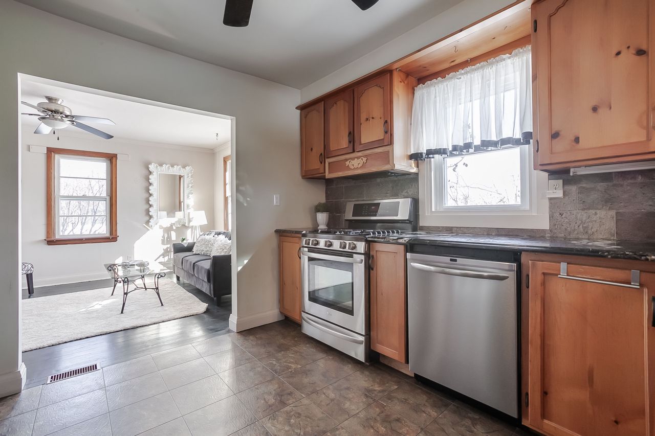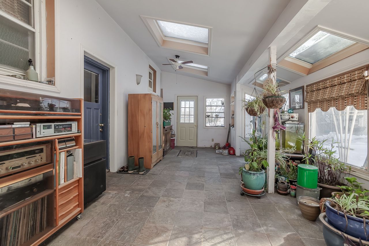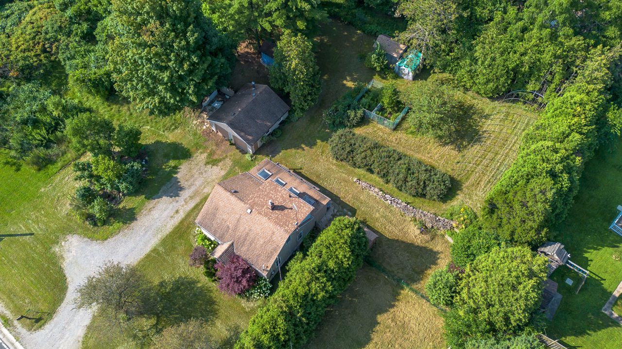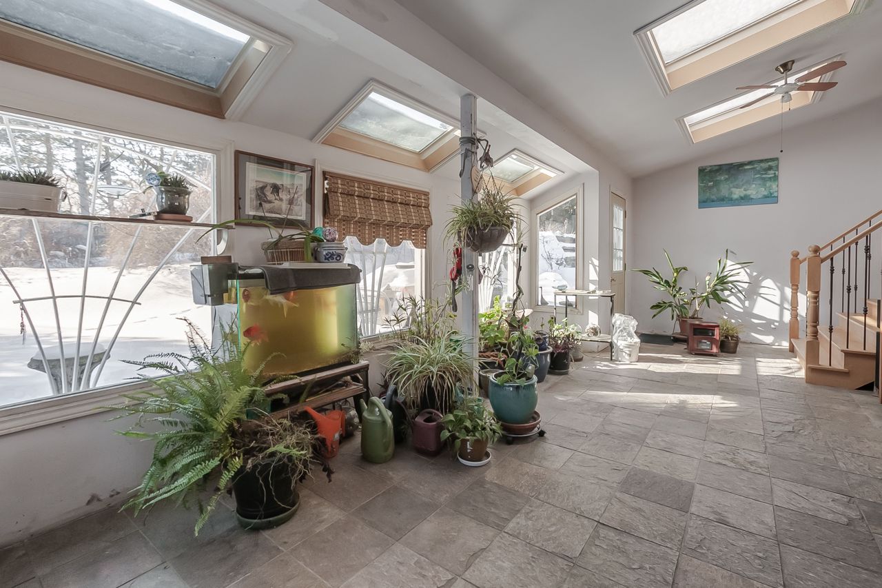 Idyllic countryside lifestyle moments from Aldershot Go & HWY 403. Enveloped by mature trees & perennials, this charming 1 1/2 Storey residence invites tranquility. Step into the expansive sunroom, drenched in natural light through skylights & picture windows, offering views of the terraced property. The kitchen incl granite counters, SS dishwasher & stove. The living room and dining area have rustic ceiling beams and warm wooden floors, seamlessly connecting through grand double doors to the sunroom. Upstairs are 2 bedrooms with wood floors and a convenient 3PC bathroom.The partially finished lower level boasts a family room, or flex space perfect for unwinding. Outside, find convenience of a driveway accommodating 8 vehicles, sprawling 50’ x 25’ greenhouse frame & 3 garden sheds catering to your storage needs. This property is your ticket to the perfect blend of rural serenity & comfort.