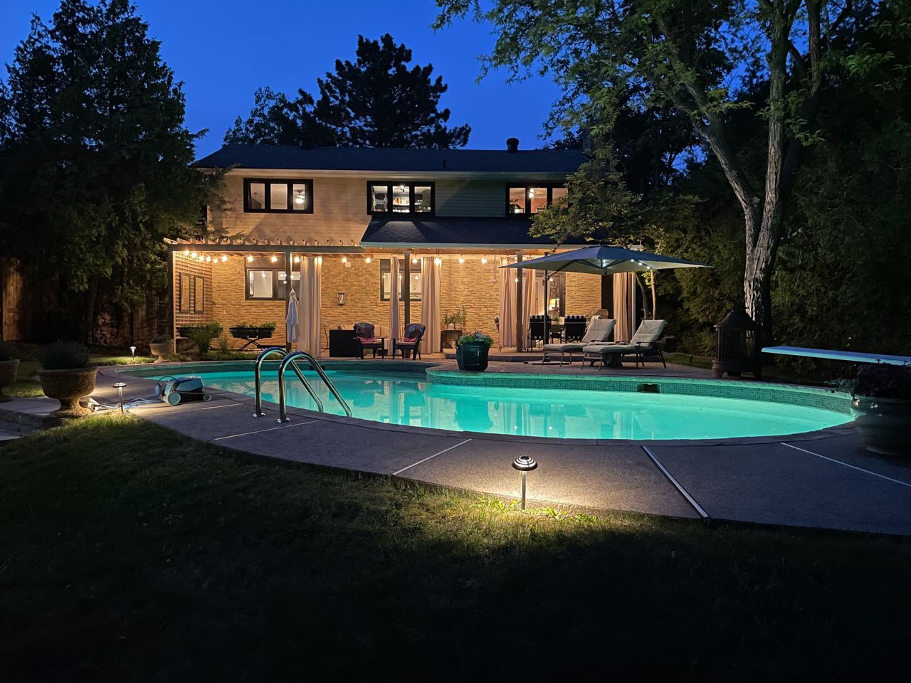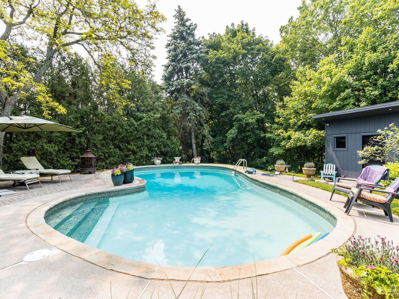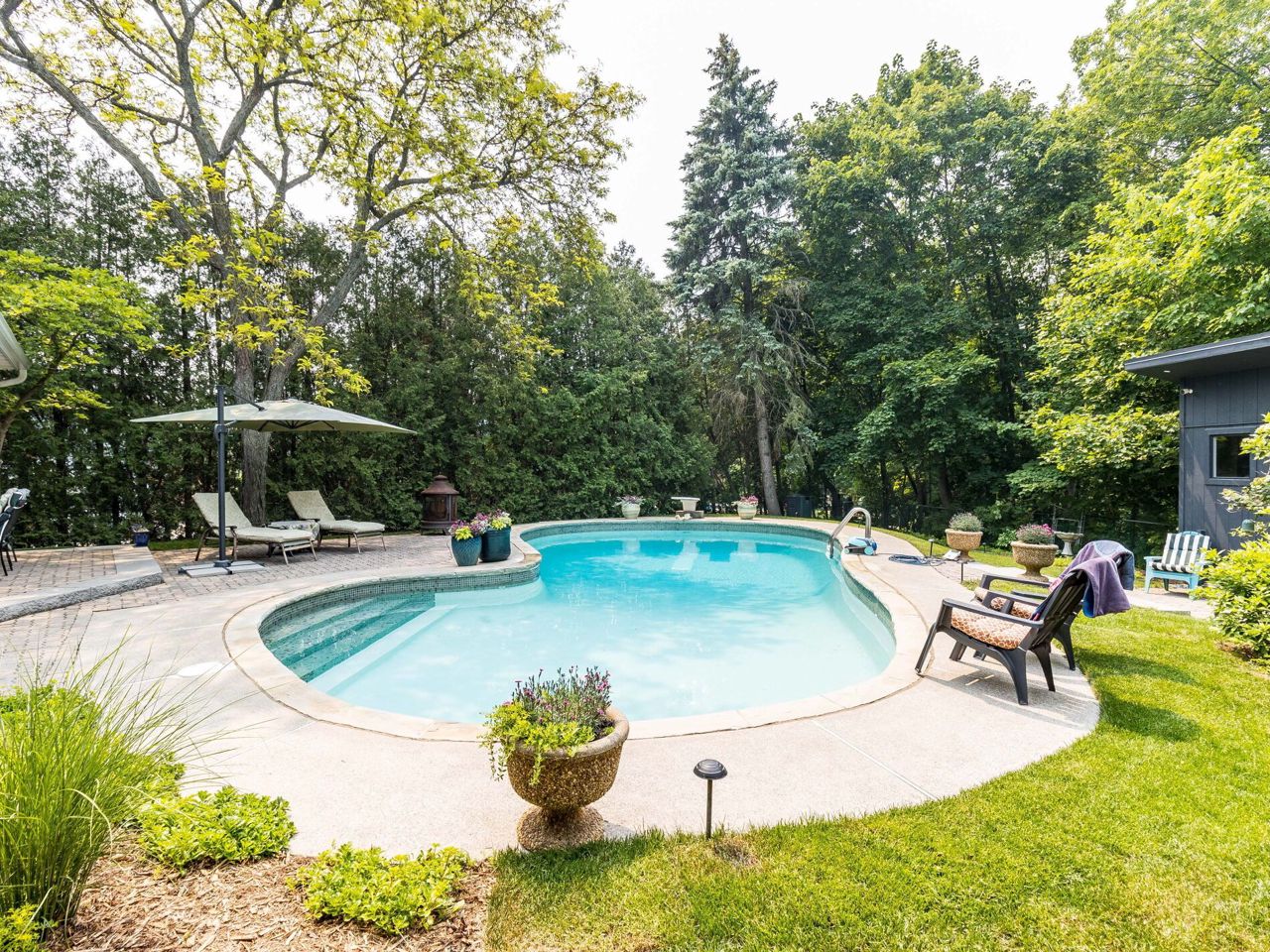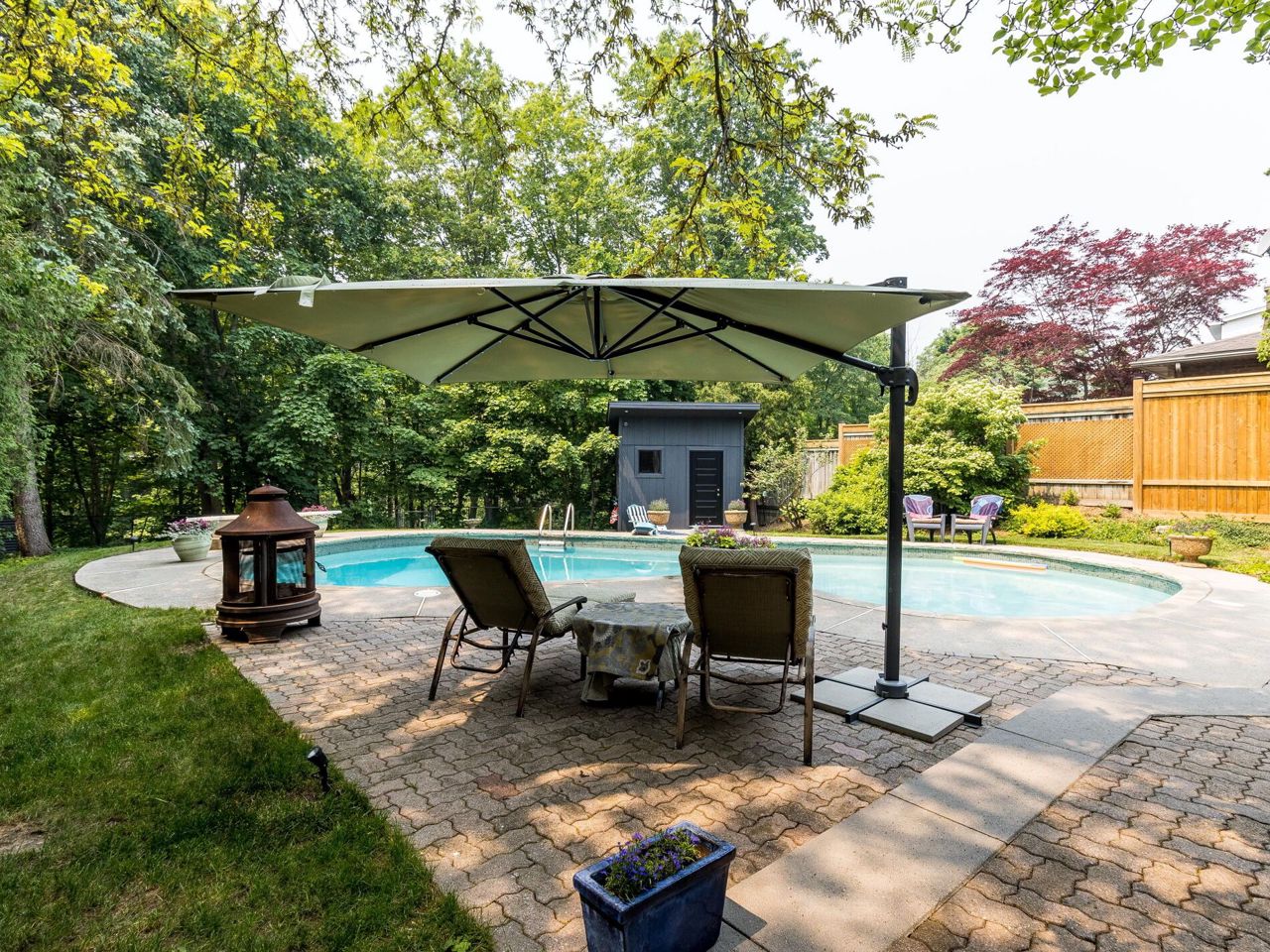 Celebrate resort-like living in Tyandaga on a majestic natural ravine setting, up to 299' deep, w/stream & inground 22'x40' heated saltwater pool. Relax under the loggia, or step inside and be amazed by this luxurious, chic redesigned home. Unique, custom kitchen w/stone counters, sleek appl & lg island, provides abundant storage & prep space. Open concept floor plan flows effortlessly throughout. Custom bthrms. Custom laundry. Primary bdrm retreat w/fabulous dressing room & ensuite bath. Modern basement makes the perfect nanny suite or personal space. Dbl garage w/access.See Notables List attached. Minutes to Golf, Tennis, trails, parks, shops, restaurants, schools. Please note: There is no sign on the property.