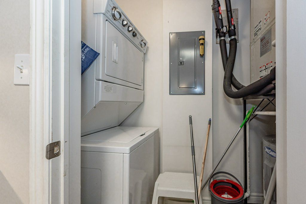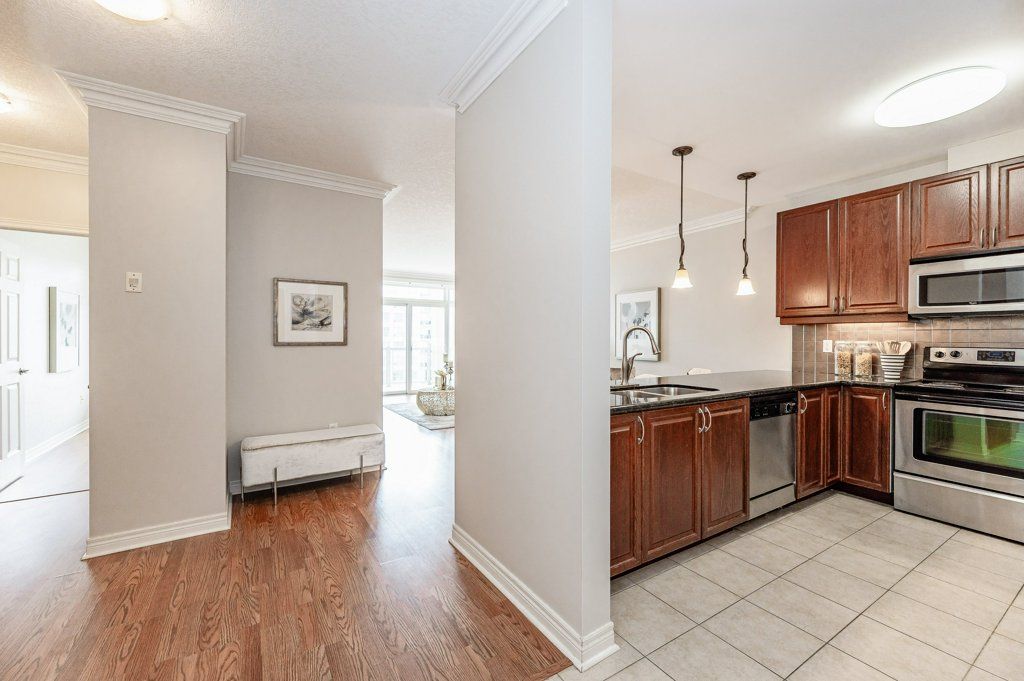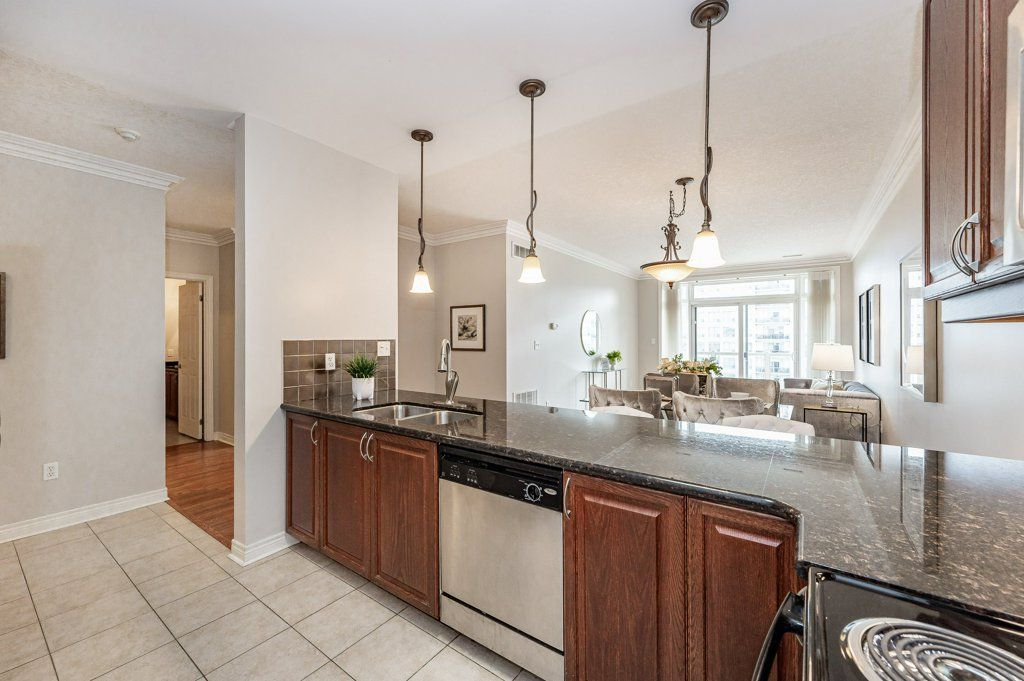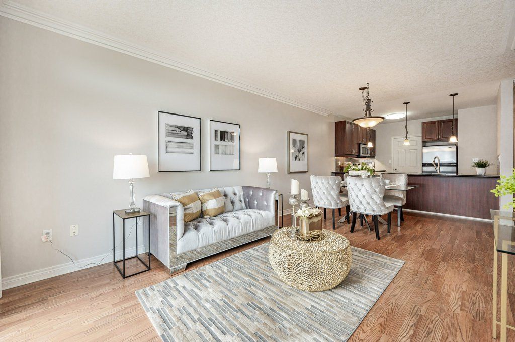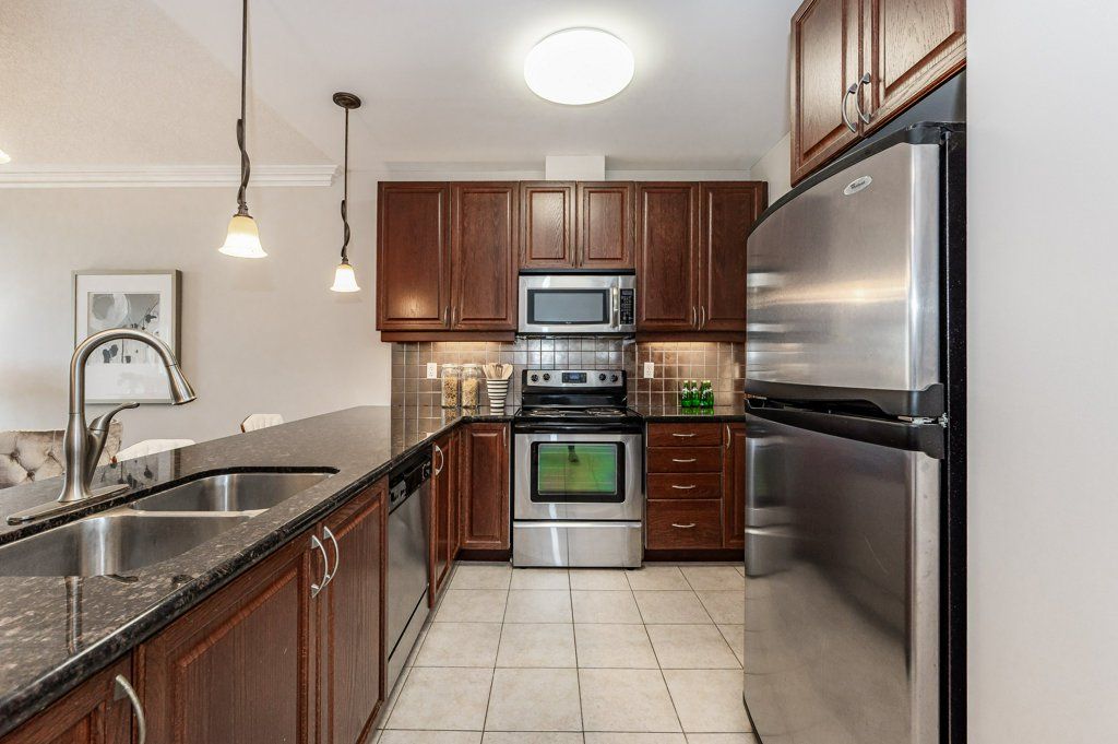 Welcome to Appleby Woods Condo Building! This 2-bed+den, 2-bath condo offers 1,255 sq ft of living space. Explore a stylish kitchen with stainless steel appliances, granite countertops, tiled backsplash, under cabinet lighting, and breakfast bar. The open-concept living/dining area features quality laminate floors, crown molding, and a covered balcony.