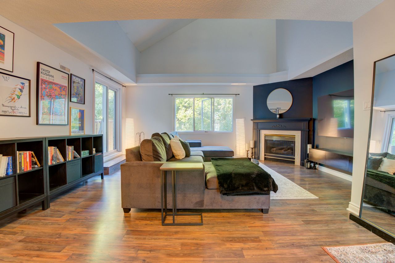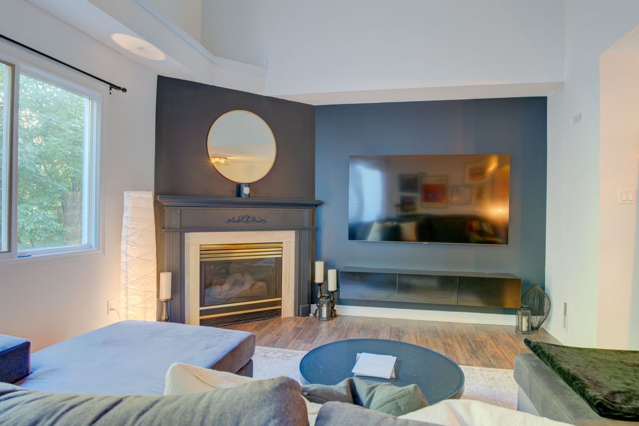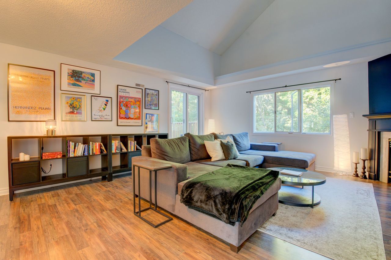 Spacious 1,675 Sqft Loft Style 2+1 Bedroom, 2 Bath Family Home Backing Onto Lush Green Forest. Modern Open Concept Layout W/ Cathedral Ceiling, Laminate Flooring W/ Neutral Paint Throughout. Gas Fireplace In Living Room With Large Windows Overlooking Beautiful Forest. Main Floor Laundry Beside Main Floor Bedroom And 3 Piece Washroom. Renovated Eat-In Kitchen W/Stainless Steel Appliances Included Gas Stove. Huge Primary Bedroom W/4 Piece Ensuite, Juliette Balcony And Two Walk-In Closets. Office Easily Converted Into 3rd Bedroom. Park Comfortably In Your Deep Private Garage With Newly Installed Tesla Charger.
