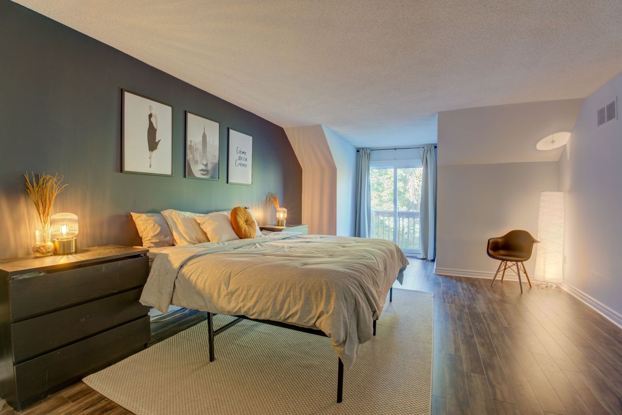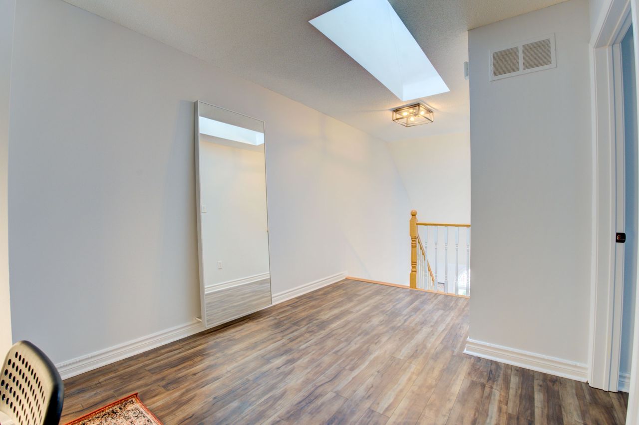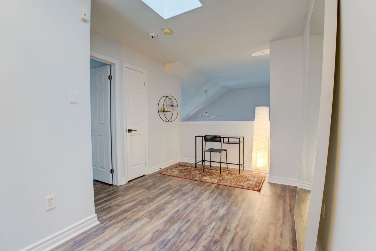 Spacious 1,675 Sqft Loft Style 2+1 Bedroom, 2 Bath Family Home Backing Onto Lush Green Forest. Modern Open Concept Layout W/ Cathedral Ceiling, Laminate Flooring W/ Neutral Paint Throughout. Gas Fireplace In Living Room With Large Windows Overlooking Beautiful Forest. Main Floor Laundry Beside Main Floor Bedroom And 3 Piece Washroom. Renovated Eat-In Kitchen W/Stainless Steel Appliances Included Gas Stove. Huge Primary Bedroom W/4 Piece Ensuite, Juliette Balcony And Two Walk-In Closets. Office Easily Converted Into 3rd Bedroom. Park Comfortably In Your Deep Private Garage With Newly Installed Tesla Charger.