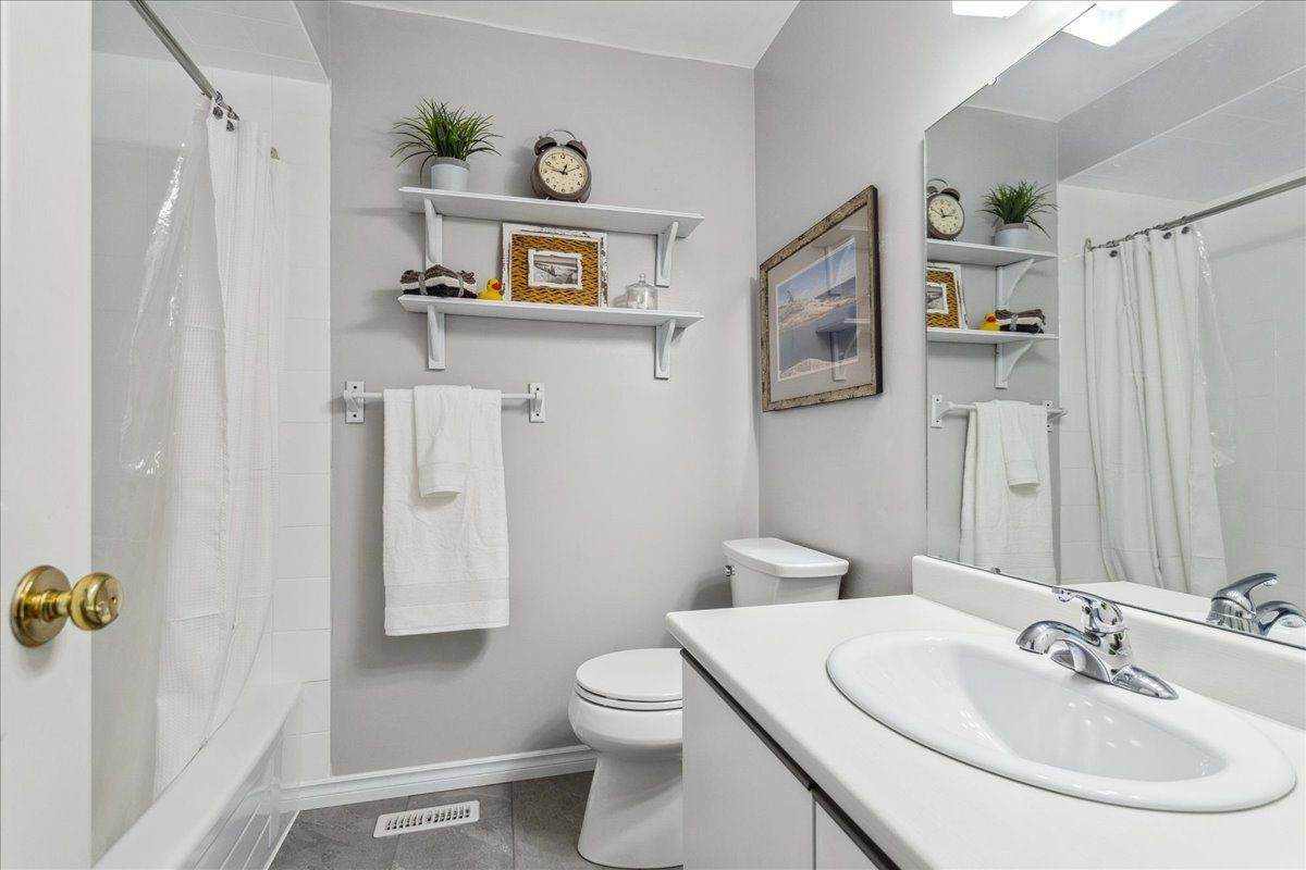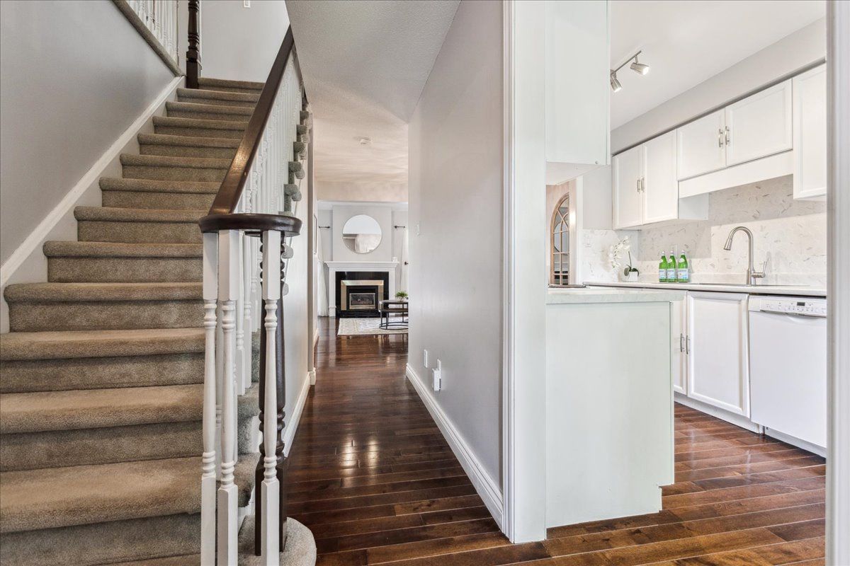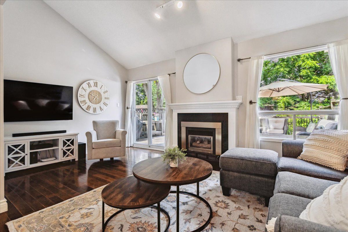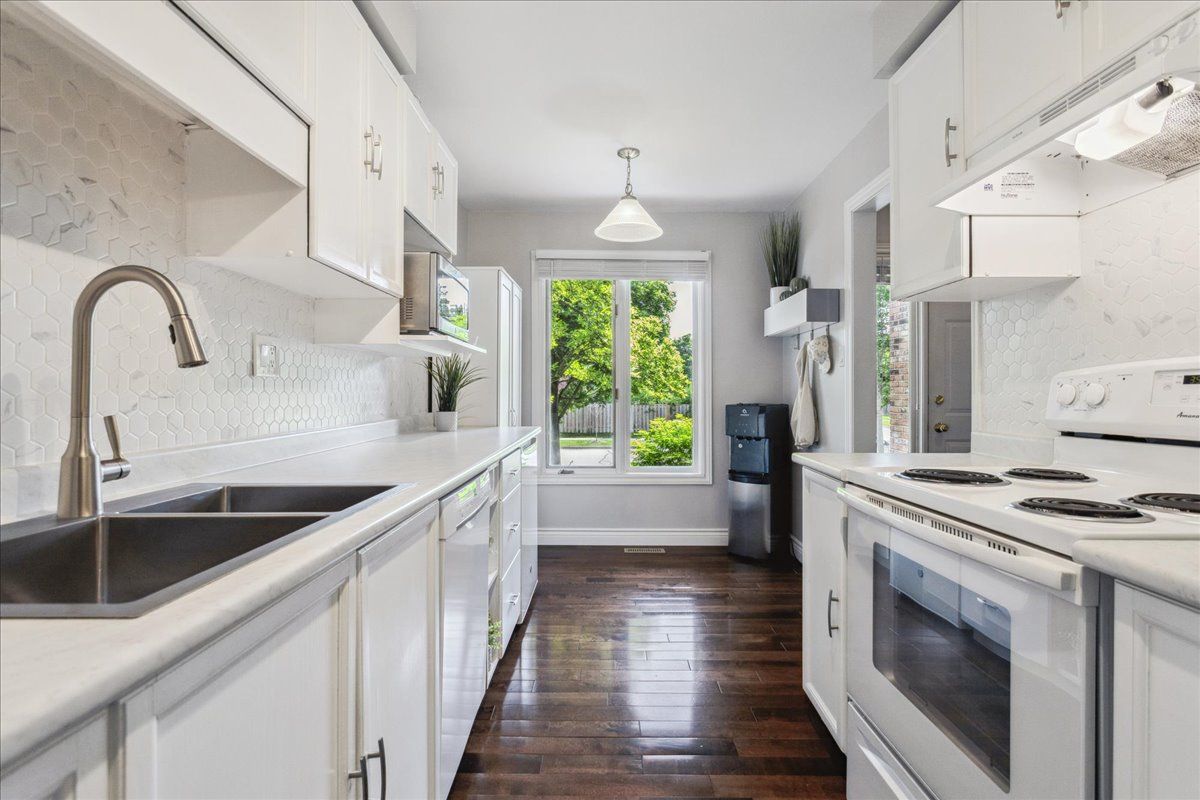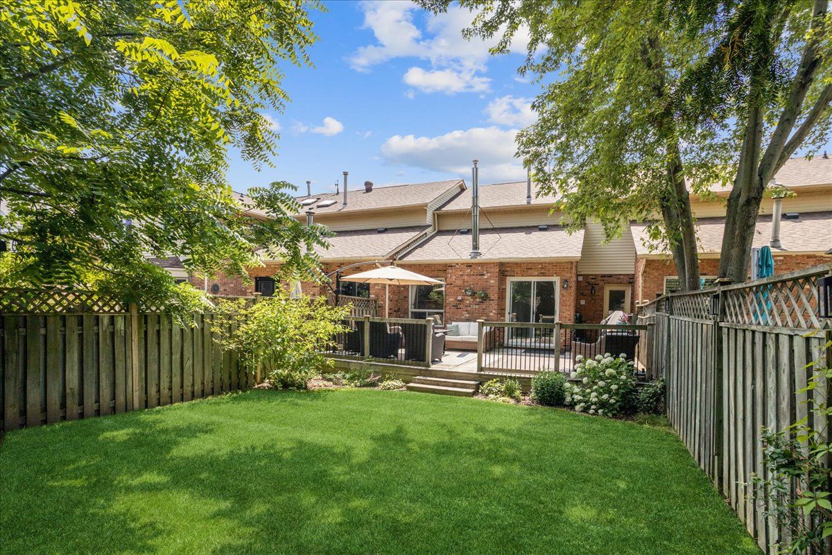 A special opportunity for those right sizing or seeking their first home. This well-cared for 2 storey townhouse in Headon Forest is perfect. Offering larger than expected living space with refreshed kitchen and bathrooms, it is ready from Day 1. Bright galley kitchen with plenty of cabinetry, leads to open dining and living space. Vaulted Ceilings, as well as large windows capture so much light from the outdoors and glass slider door to the large rear deck. Enjoy easy access to bbq as well as entertaining space with friends, and family. Unique floorplan allows for a main floor laundry/mud room with interior access to garage. Guest powder room completes this level. Second level finds the principal bedroom with twin closets and large 4 pc ensuite with glass shower (‘22). Second bedroom is generous, with its own 4pc bath. Lower level is the perfect spot for workspace or workout area, with a rear rec room. Easy access to QEW, 407, GO. Just a minutes walk from parks, shops, schools.
