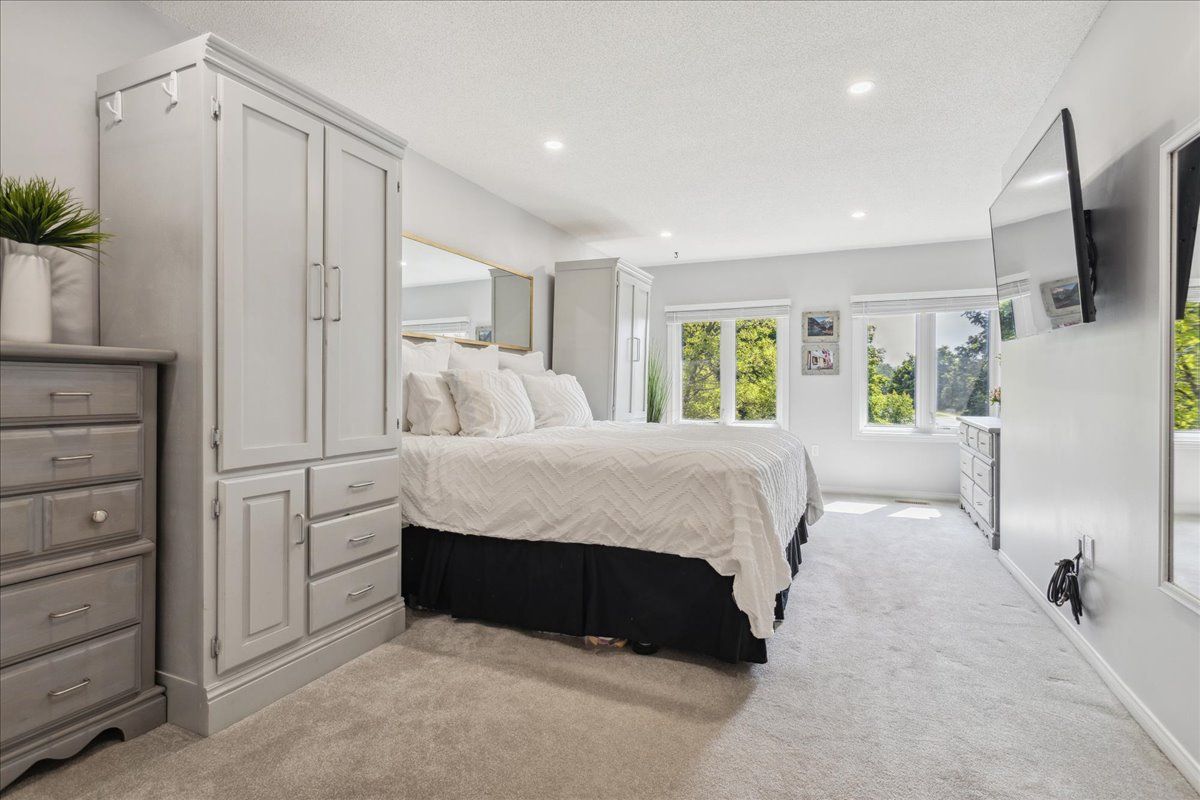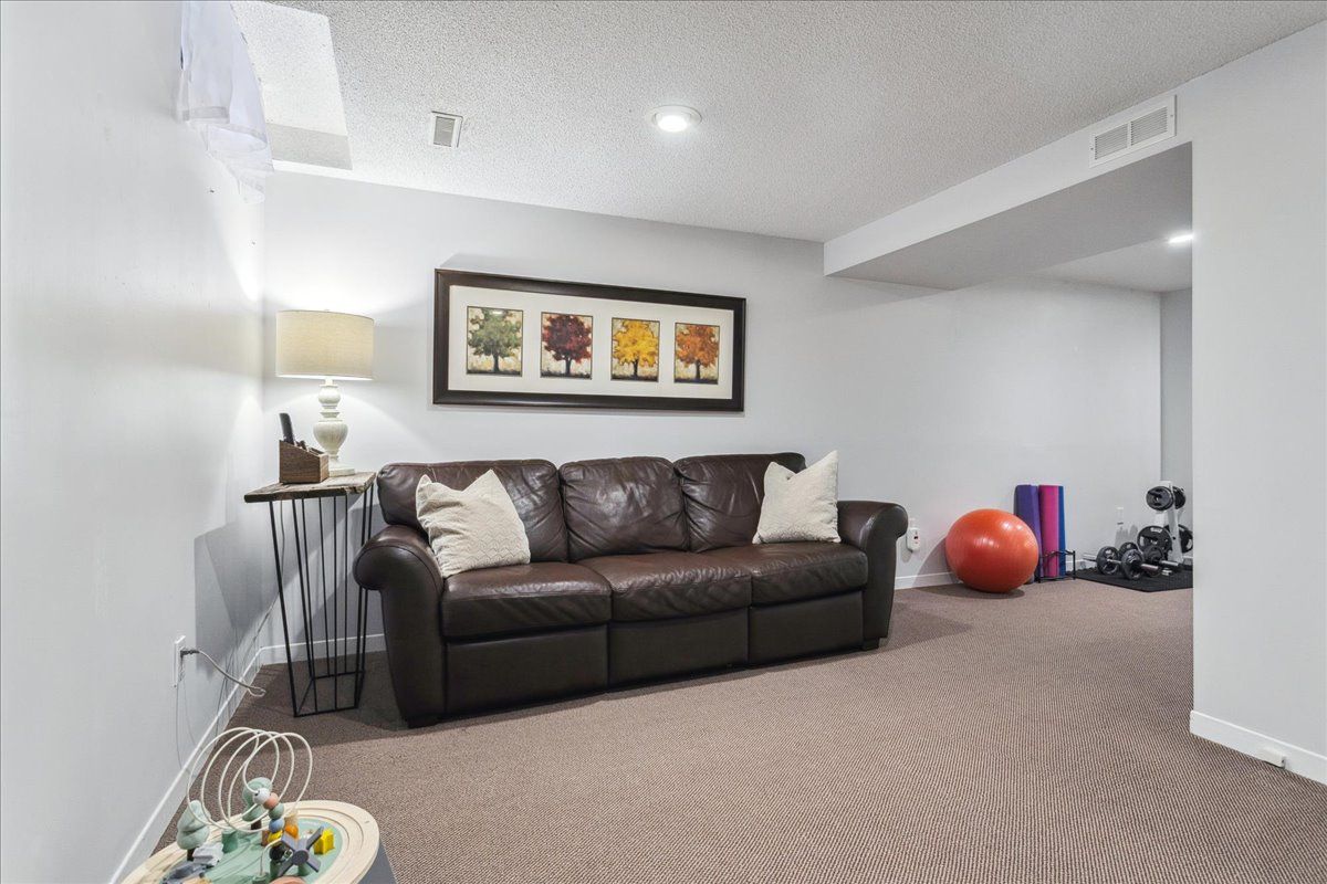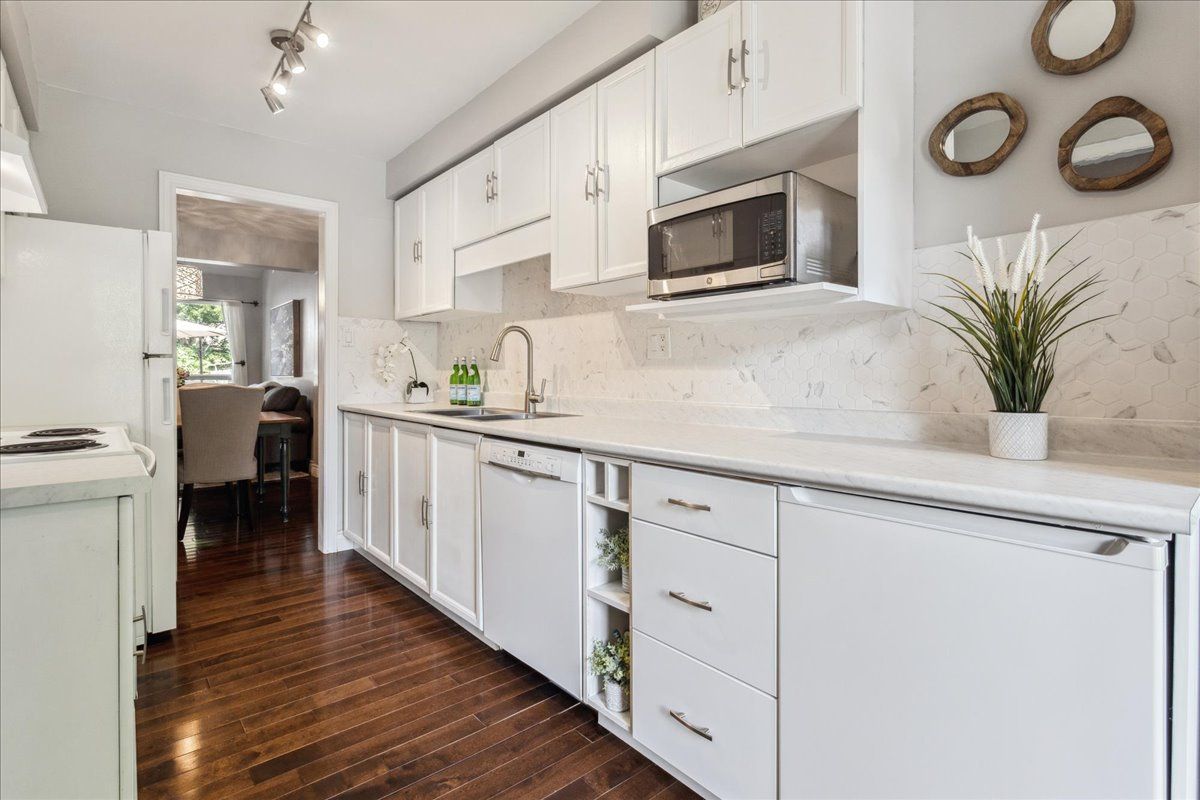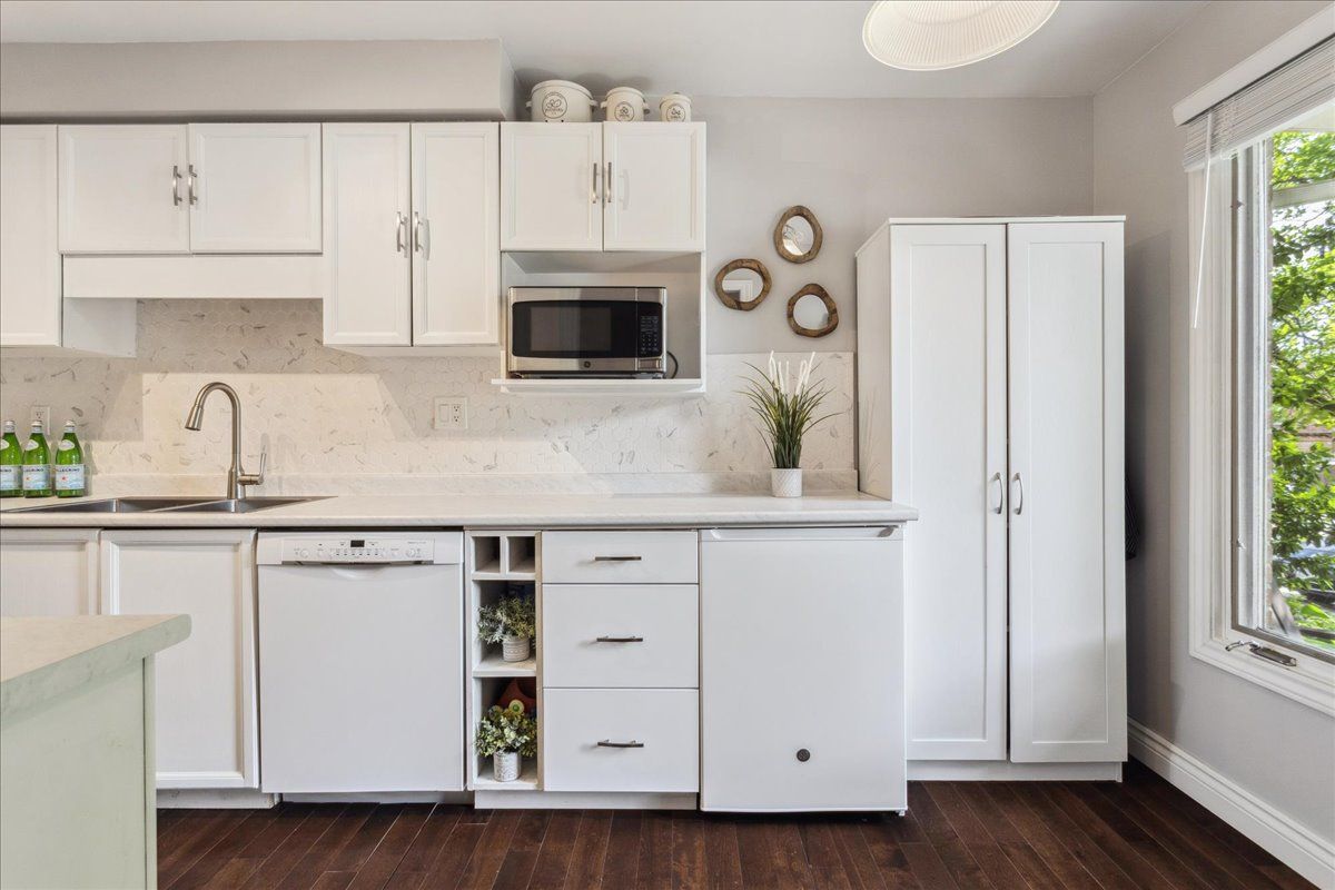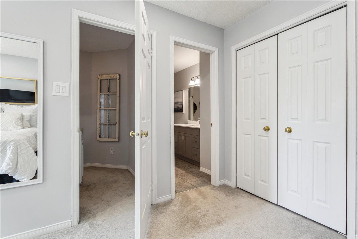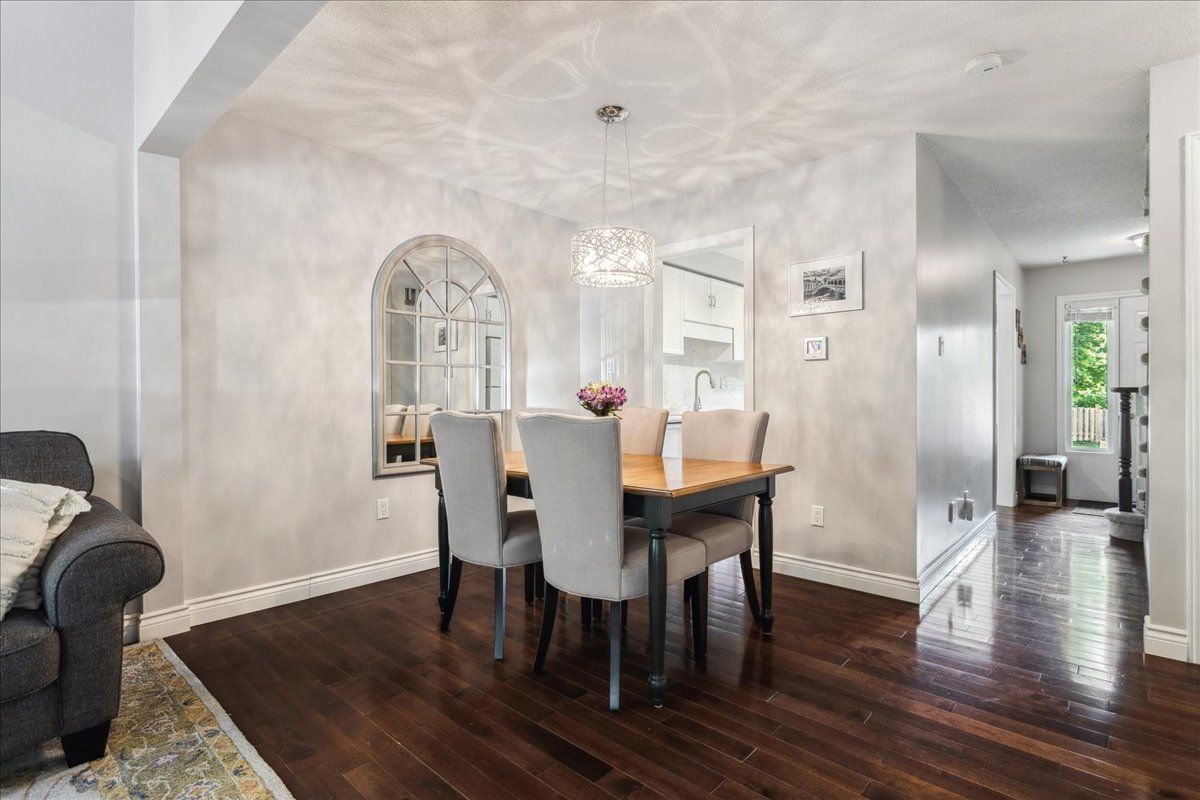 A special opportunity for those right sizing or seeking their first home. This well-cared for 2 storey townhouse in Headon Forest is perfect. Offering larger than expected living space with refreshed kitchen and bathrooms, it is ready from Day 1. Bright galley kitchen with plenty of cabinetry, leads to open dining and living space. Vaulted Ceilings, as well as large windows capture so much light from the outdoors and glass slider door to the large rear deck. Enjoy easy access to bbq as well as entertaining space with friends, and family. Unique floorplan allows for a main floor laundry/mud room with interior access to garage. Guest powder room completes this level. Second level finds the principal bedroom with twin closets and large 4 pc ensuite with glass shower (‘22). Second bedroom is generous, with its own 4pc bath. Lower level is the perfect spot for workspace or workout area, with a rear rec room. Easy access to QEW, 407, GO. Just a minutes walk from parks, shops, schools.