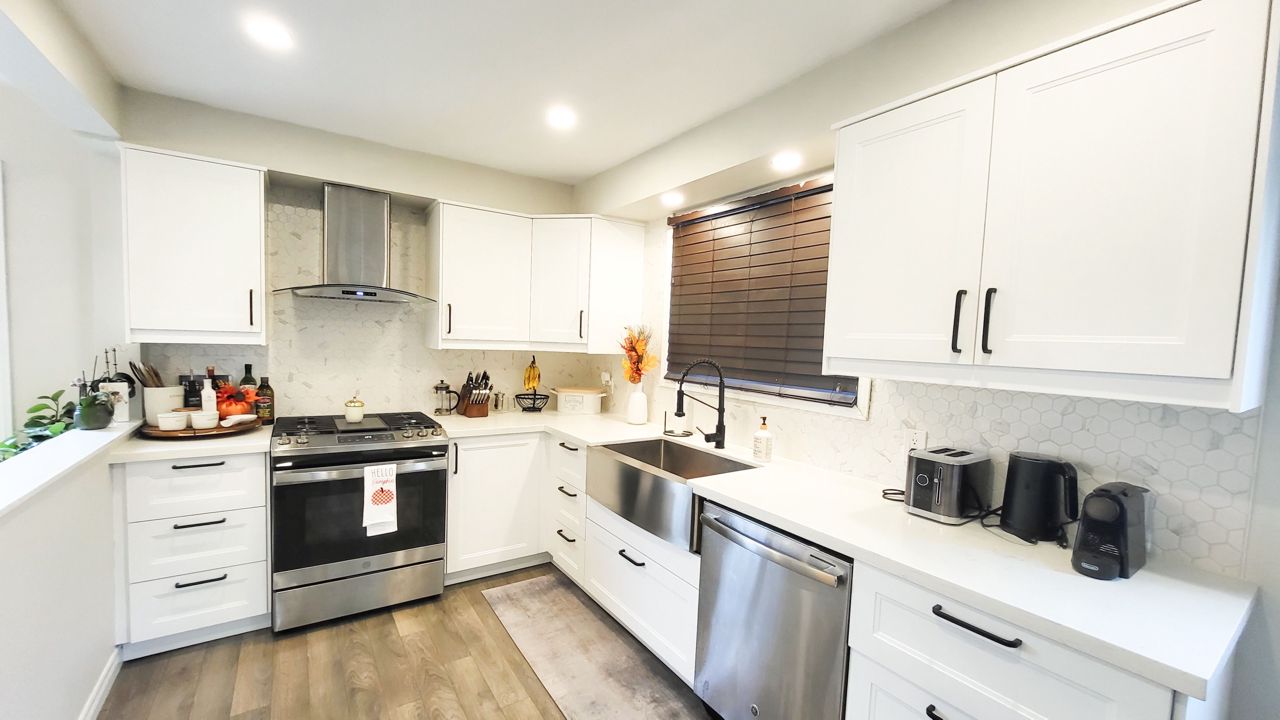New cabinets offering ample storage to the sleek quartz countertops that perfectly complement the