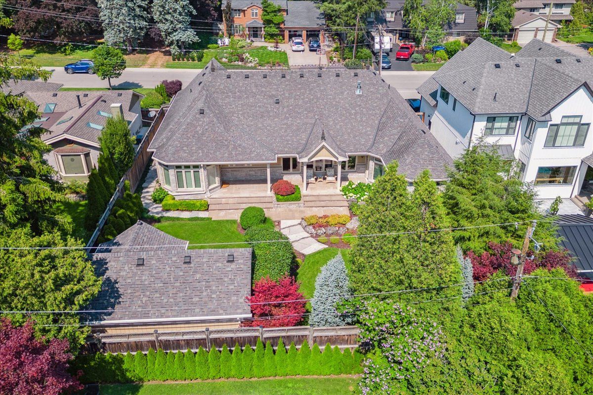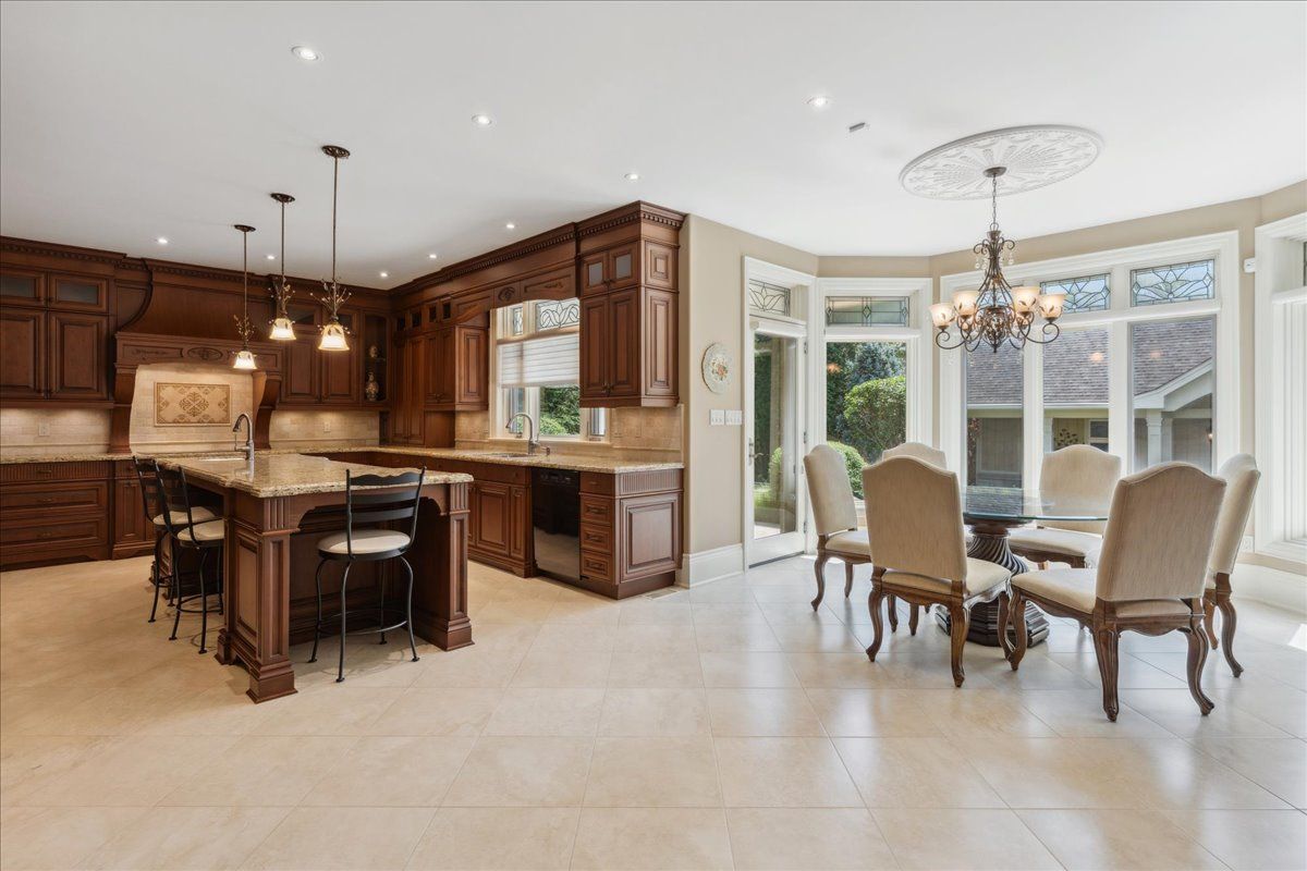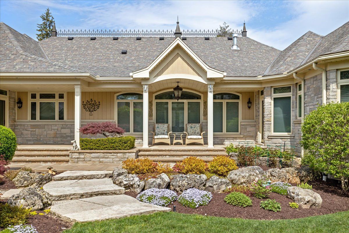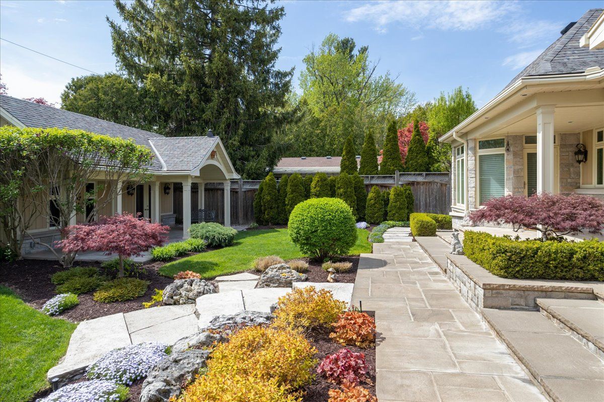 Welcome to this exceptional custom built bungalow, a true masterpiece crafted with impeccable attention to detail and an unparalleled dedication to luxury living. Spanning over 5,500 sq'ft of total living space plus a fully winterized studio that can be easily utilized as a pool house, this natural stone & stucco home offers an abundance of room for comfortable living & lavish entertaining. The expansive patio, elegantly overlooking the meticulously manicured garden, beckons you to indulge in the serene outdoor paradise. Stunning pillars and arches adorned each room on the main level. The primary bedroom is a true sanctuary, complete w/ a cozy sitting area and direct access to the patio. The gourmet kitchen is a chef's dream with ample space culinary creations, featuring granite counter tops cherry wood cabinetry and built-in appliances. The grandeur of the living room is accentuated by its soaring ceilings. Experience the convenience & versatility of a bsmt with dual points of entry