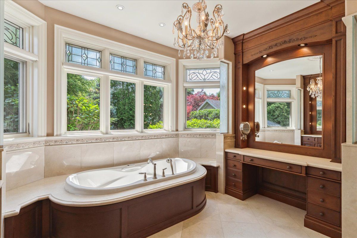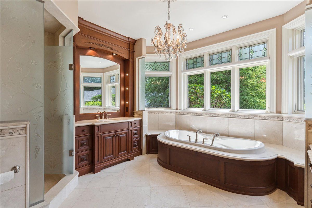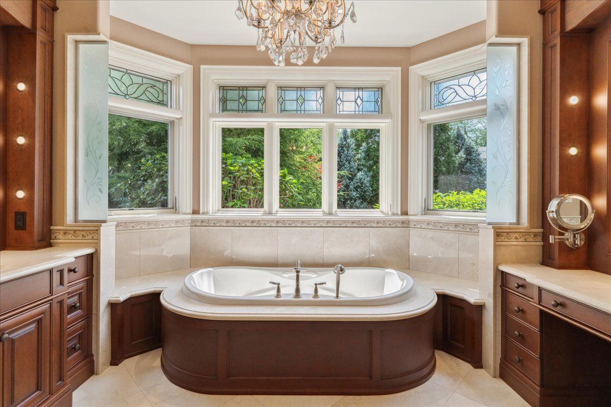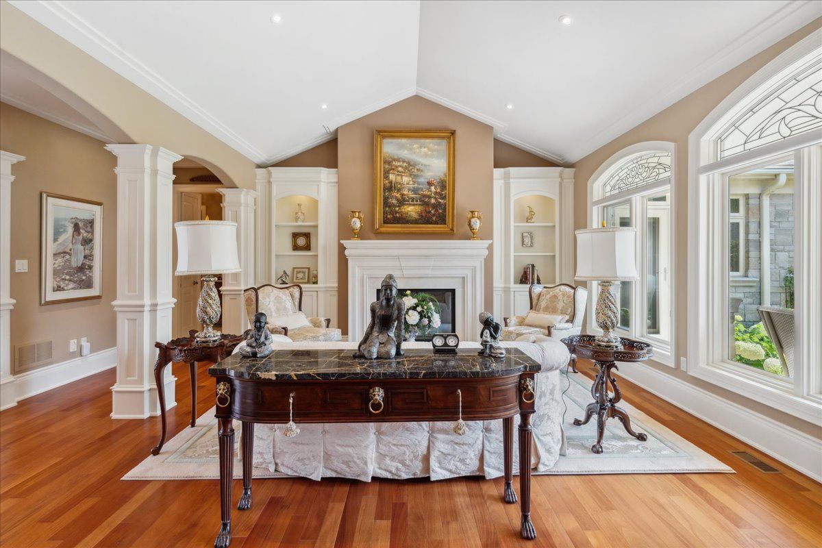 Welcome to this exceptional custom built bungalow, a true masterpiece crafted with impeccable attention to detail and an unparalleled dedication to luxury living. Spanning over 5,500 sq'ft of total living space plus a fully winterized studio that can be easily utilized as a pool house, this natural stone & stucco home offers an abundance of room for comfortable living & lavish entertaining. The expansive patio, elegantly overlooking the meticulously manicured garden, beckons you to indulge in the serene outdoor paradise. Stunning pillars and arches adorned each room on the main level. The primary bedroom is a true sanctuary, complete w/ a cozy sitting area and direct access to the patio. The gourmet kitchen is a chef's dream with ample space culinary creations, featuring granite counter tops cherry wood cabinetry and built-in appliances. The grandeur of the living room is accentuated by its soaring ceilings. Experience the convenience & versatility of a bsmt with dual points of entry