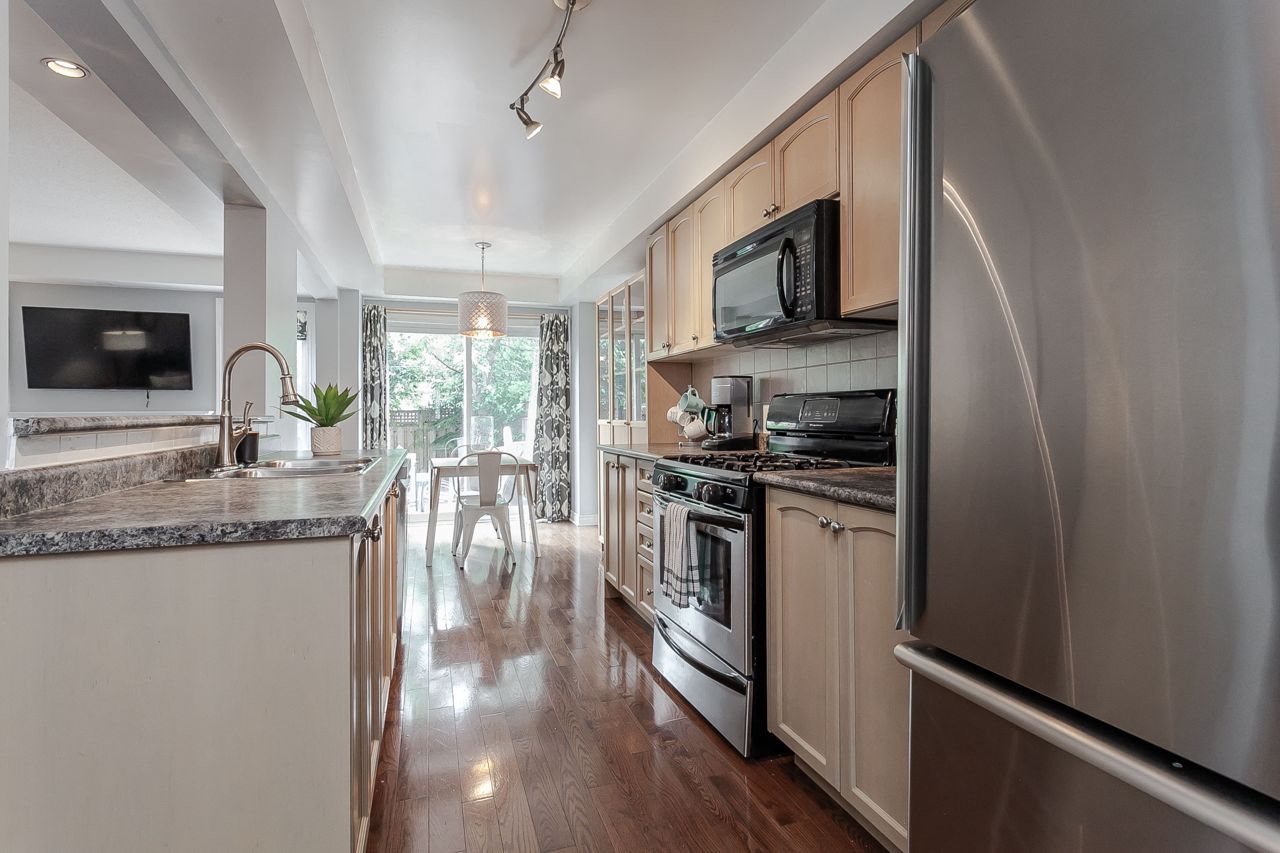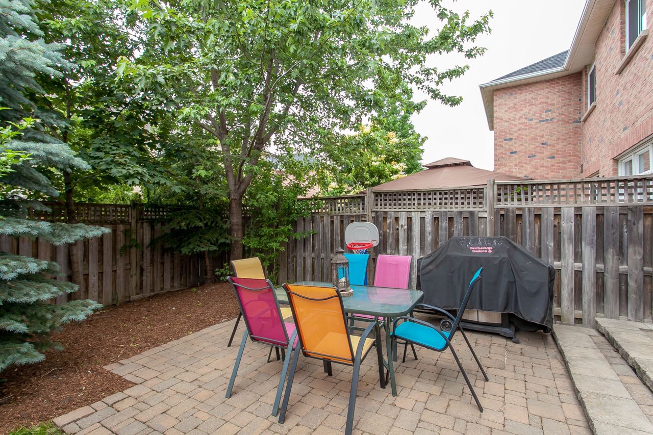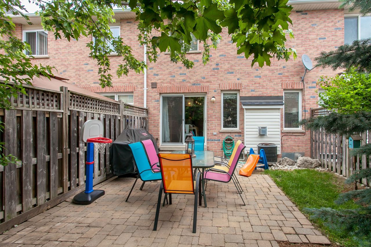 Rare affordable entry point to get into the exclusive Millcroft neighborhood within the Charles R. Beaudoin school district! This fantastic 3 bed 2.5 bath freehold townhome is nestled in a family friendly complex with an inviting entry leading you to the open concept main floor. Eat-in kitchen boasts SS fridge, dishwasher & gas range plus bonus pantry & direct entry to the private fenced backyard w/mature trees, patio & sunny western exposure. The spacious dining room is seamlessly connected to the living room with hardwood floors & gas fireplace. Grand master suite offers dressing area w/wall-to-wall wardrobe & a 4-piece ensuite with soaker tub & separate shower. 2 additional bedrooms share a nicely appointed 4pc main. Finished basement offers a large rec room w/gas fireplace, potlights, built-in wet bar & storage/laundry room. Ideal offering for downsizers & 1st time buyers this incredibly convenient location is steps to schools, a plethora of shopping & minutes to QEW & 407.