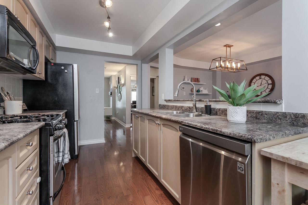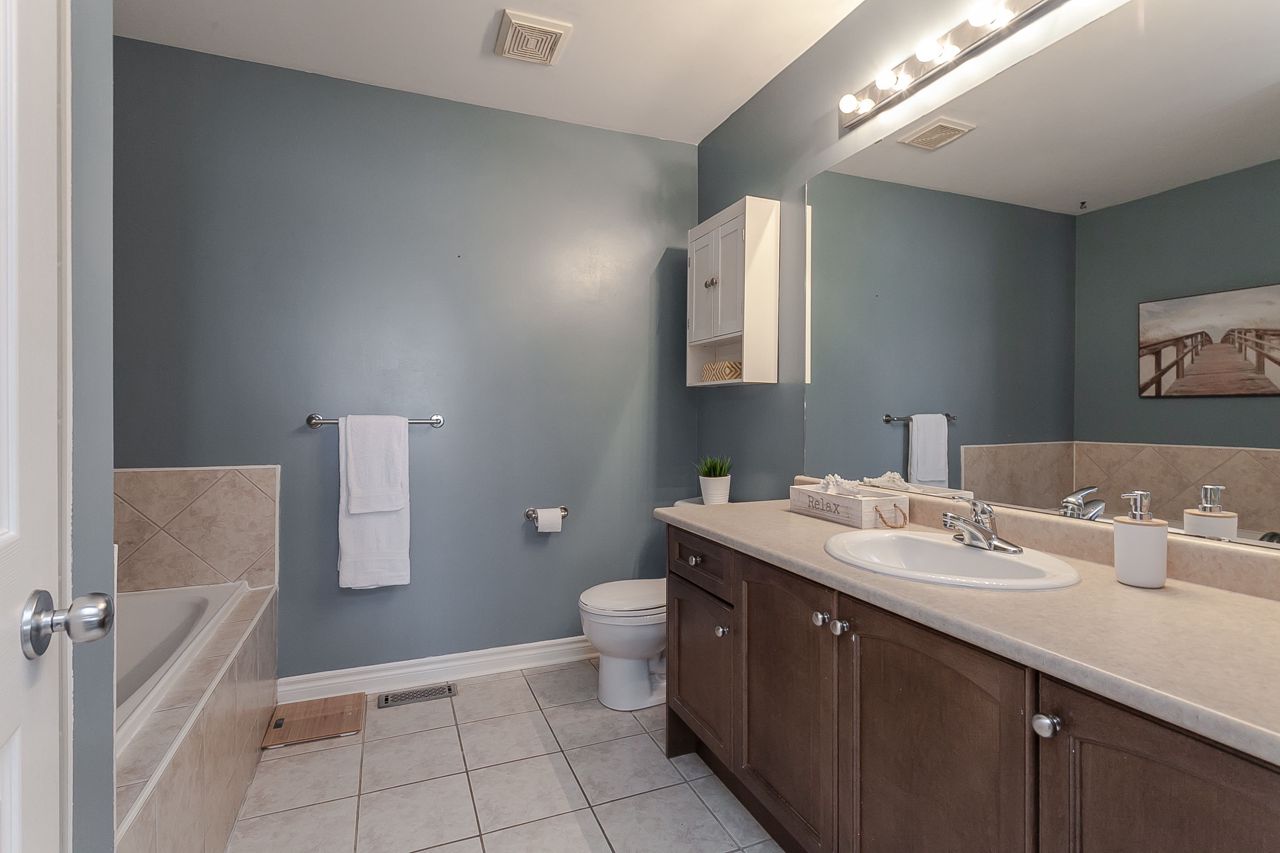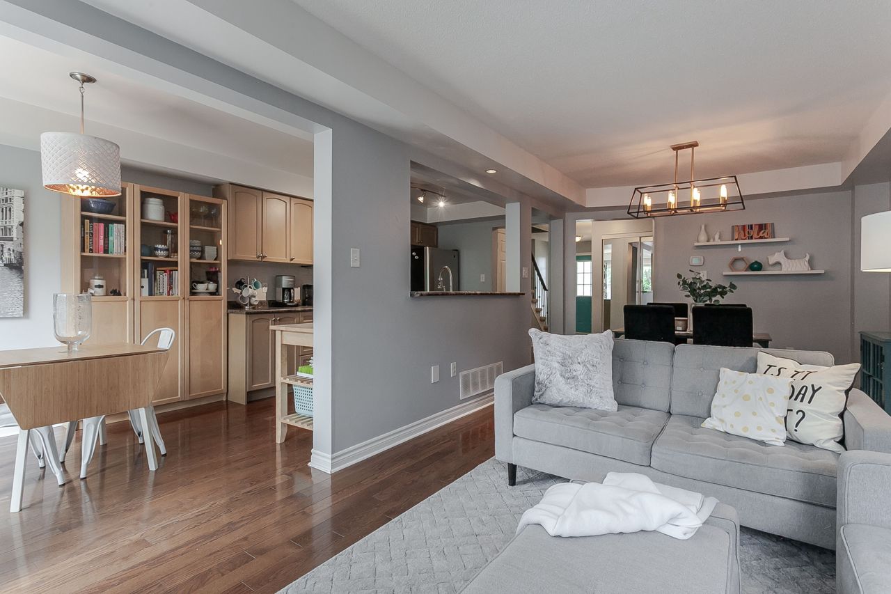 Rare affordable entry point to get into the exclusive Millcroft neighborhood within the Charles R. Beaudoin school district! This fantastic 3 bed 2.5 bath freehold townhome is nestled in a family friendly complex with an inviting entry leading you to the open concept main floor. Eat-in kitchen boasts SS fridge, dishwasher & gas range plus bonus pantry & direct entry to the private fenced backyard w/mature trees, patio & sunny western exposure. The spacious dining room is seamlessly connected to the living room with hardwood floors & gas fireplace. Grand master suite offers dressing area w/wall-to-wall wardrobe & a 4-piece ensuite with soaker tub & separate shower. 2 additional bedrooms share a nicely appointed 4pc main. Finished basement offers a large rec room w/gas fireplace, potlights, built-in wet bar & storage/laundry room. Ideal offering for downsizers & 1st time buyers this incredibly convenient location is steps to schools, a plethora of shopping & minutes to QEW & 407.