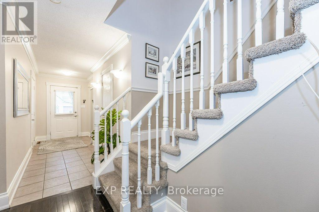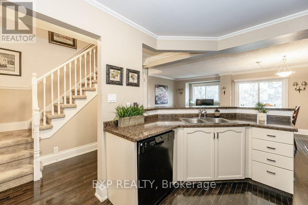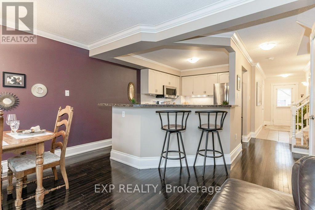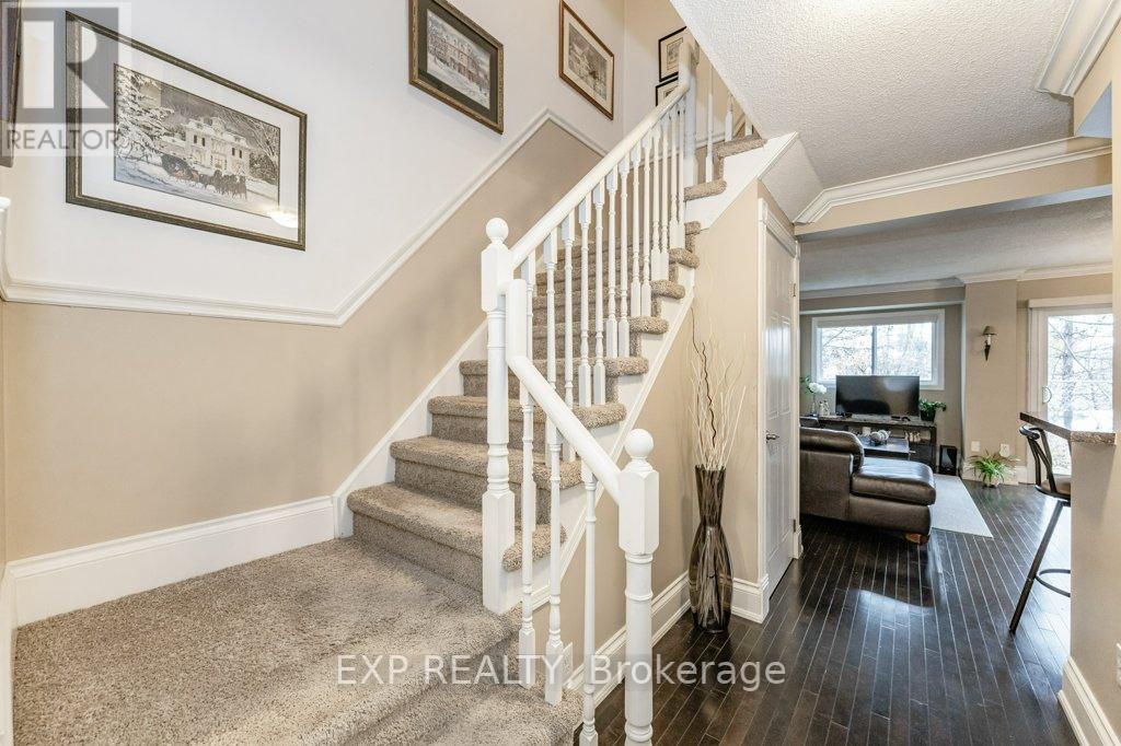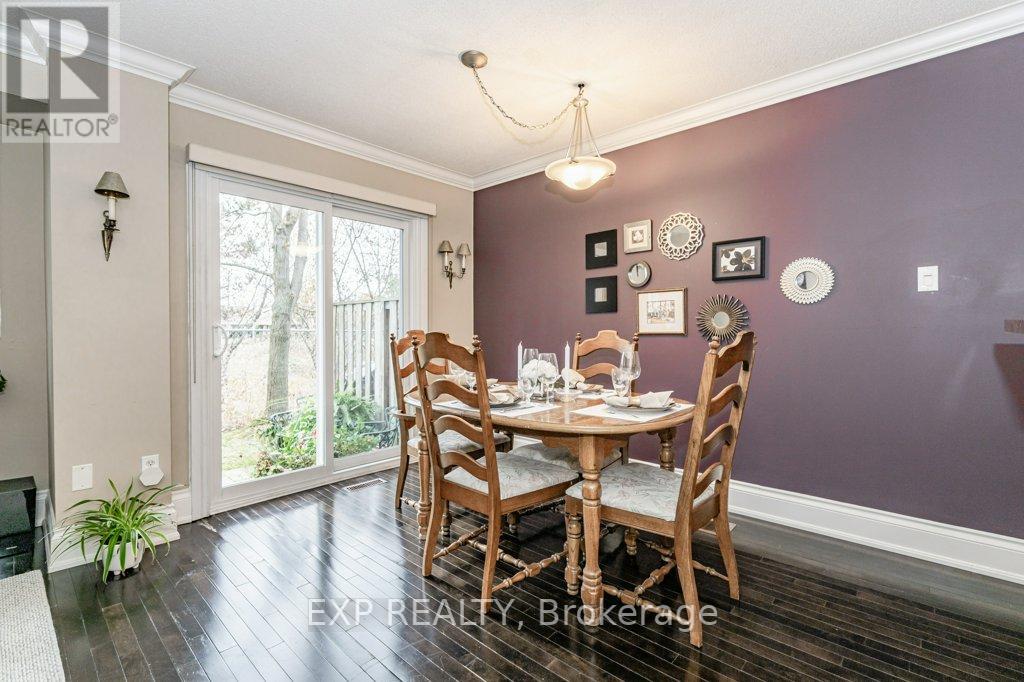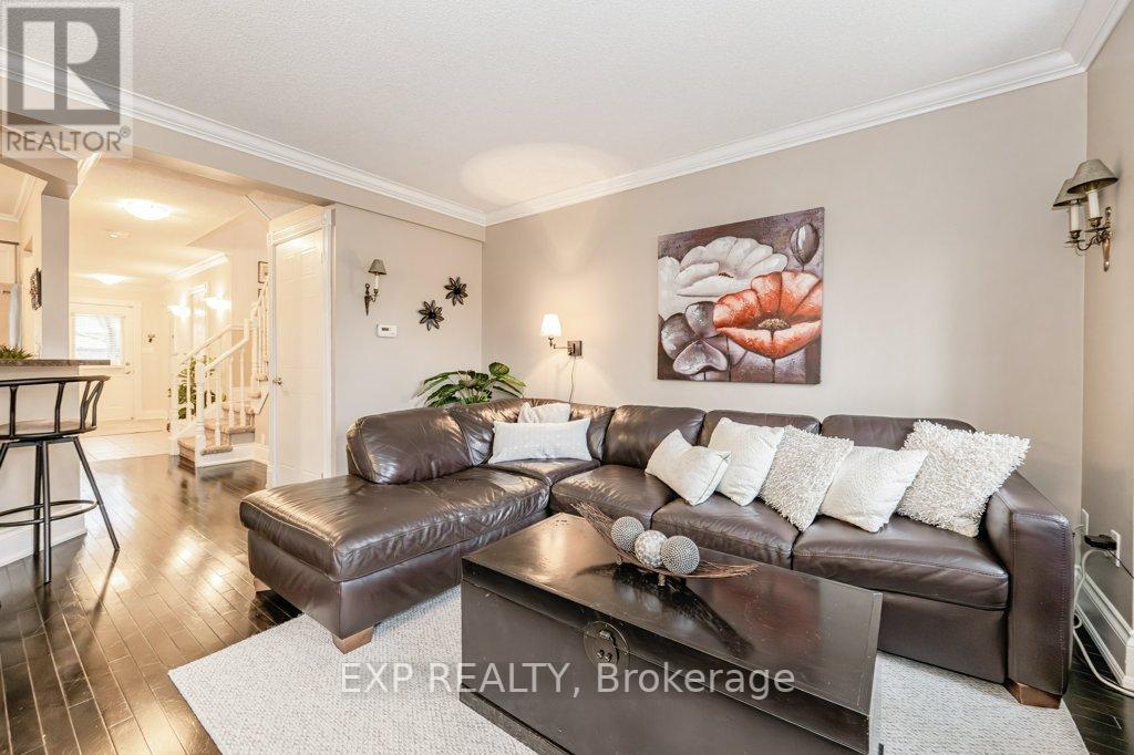 Desirable Headon Forest Neighbourhood! This Superb Townhome Is Situated In A Quiet Complex & Offers Low Condo Fees! Showcasing 3 Bedrooms & 2.5 Baths, The Spacious Foyer of this Home has Ceramic Flooring, a Double Mirrored Closet, a Powder Room and Direct Access to the Garage. Hardwood Flooring is Found in the Principal Areas of the Main Floor. The Kitchen has a Breakfast Bar Overlooking the Combination Living & Dining Room Plus Patio Doors that Walk-Out to a Private Rear Yard with Beautiful, Lush Foliage and No Neighbours Behind! There is a Gas Bib for your BBQ too! The Second Level Offers 3 Generous Size Bedrooms with Lots of Closet Space. The Primary Bedroom has a Convenient 4 Piece Private Ensuite Bath. A Second 4 Piece Bathroom Services the Additional 2 Bedrooms. The Basement Level has a Spacious Finished Recreation Room and is roughed-in for a Future Bathroom. Windows & Patio door replaced 2021.**** EXTRAS **** Move Right In To This Family Community With Parks, Schools & Splash Pad. Minutes To Hwy 5, Hwy 407 & QEW Plus Conveniently Located To The Go Train For Commuters! (id:22211)