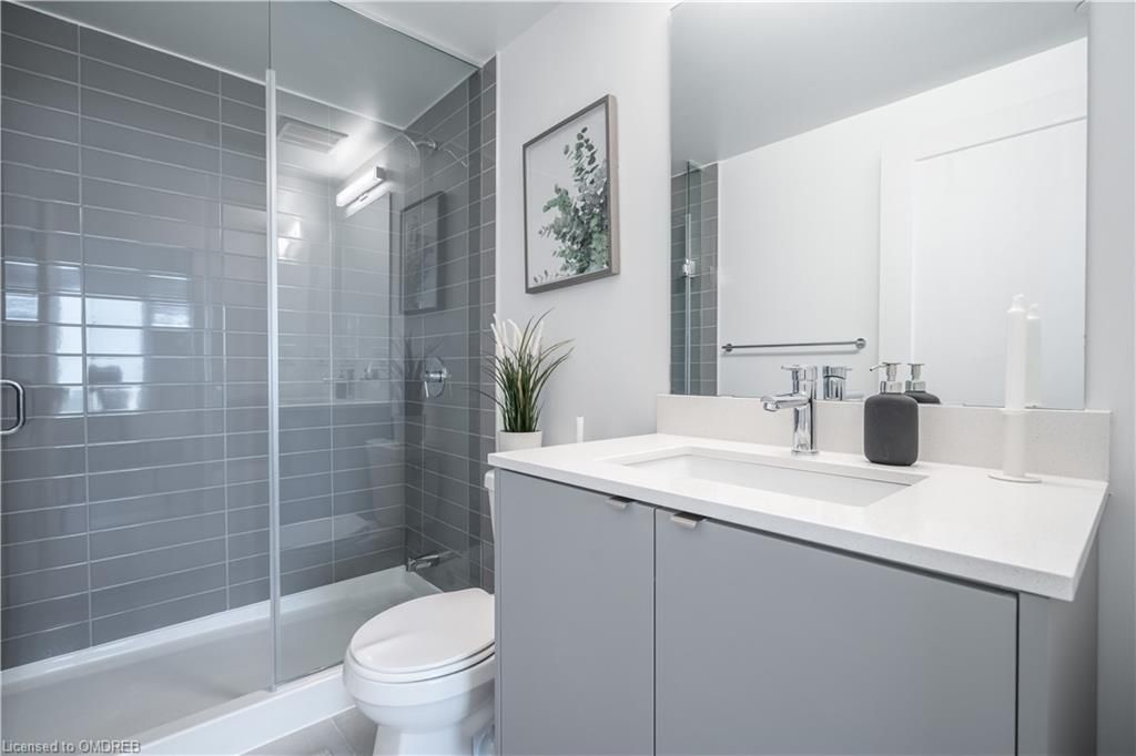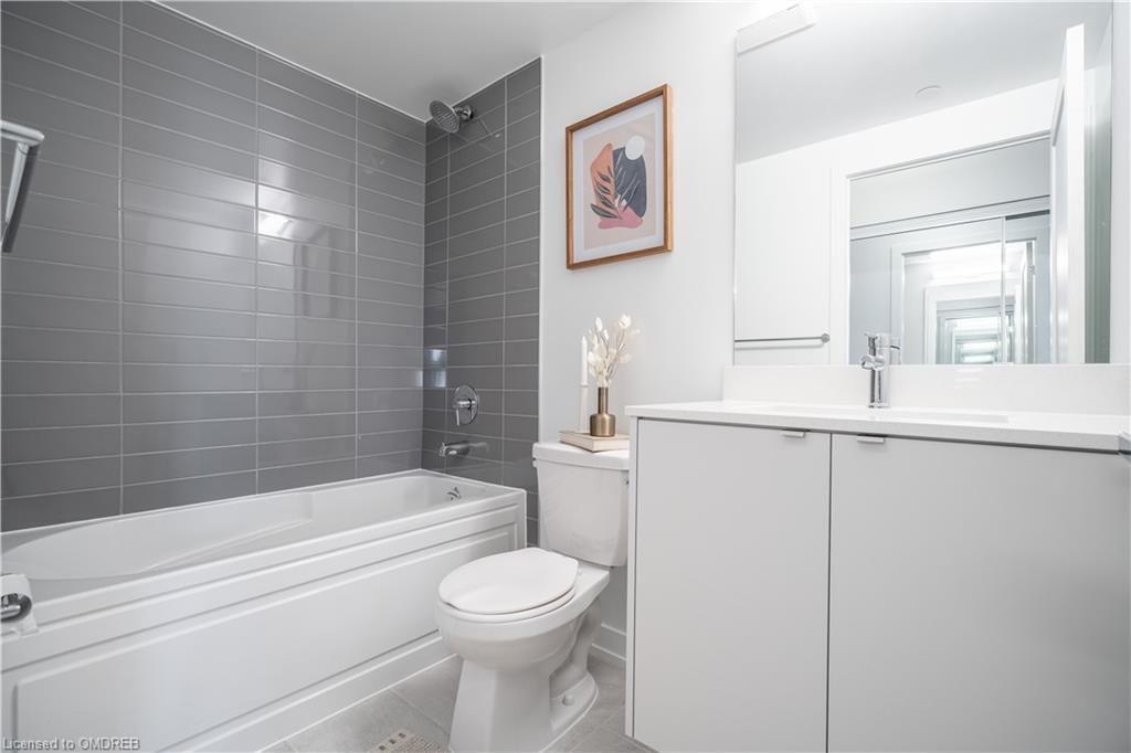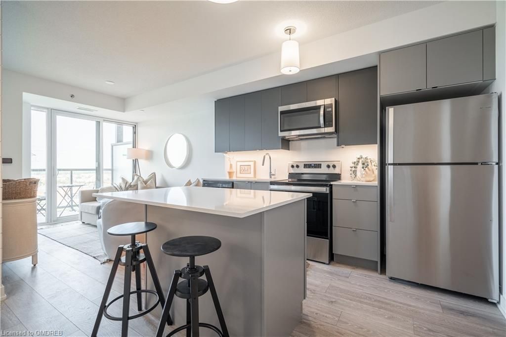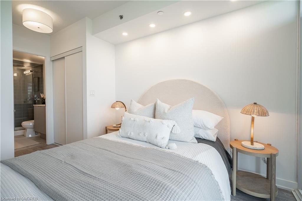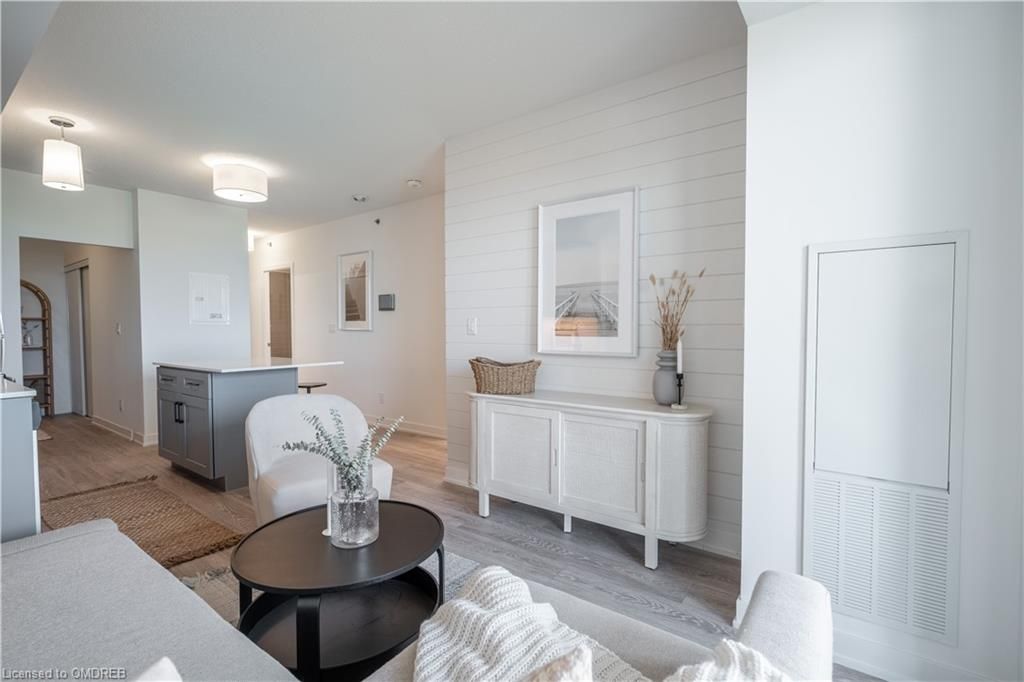 Be the first to live in this brand new 2 bedroom, 2 bathroom condo with TWO underground parking spots in Burlington! No expense spared in this stunning apartment with tons of upgrades including flooring, quartz counters and backsplash, kitchen island, stainless steel whirlpool appliances, shiplap feature wall, upgraded subway tiled bathrooms, all doors and lighting changed from builder-standard, and a balcony that runs the entire width of the unit! This was the #1 chosen floor plan in the building! Beautiful east exposure for enjoying full day sun and sunsets with a view of the pond. Great building amenities including a rooftop pool and patio for enjoying the upcoming Summer weather, fully stocked gym, games/theatre room, and 2 parking. Low maintenance fees, and offers anytime with a flexible closing! Don't miss your chance on this one-of-a-kind apartment!