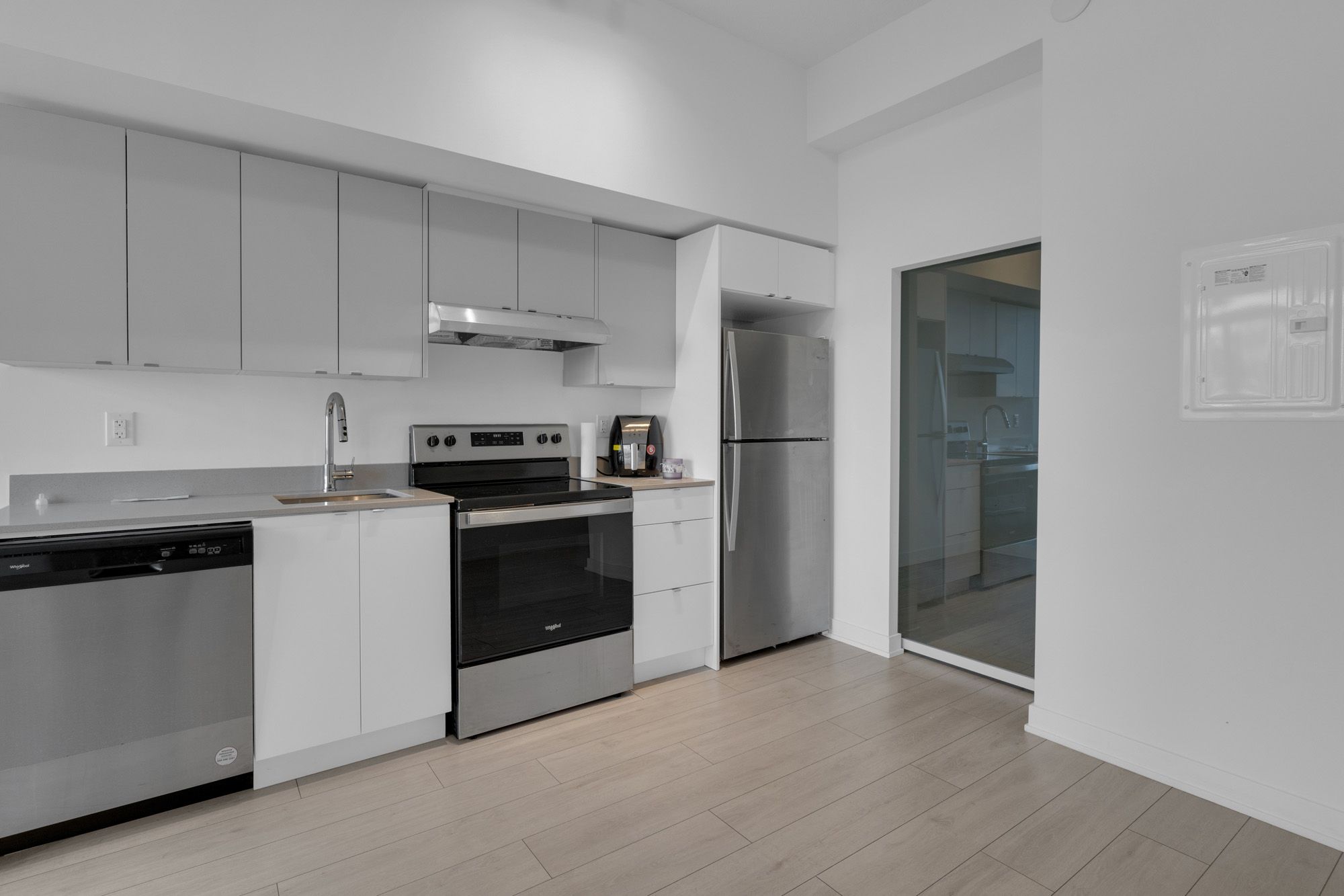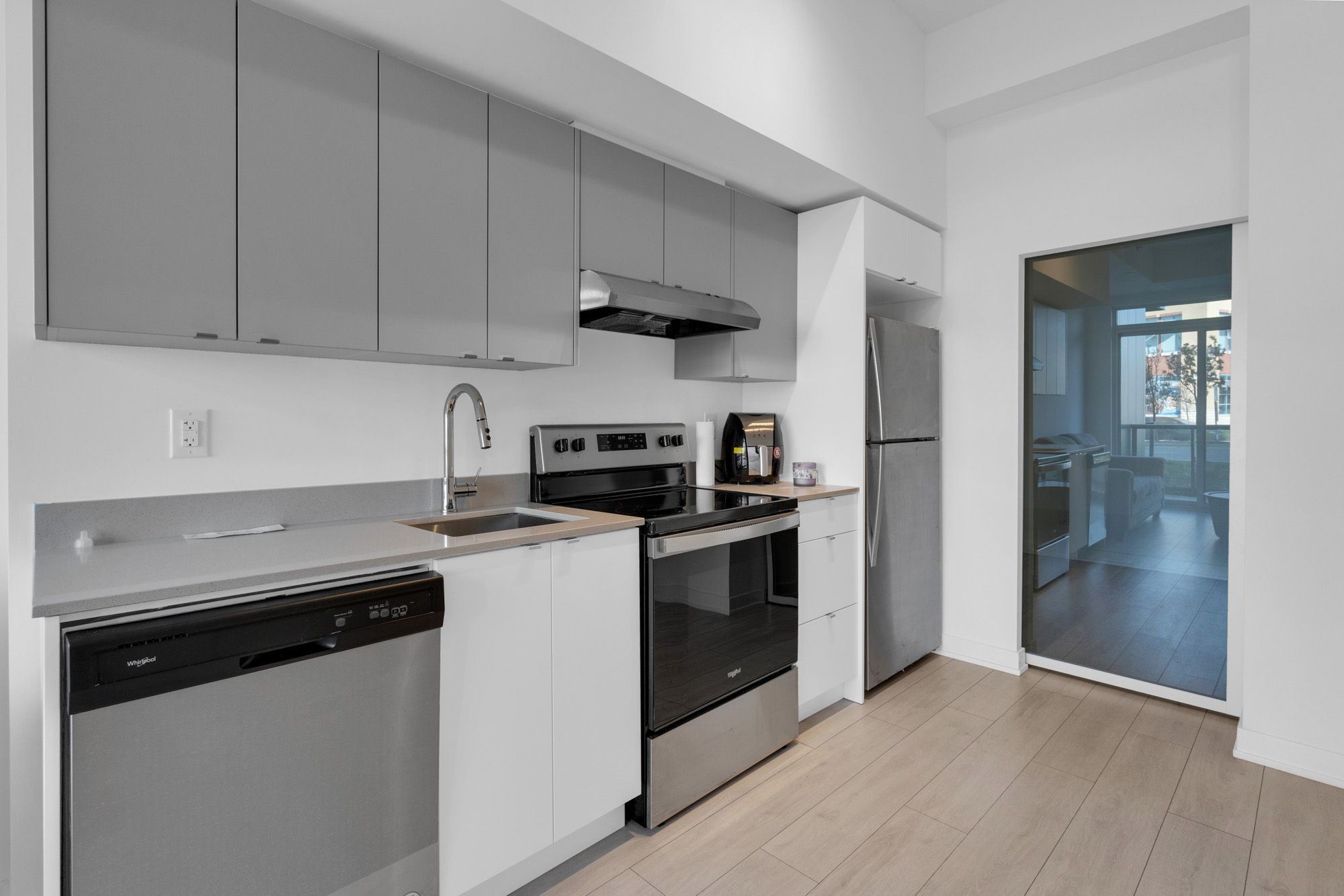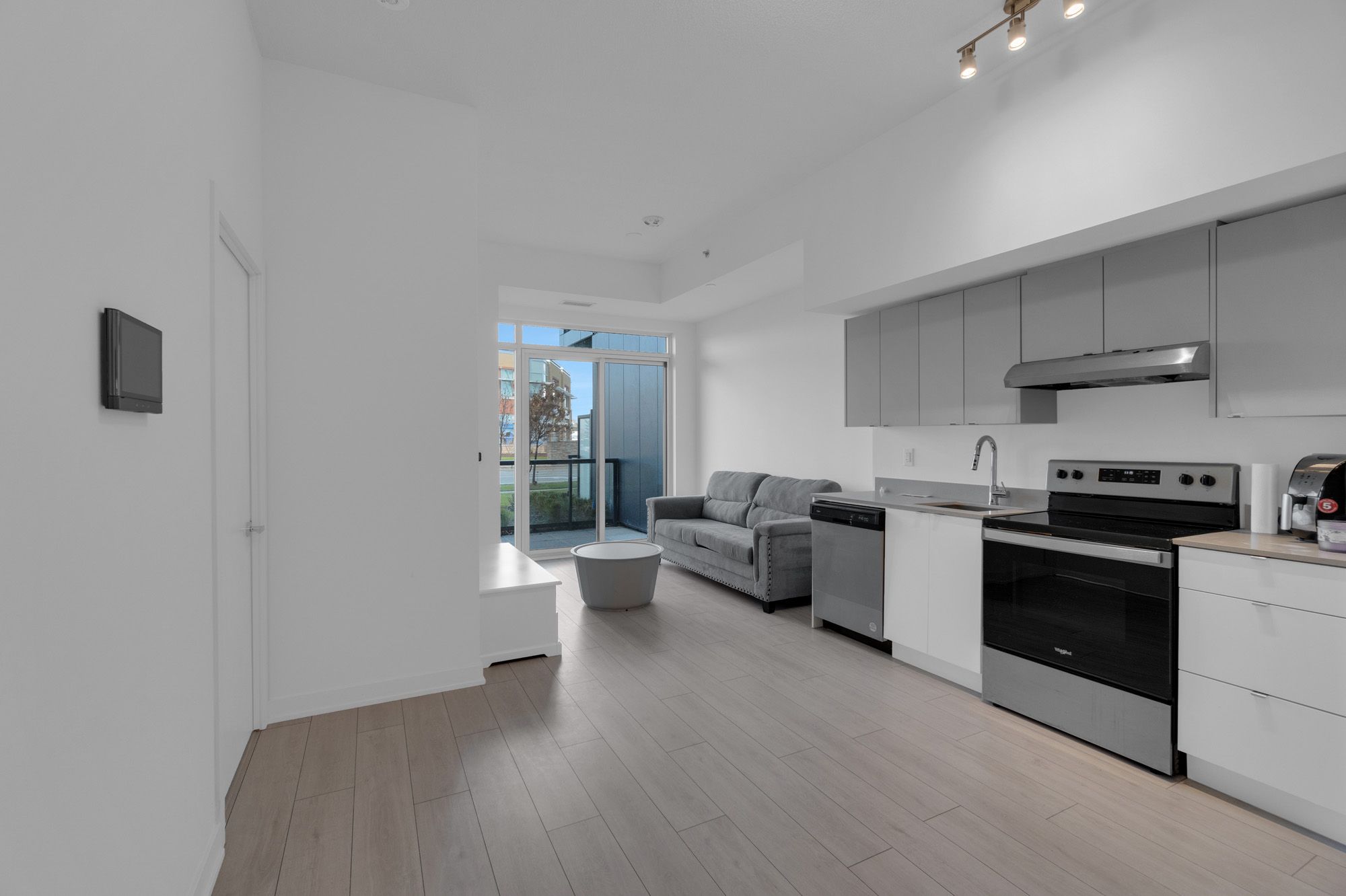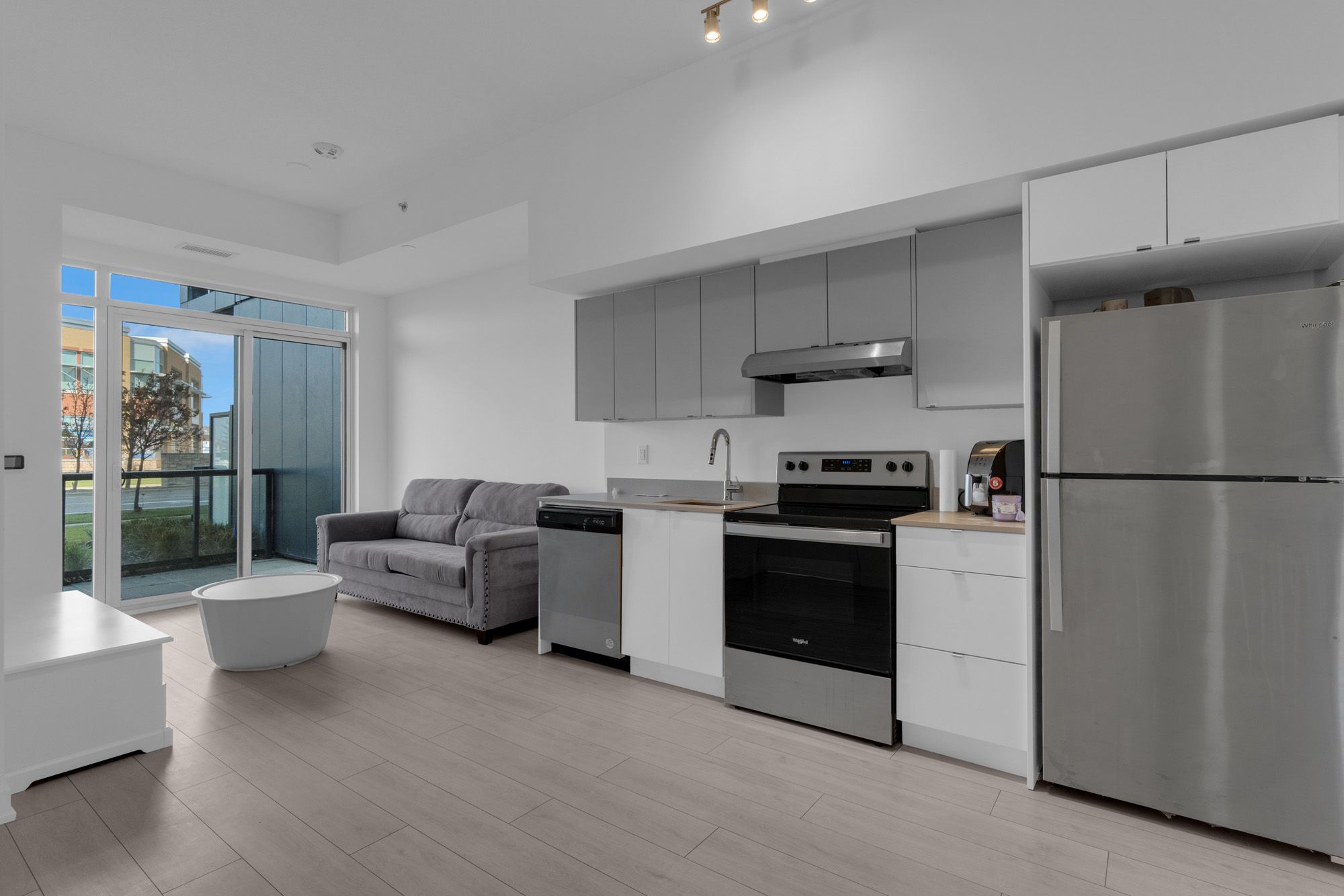 with north west view.Soaring 10ft ceilings, modern finishes, s/s appliances, quartz counters, otr microwave