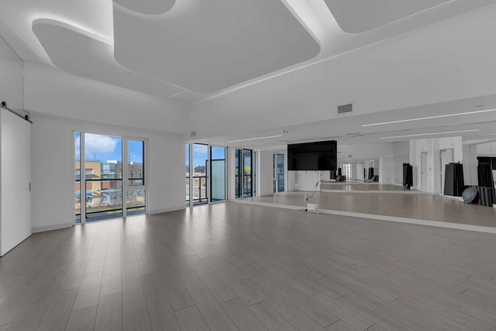 including fitness rm w/ yoga studio, outdoor rooftop pool & lounge, sauna & steam rooms, outdoor bbq