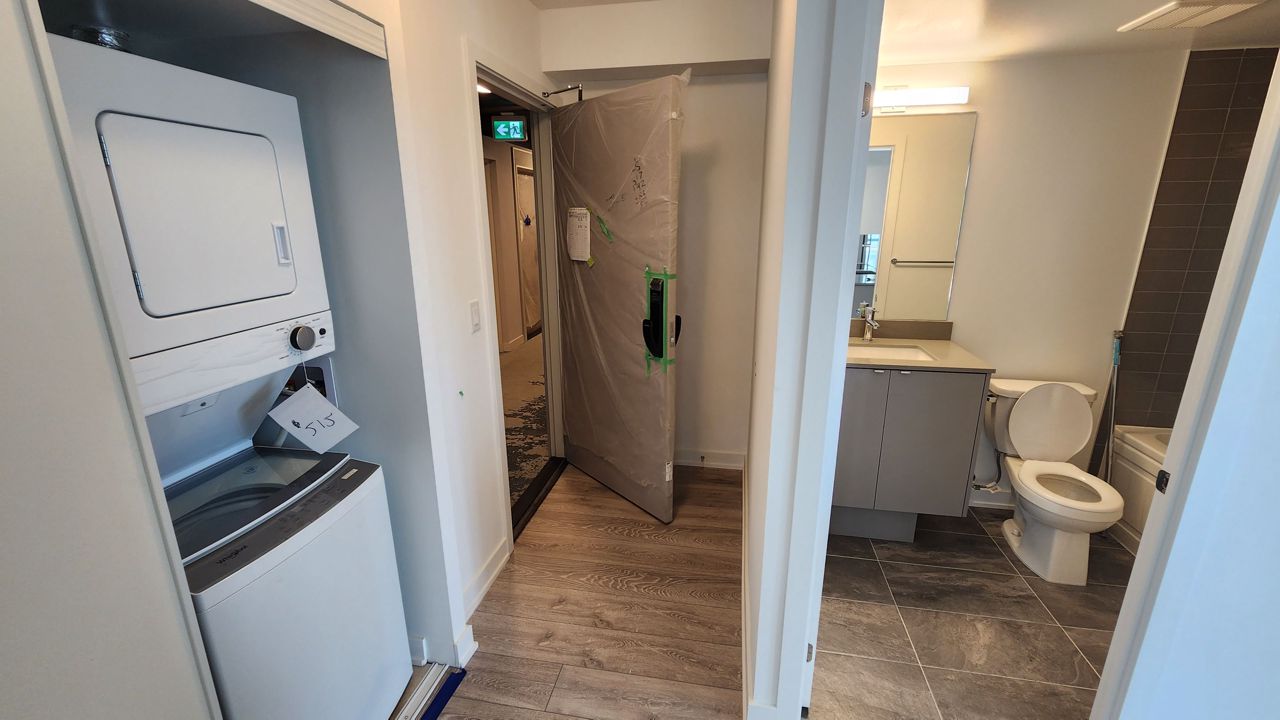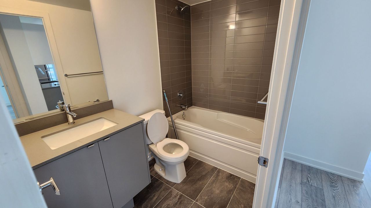 Brand new 2 bed 2 bath CORNER Unit(Never lived in)766 sqft with 207sqft of huge balcony. This building features many tech features, which allows you control from yr unit, like surveillance, guest entry, garage door parking, keyless door entry and many more.