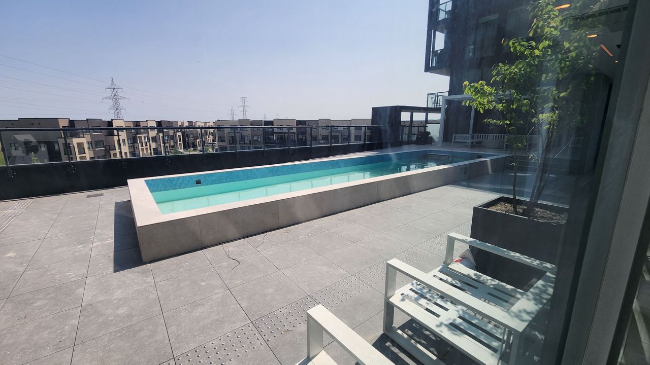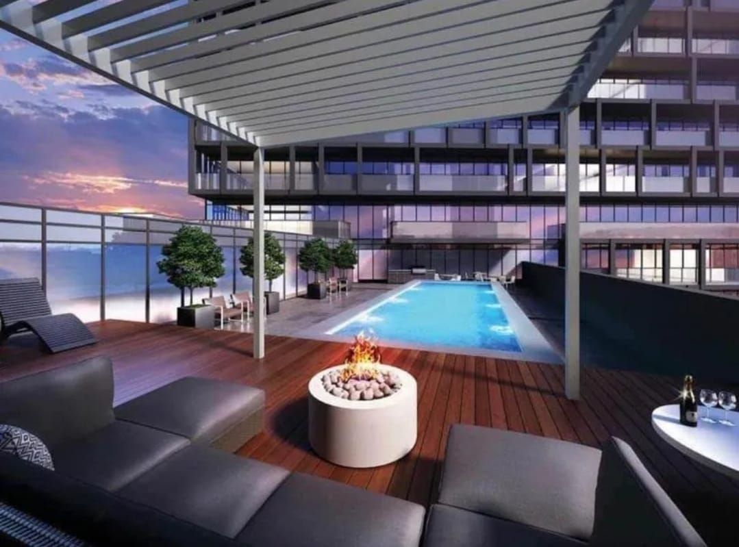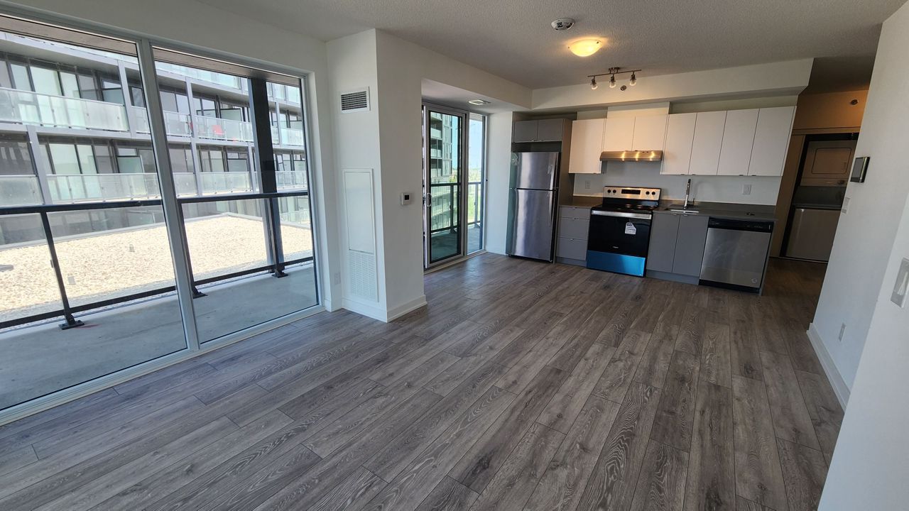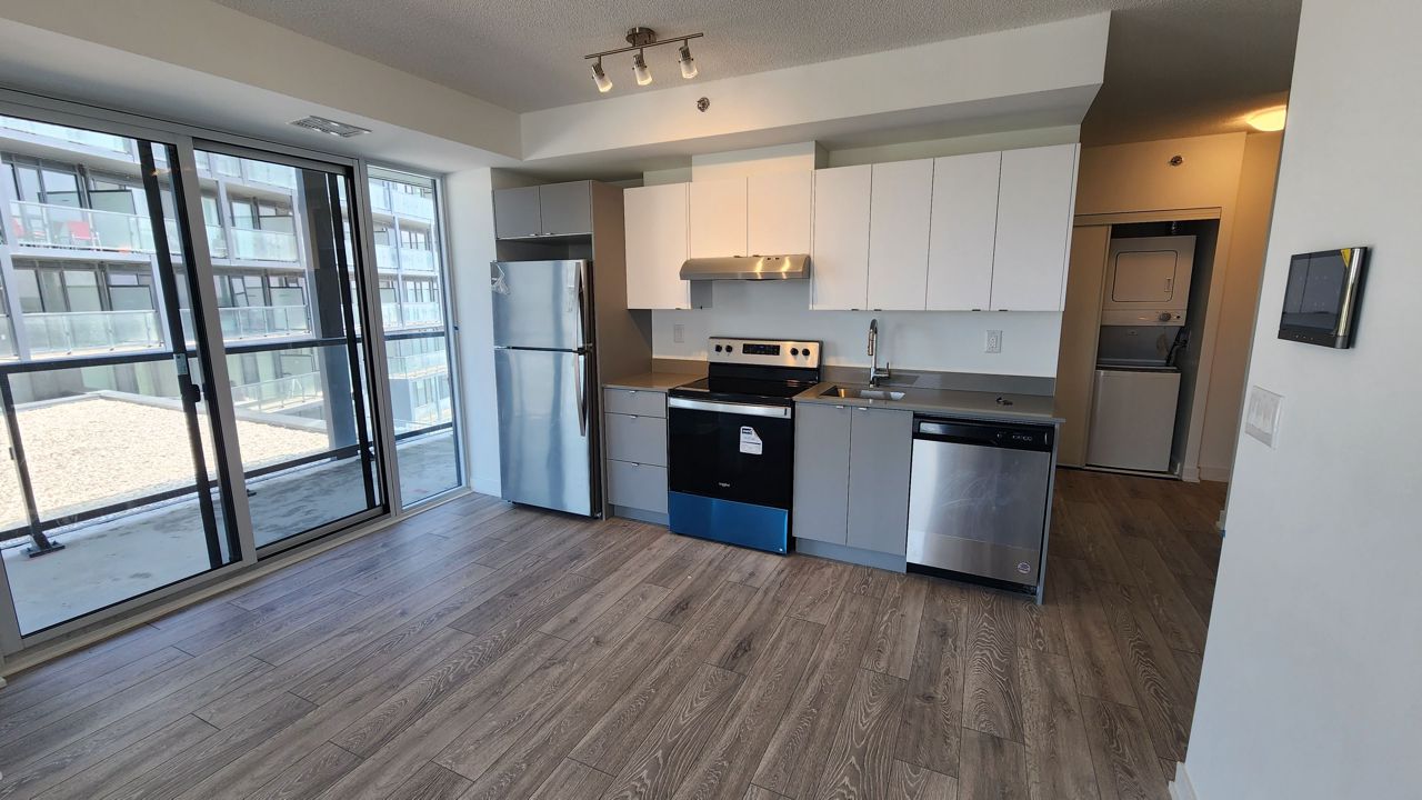 Resort Like Amenities are located On 3rd For Which Include A Pool, Gym, Yoga Room, A Bbq, Sauna, And Steam Room. The Building Is Located Close To Schools, Shopping, Public Transit, With Highway 407 Just North And Qew To The South.S/S Stove, Hood Range, Fridge, Microwave, D/W. Stacked Washer/Dryer. Window Blinds Rollers.