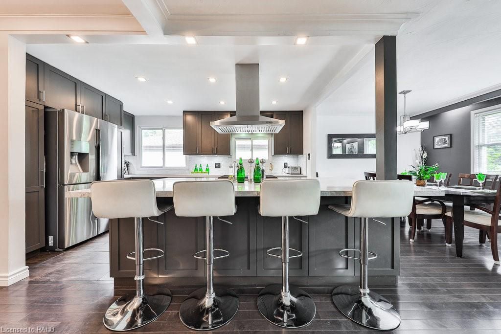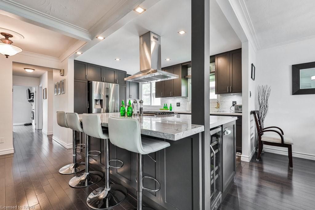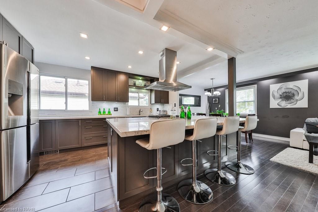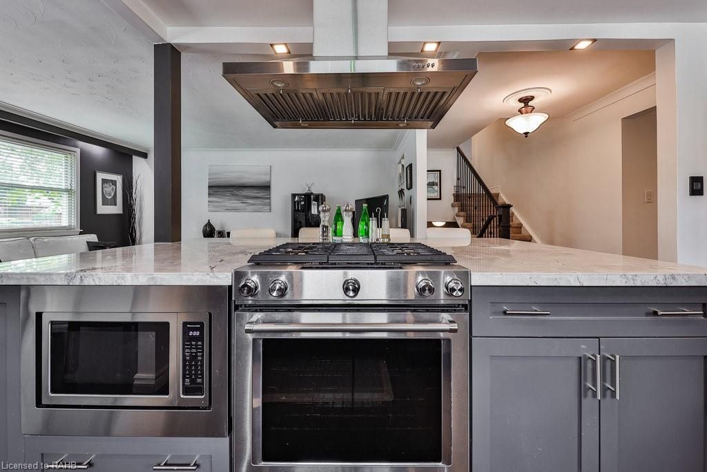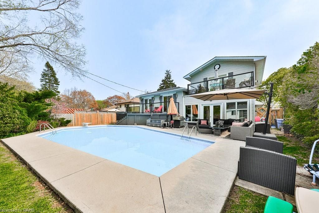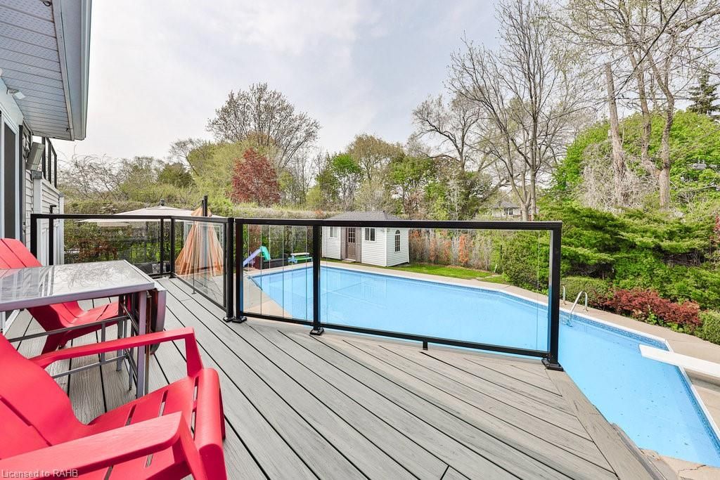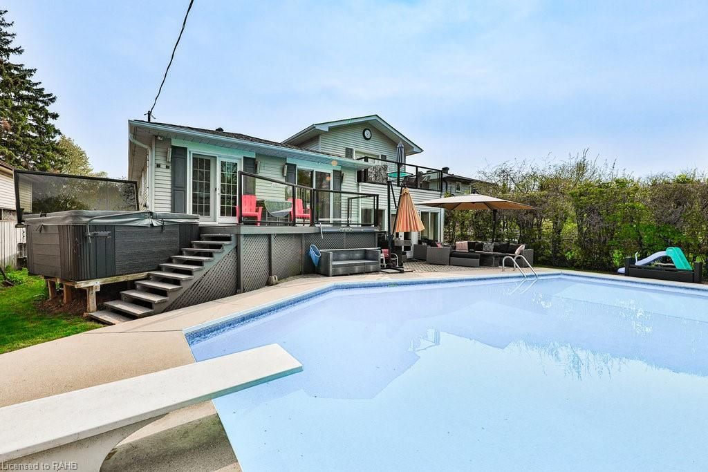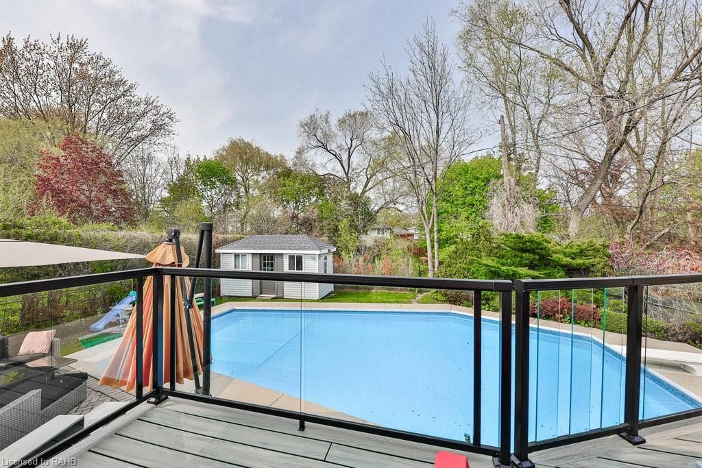 Welcome to our Home! Originally a raised ranch bunglow, an addition was added by Bryan Baeumler (HGTV) in 2009 to include an incredible primary suite w/huge primary bath with cathedral ceilings! The bedroom has soaring cath ceilings, gas f/p, b/i cabinetry and garden doors to a large balcony overlooking the pool, ravine and backyard. Huge walkin closet! Kitchen was completely renovated in 2019 by Shouffany Custom Woodworking, custom cabinetry, 9 foot Quartzite breakfast island with gas stove, white quartz counters, coffee bar, pull out shelving in the 2 large pantries, toe kick drawers! Sep dining room, living room, 3 bedrooms (converted to 2), 4 piece bath and hardwood through out the main level. Both bedrooms have walk outs to a large desk with glass railings, hot tub, pool and ravine. Fully finished bsmt offers 2 large bdrms or 1 bedroom 1 family room with gas f/p (no warranty on fireplace, hasnt been used in years),4 piece bath & pot lights throughout. large glassed in florida rmNatural gas hookups for BBQ and fire table. Soffit lighting on exterior, many smart home features and you get our AWESOME neighbours! Pool is salt water with newer pump, heater and filter