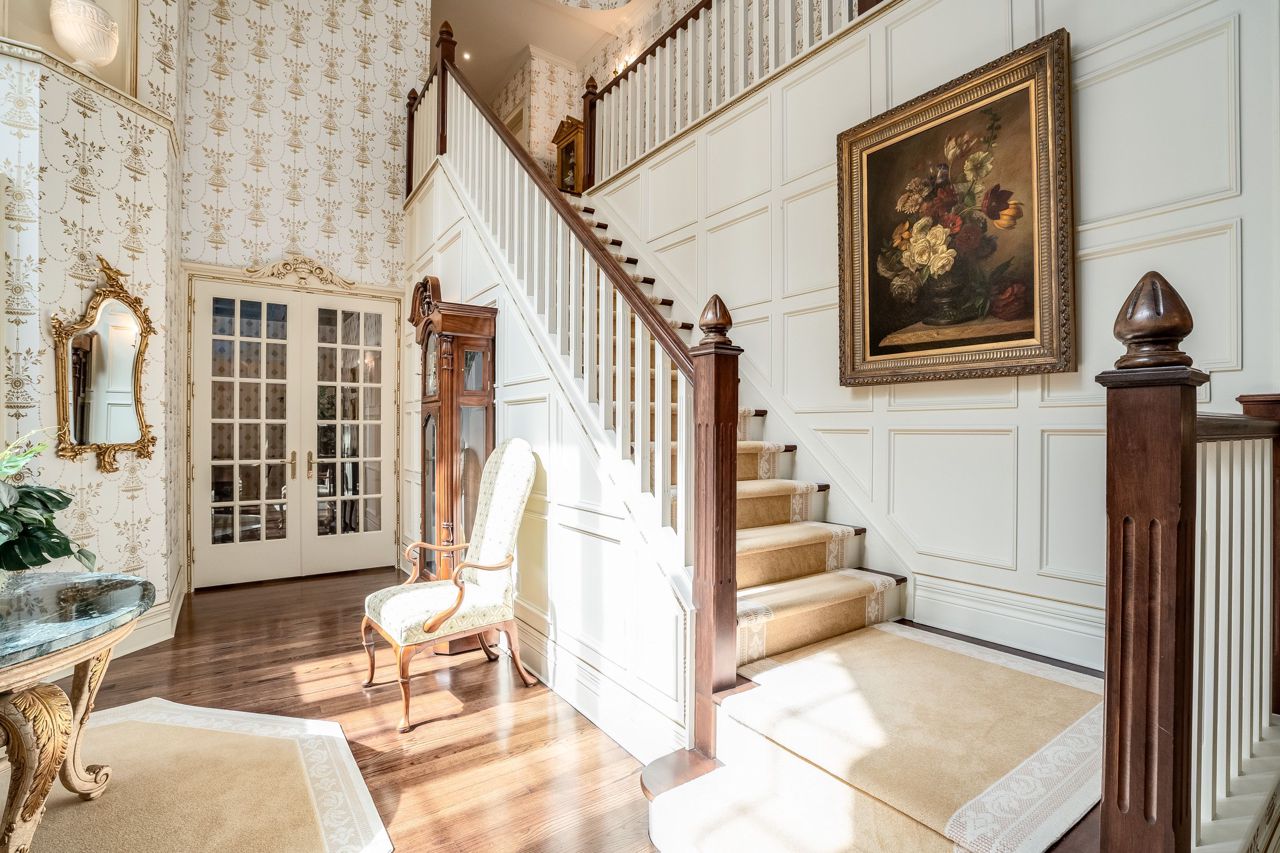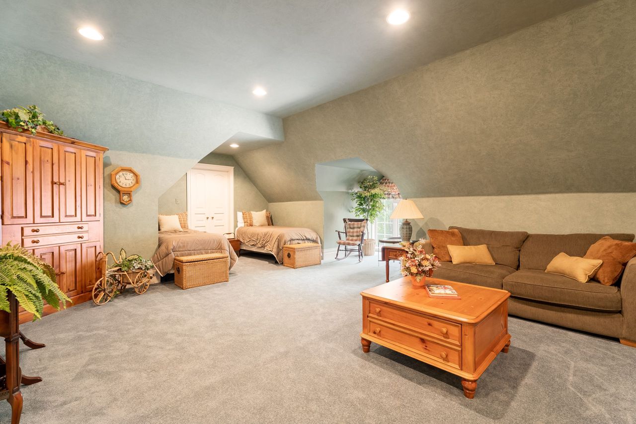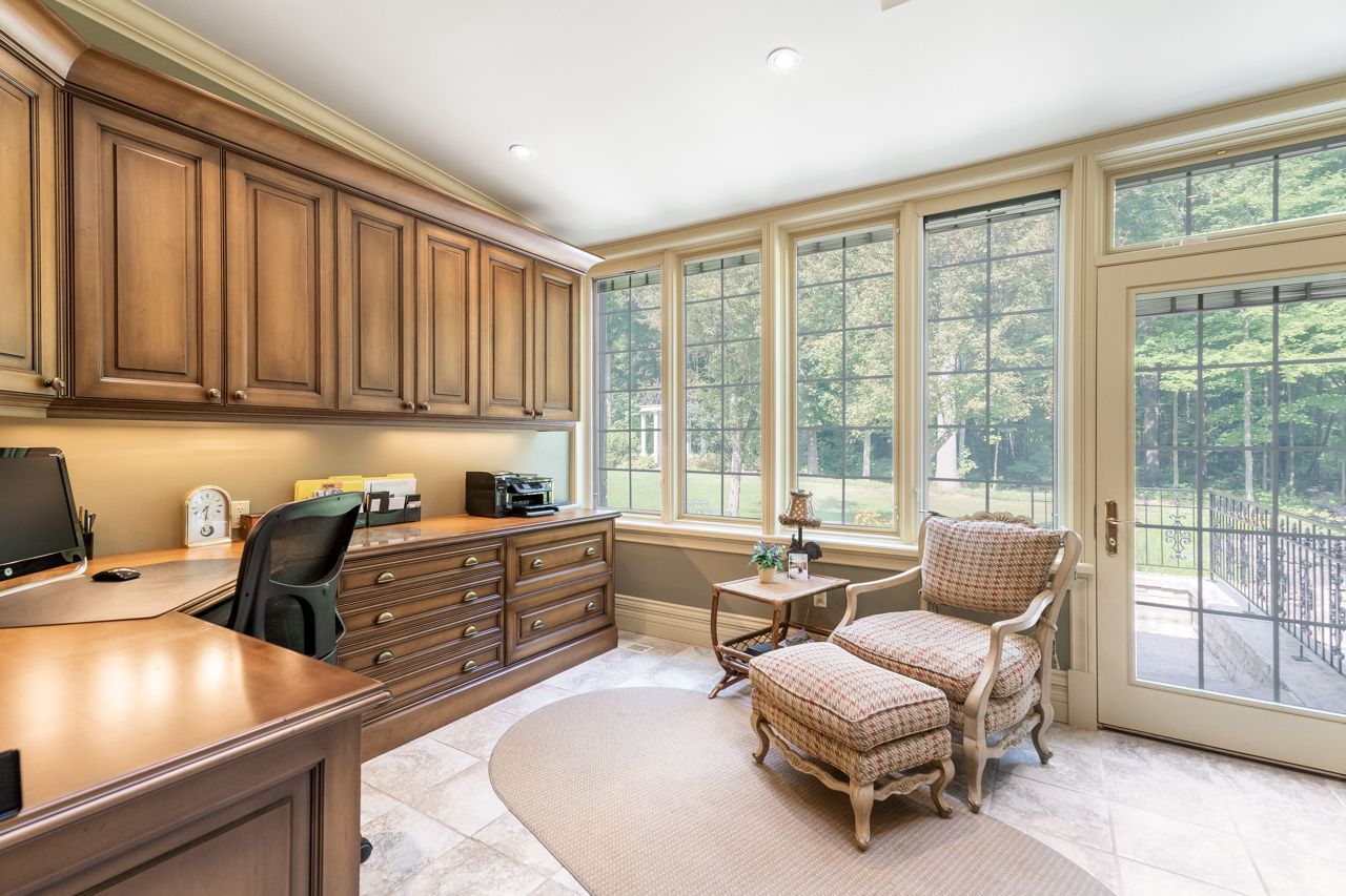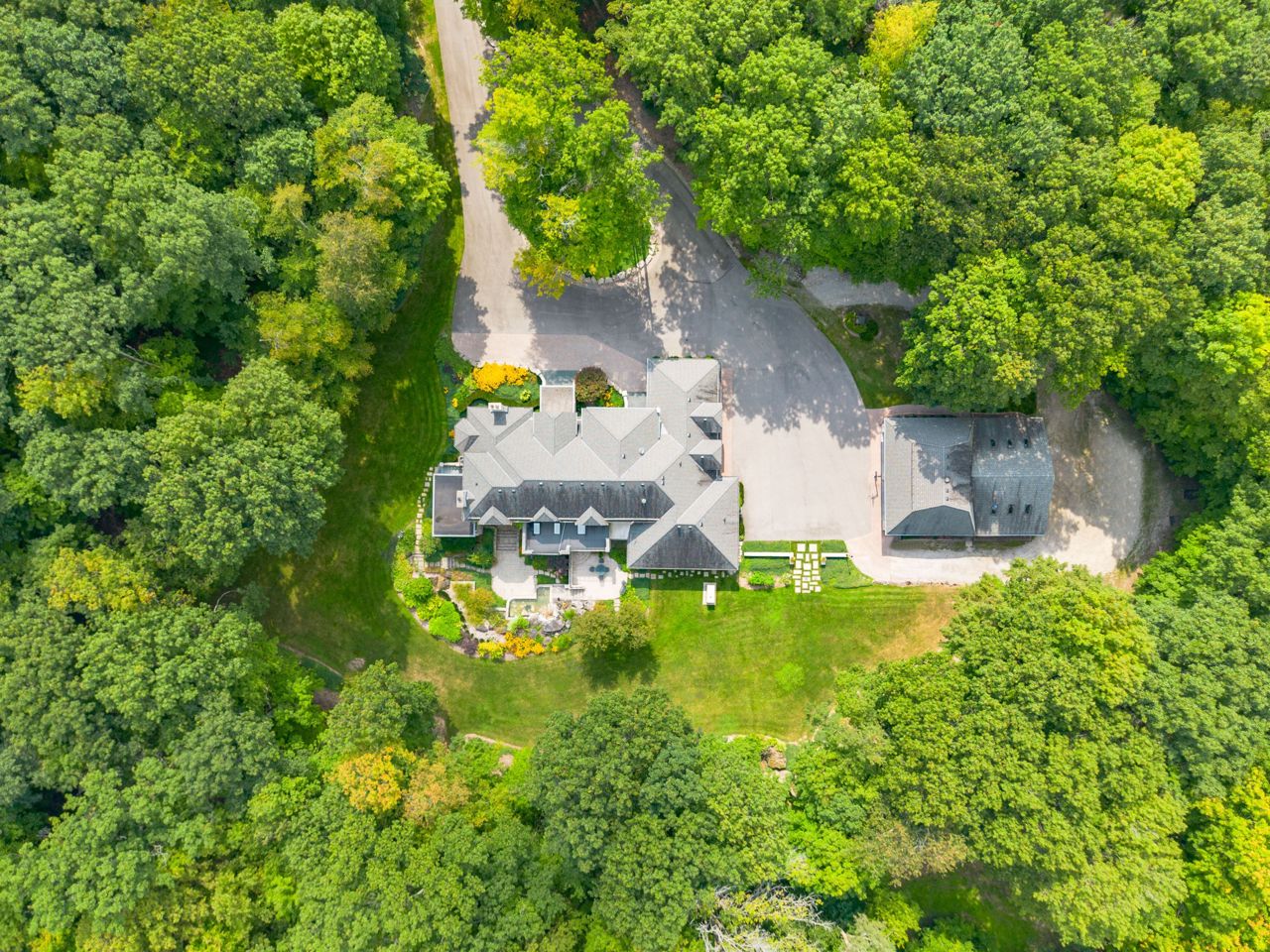 Welcome To This Remarkable English Country Estate Situated on 20 Acres of Well Manicured & Tranquil Grounds w/ Several Walking Trails & The Stream Passing Through The Rear of This Home. Past The Wrought Iron Gates & Up The Circular Driveway Lies A Breathtaking Residence W/ A Refined European Interior Offering Over 10,800 SF Total. The Front Foyer Welcomes You Into Soaring Ceiling Heights, Rich H/W Flrs & Prodigious Primary Rms Designed W/ Unrivalled Workmanship. The Lovely Dining Rm w/ Butlers Servery, Intricate Coffered Ceilings, B/I Speakers & Lg Pella Windows Provides Access To The Classic Kitchen W/ 2 Lg Islands, Granite Counters, B/I Dacor Appls & 2 Skylights. Flanking The Kitchen is A Lovely Seating Area w/ Gas F/P & An Office w/ B/i Desk That Opens Up To The Ultra Private & Tranquil Grounds. The Family Rm W/ Venetian Plastered Walls Forms The Perfect Gathering Space W/ Access To Your Covered Porch w/ Seating Area + B/I Bbq.The Owners Suite on The Main Lvl Fts His/Her W/I ClosetsA 5pc Ensuite w/ Heated Flrs & O/L's The Garden. 4 Lg Bdrms w/ Their Own Design Details Above + A Loft. This Home Also Fts: A Bsmt W/ 2nd Kitchen, A Guest Suite, Wet Bar, Wine Cellar, Great Rm, Gym, Workshop & Detached 8 Car Garage + More!