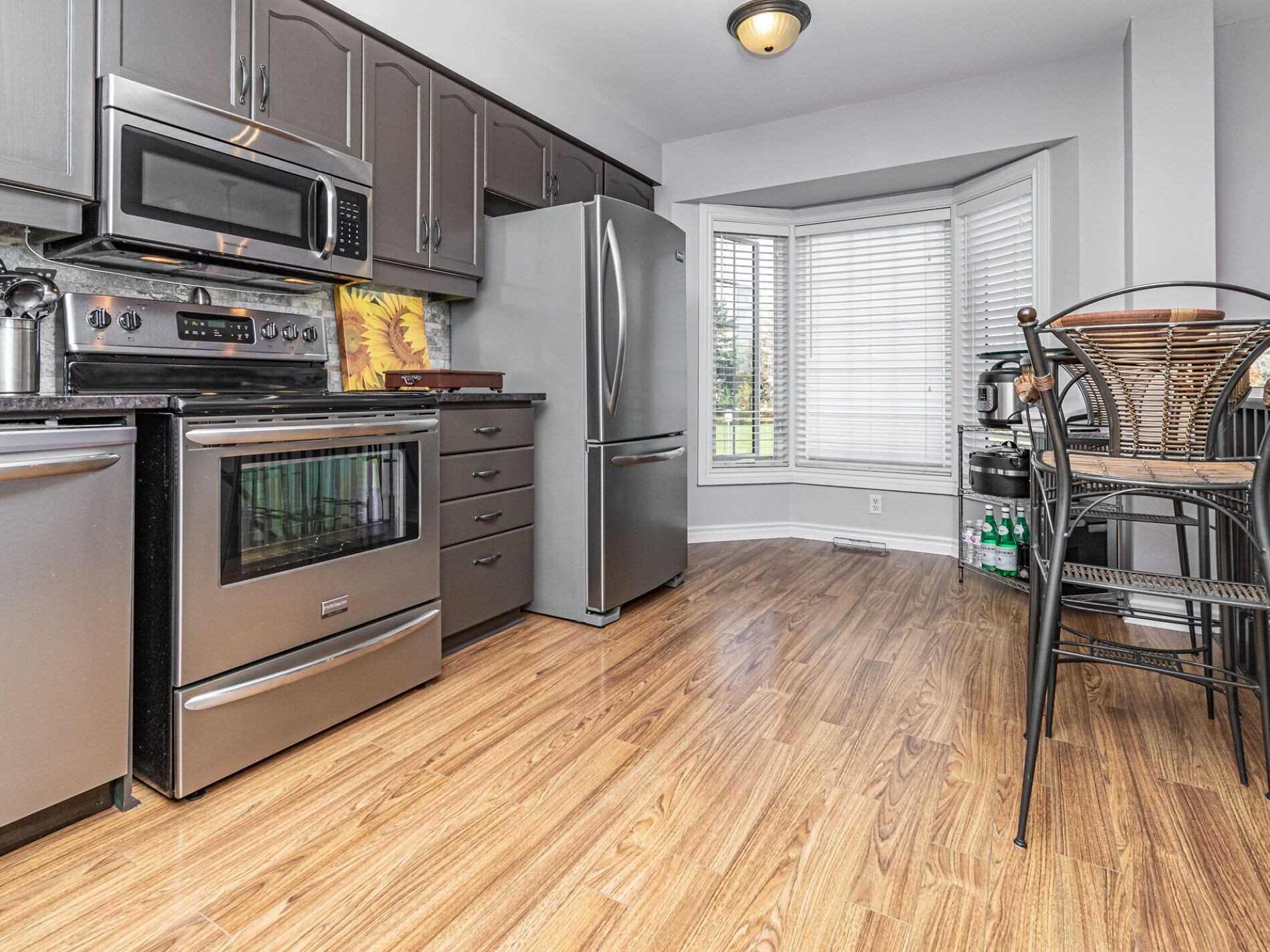 G*O*R*G*E*O*U*S 罕见的3卧室端单元,位于Burlington市中心!设计师风格的厨房:花岗岩台面/不锈钢电器/早餐吧!明亮的客厅/餐厅带阳台,俯瞰私人露台!2019年更新的楼梯带地毯!主卧套房带男女独立衣橱!2019年更新的浴室!地下室带家庭房/通往露台的出口/车库通道。装修好的洗衣房!2016年更换的炉子和空调。2012年更换的屋顶瓦片。2020/2021年更换餐厅和三楼的窗户。现有冰箱、炉灶、微波炉、洗碗机、洗衣机和烘干机。所有电子灯具,除门厅灯外。所有窗帘。现有的地下室电视支架(不含电视)。车库门遥控器及两个遥控器。热水器租赁。排除:门厅灯、车库架子、挂钩、轮胎架。