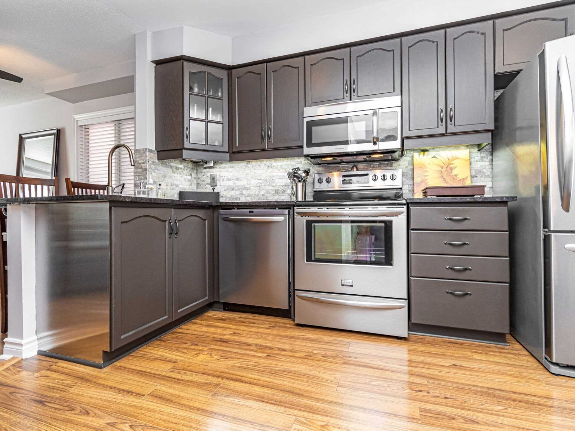 Granite Counter Stainless Steel Appl Breakfast Bar