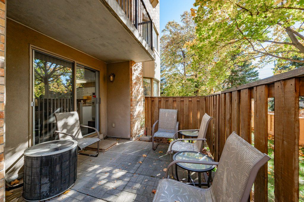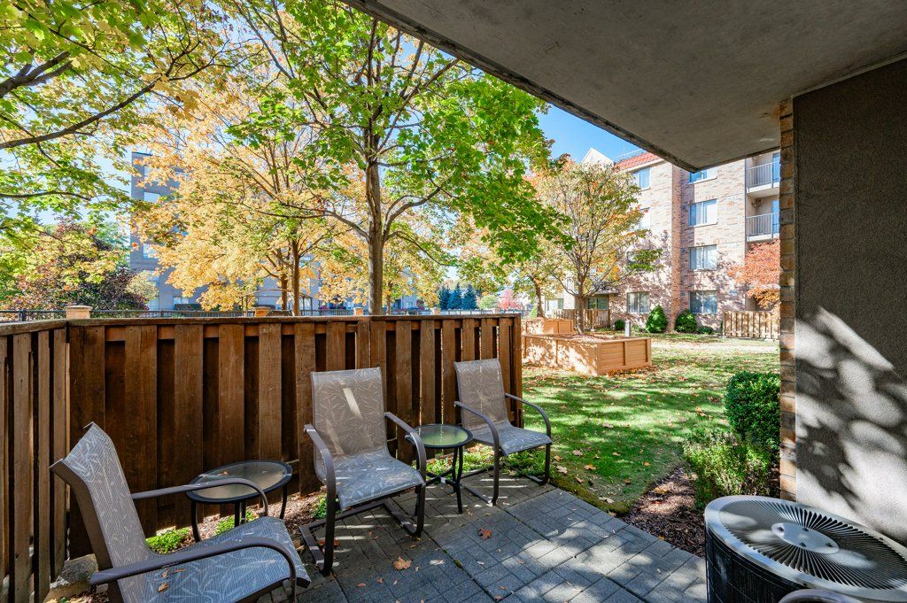 Extremely well maintained first floor unit with Open concept Kitchen/living room with a wonderful outdoor private sitting area with beautiful Trees. Generous spacious floor plan includes 2 bedrooms 2 bathrooms with insuite laundry.