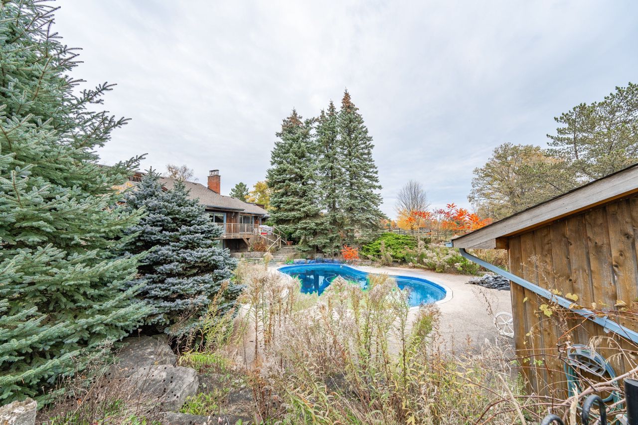 Discover Rural Serenity in this 10-Acre property nestled in the heart of rural Burlington. This property is a hidden gem offering a unique blend of tranquility & recreational opportunities. With its spacious 2100 sq ft bungalow built in 1978, finished from top to lower level with convenient walk-out, an inviting inground pool, double garage, & a generous 24x40 building with garage doors, this property is a paradise for those seeking a peaceful retreat with ample space for all-season activities. Despite its rural charm, this property is conveniently located minutes away from essential amenities. Access to GO trains & major highways ensures seamless commute to nearby cities. Shopping centers, schools & recreational facilities are also easily accessible. The proximity to the Bruce Trail and the equestrian farms offers opportunities for hiking, horseback riding and exploring the great outdoors. Golf enthusiasts will appreciate the nearby golf courses, providing endless entertainment!