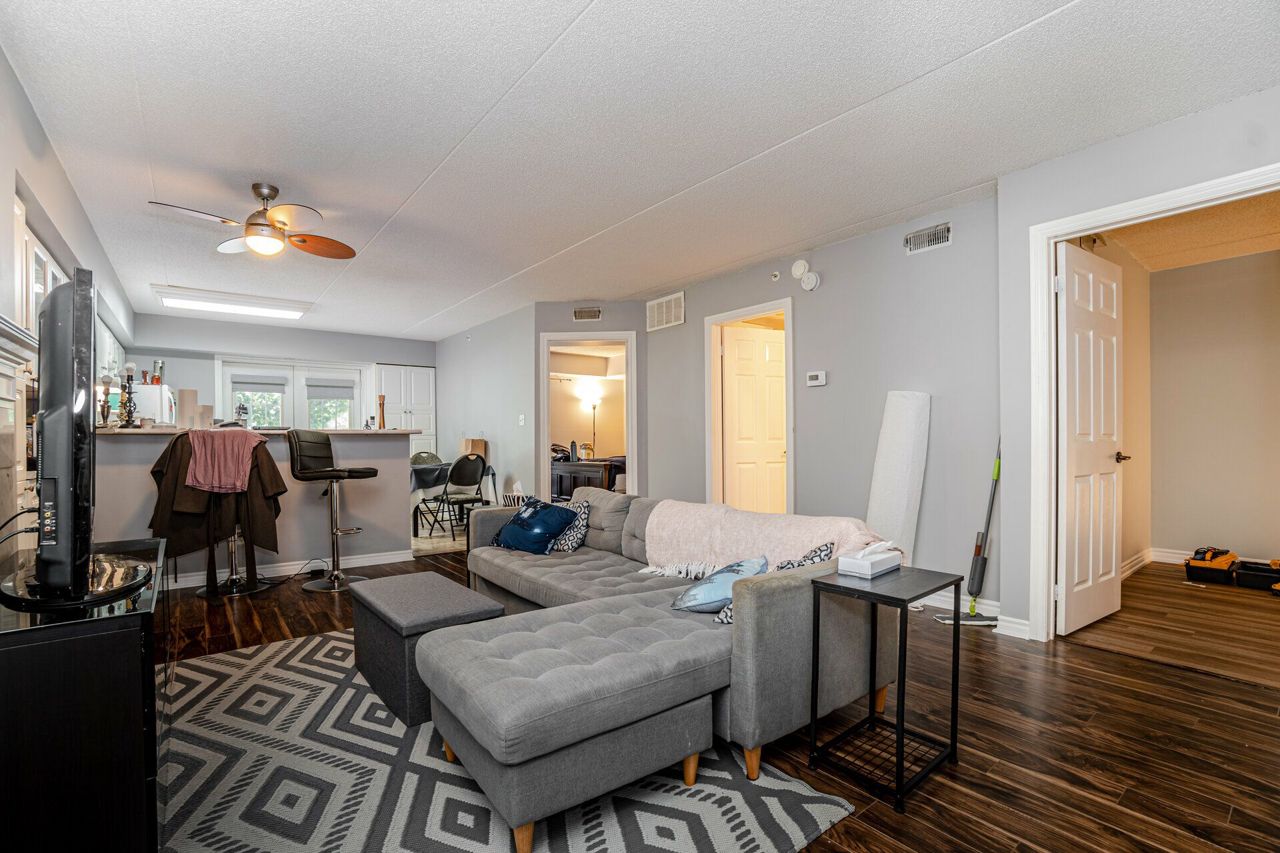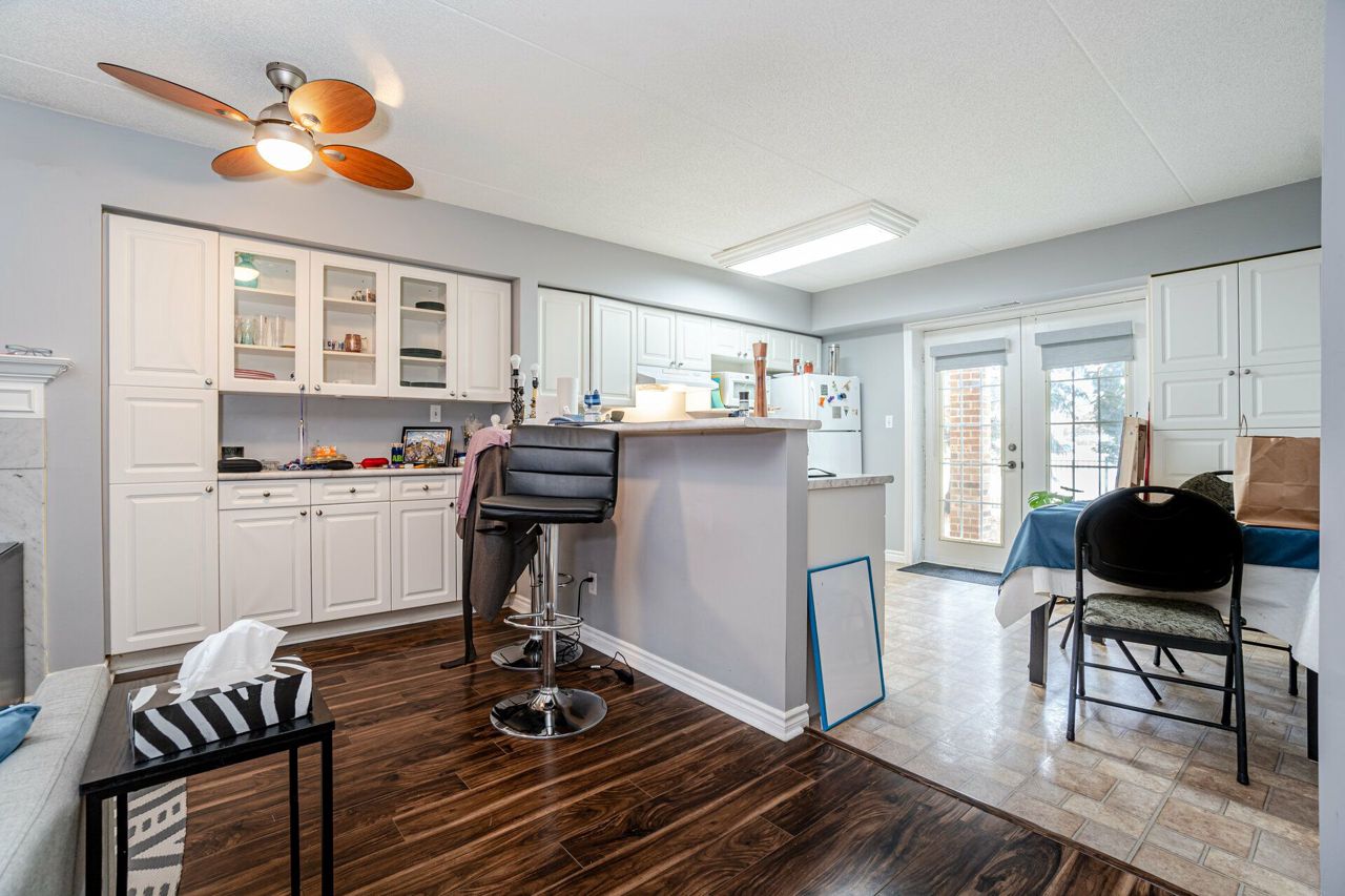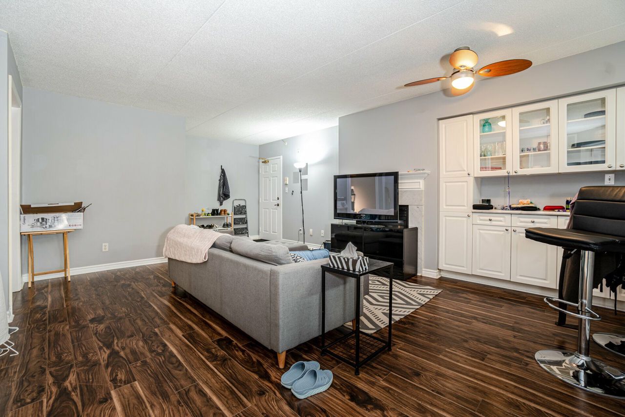 Turnkey Investment, 2 Bedroom Condo in a low rise building! AAA tenants in place until July 1 2024. Get a head start on your investment or mortgage paydown. Convenient Ground Floor Location. Open Concept Living And Dining With Laminate Flooring throughout, Gas F/P, Custom Built-In Cabinets, Eat-In Kitchen With Breakfast Bar And Walk-Out To Patio. Good Size Master Bedroom. Ensuite Laundry. 1 Underground Parking Space And Locker.Includes; Fridge, Stove, Washer, Dryer, Microwave, and window coverings. Close to Schools, shops, restaurants and parks.
