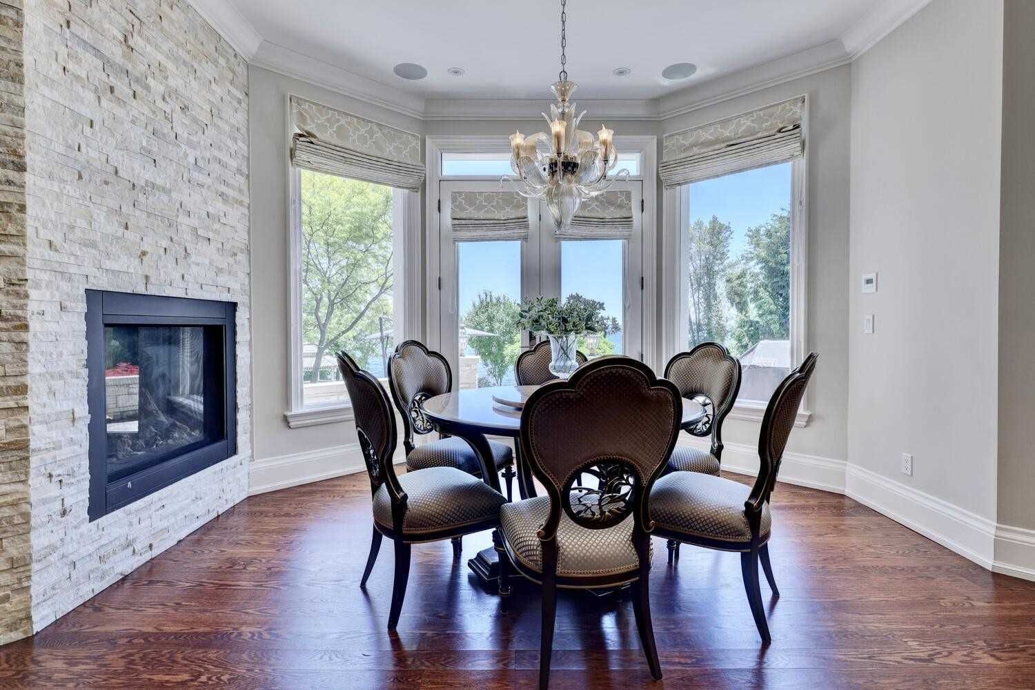 Hardwood Floor Stone Fireplace W/O To Water