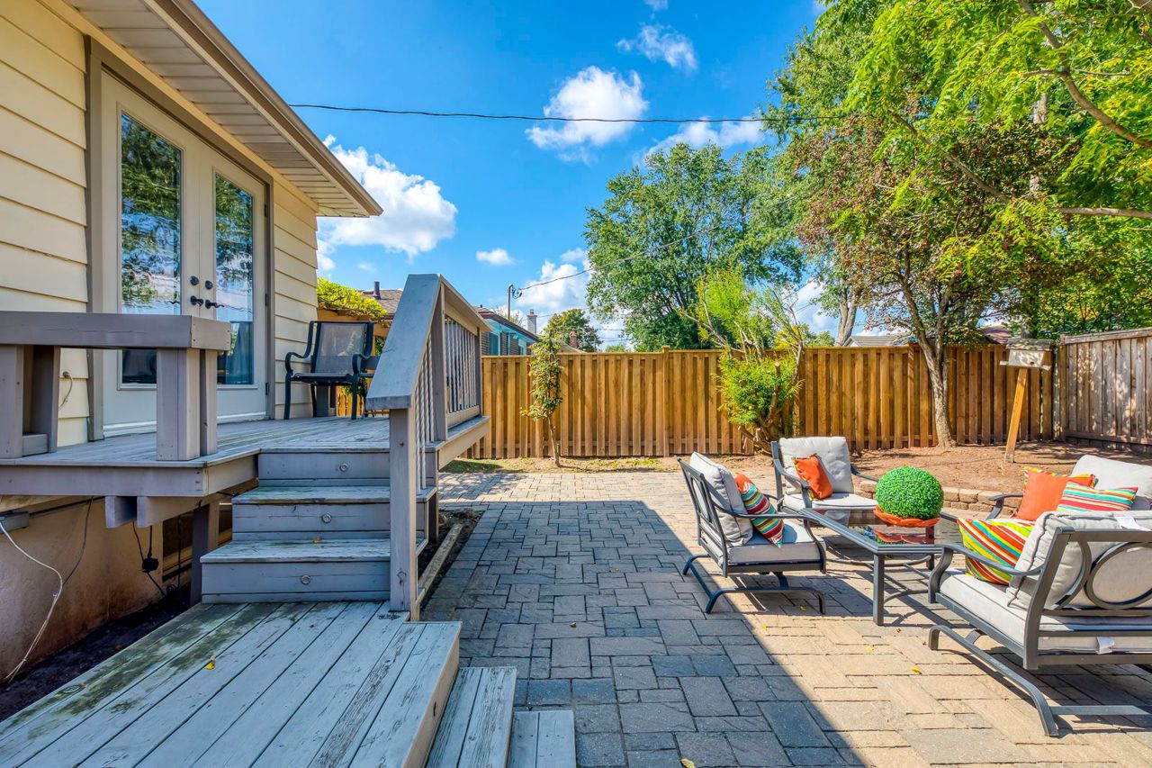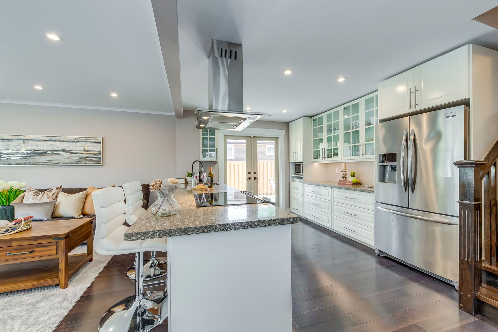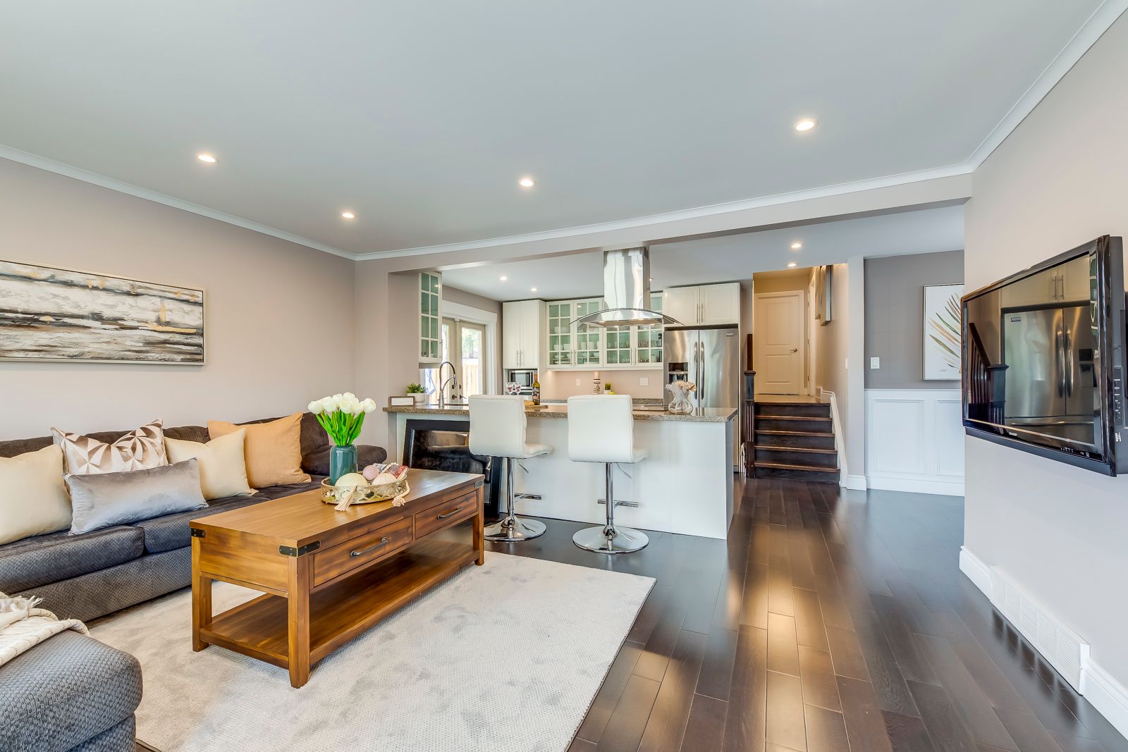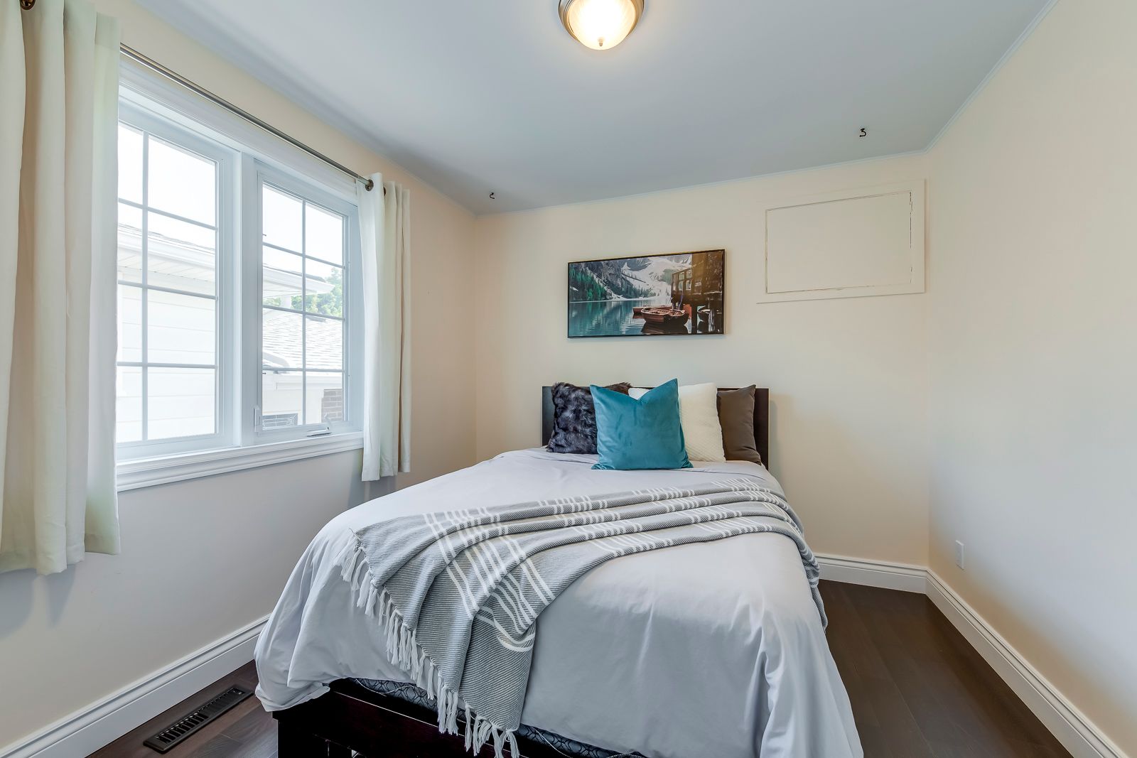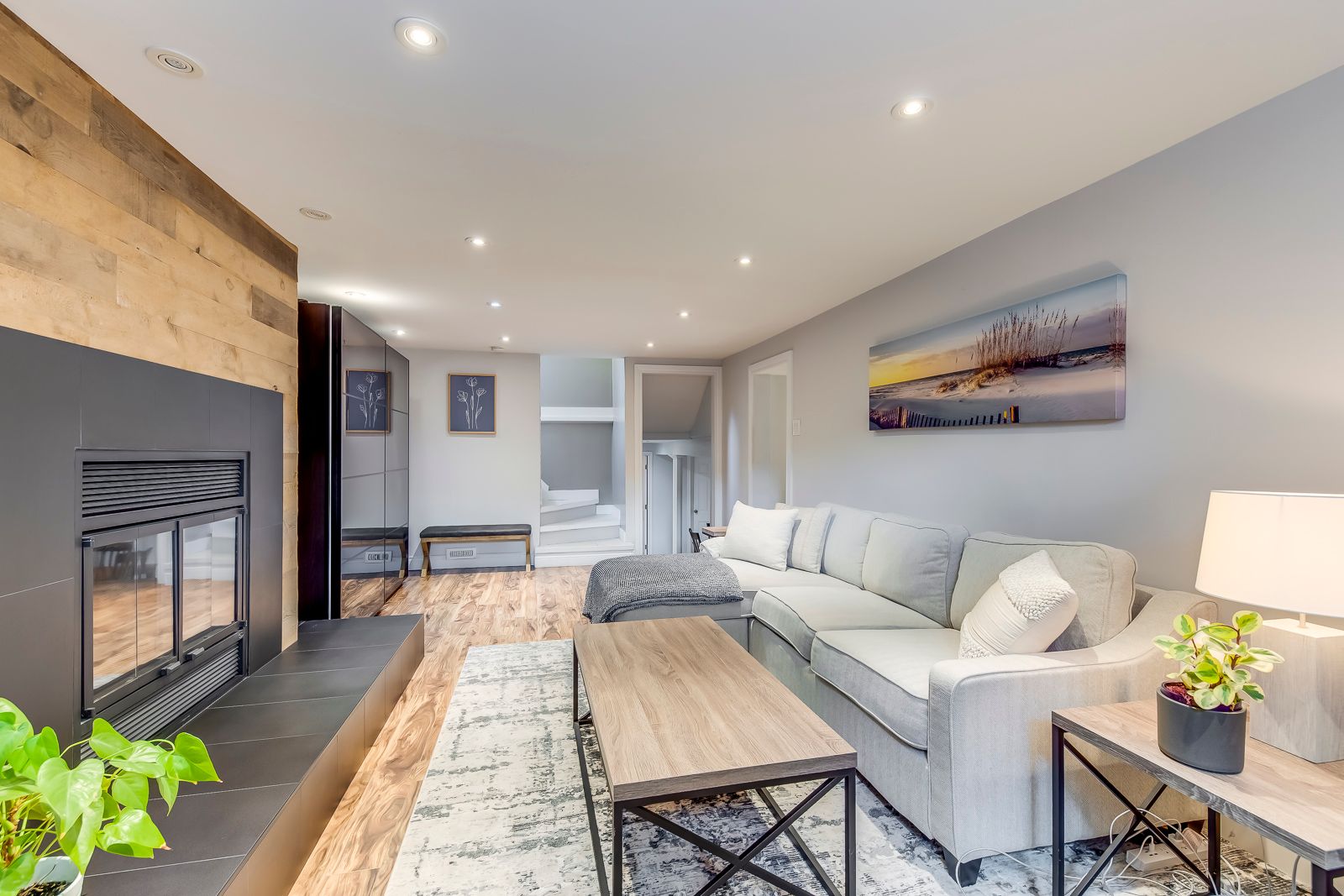 Modern renovated, spacious open concept 4 level backsplit in a young family friendly neighbourhood. 3+2 bdrms & 1+1 kitchens w/sep entrance to 2 bdrm extended family suite. Hardwood floors, modern trim, storage, 2 laundry units. Mature area of parks, shopping, schools, hwy & GO access & ample parking.Interlock brick surrounding bright private entertainers backyard & garden w/shed storage.