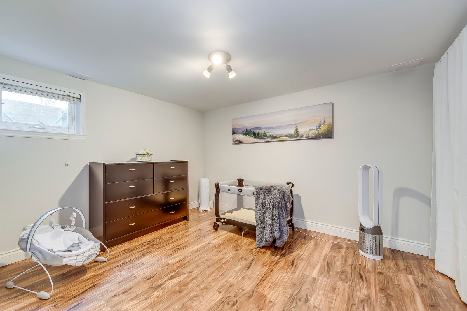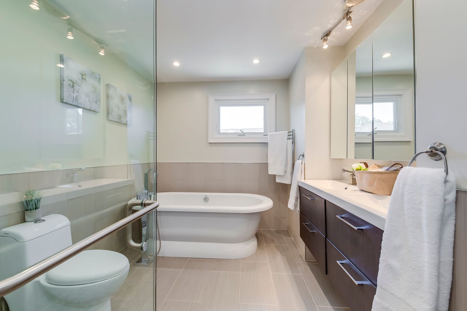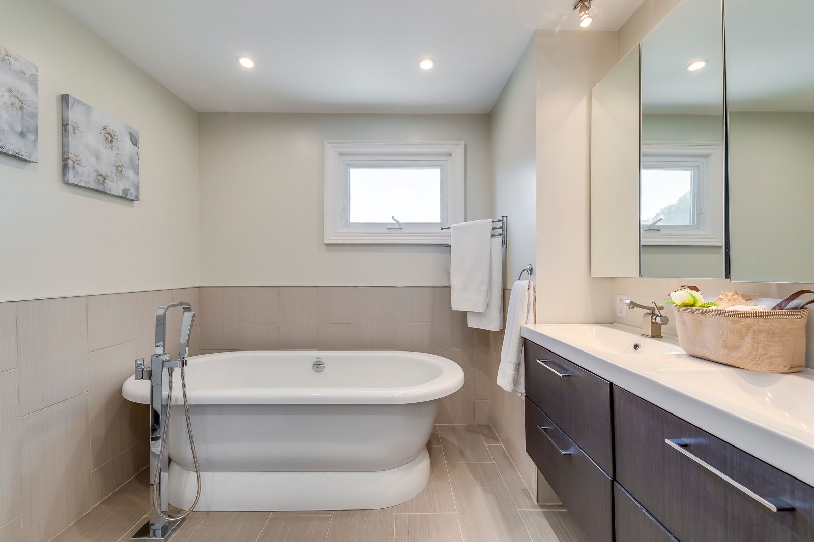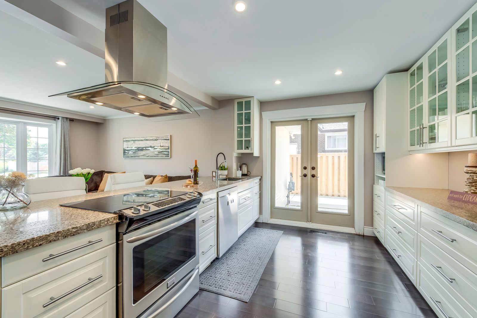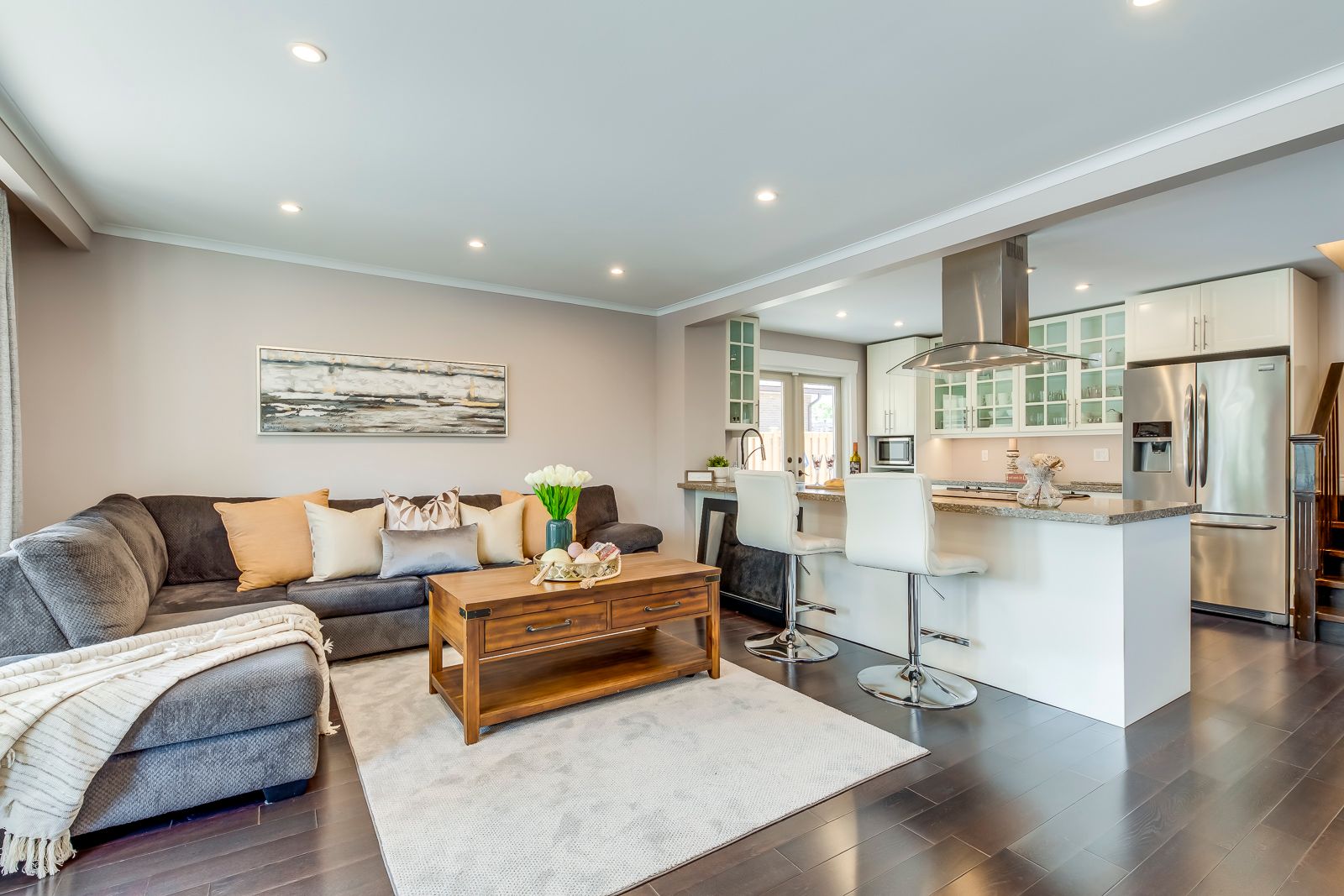 Modern renovated, spacious open concept 4 level backsplit in a young family friendly neighbourhood. 3+2 bdrms & 1+1 kitchens w/sep entrance to 2 bdrm extended family suite. Hardwood floors, modern trim, storage, 2 laundry units. Mature area of parks, shopping, schools, hwy & GO access & ample parking.Interlock brick surrounding bright private entertainers backyard & garden w/shed storage.