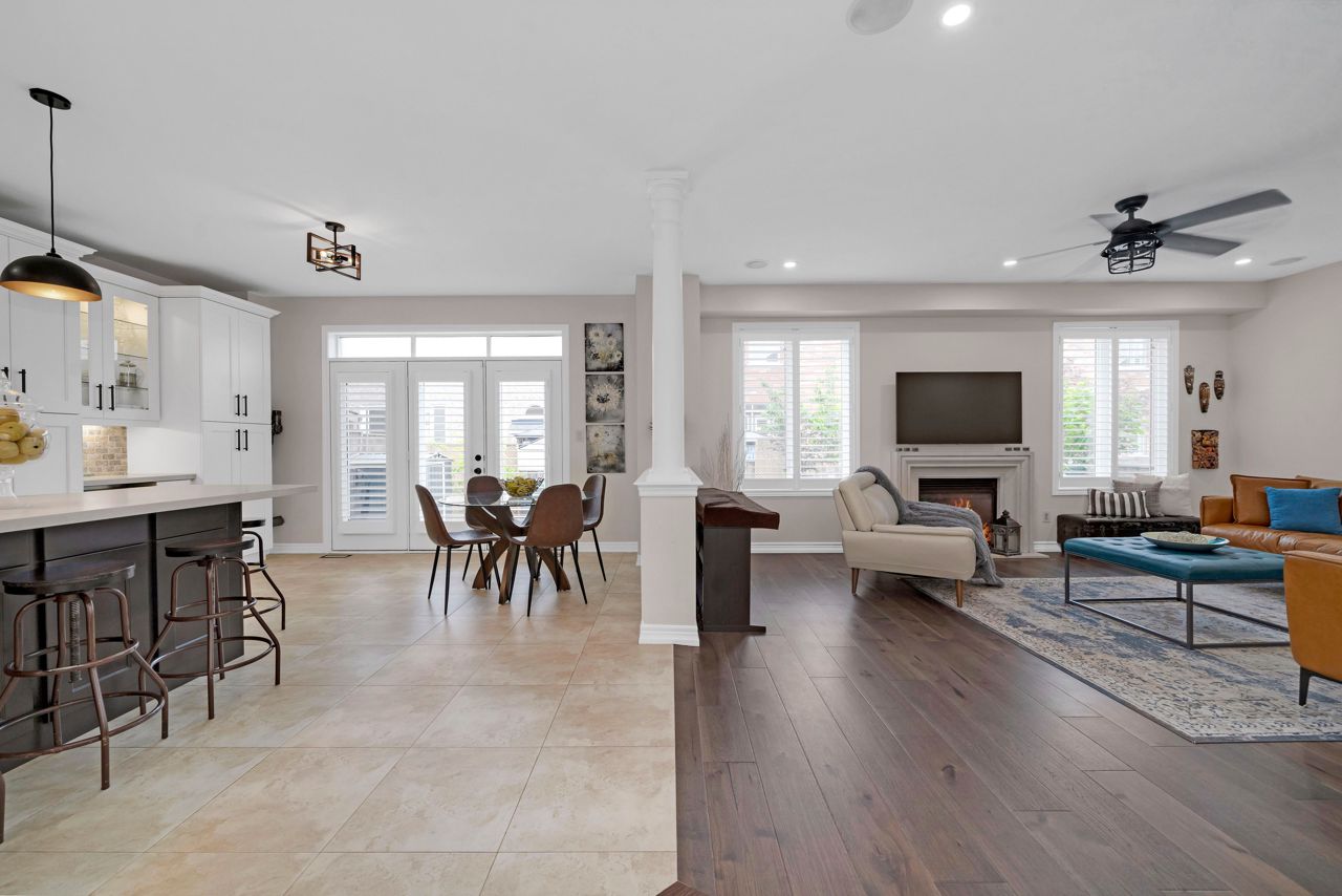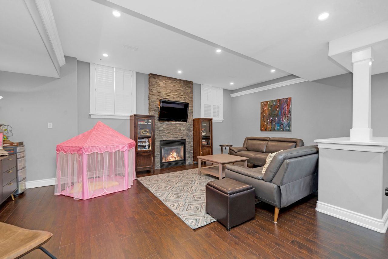 Oriented Street with a real feeling of Community. TRUE PRIDE OF HOME OWNERSHIP! Hardwood Staircase, Engineered Hardwood flooring, California Shutters, Aria Vents, updated Light Fixtures, Freshly Painted and EXTRA HIGH Ceiling in the Basement add to a long list of upgrades. AMAZING Eat-in Kitchen w/ HUGE Centre Island, S.S