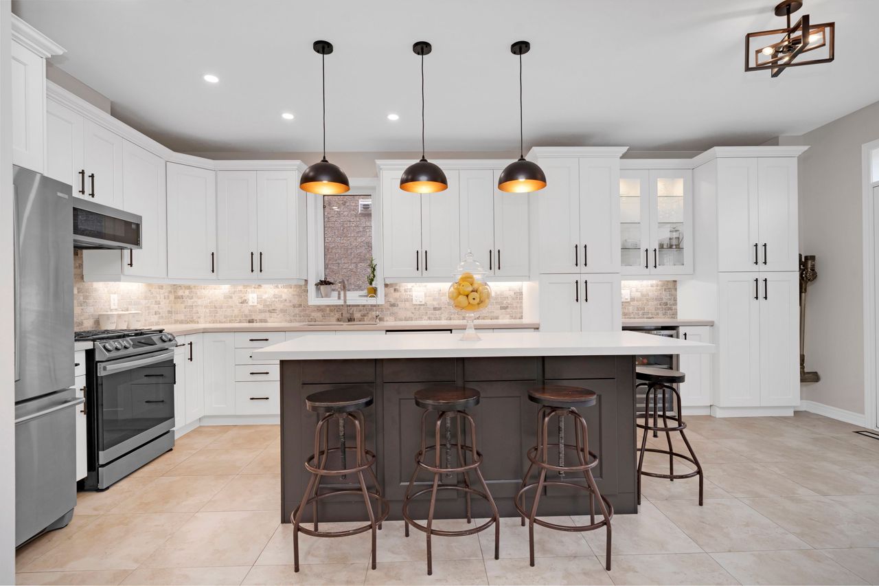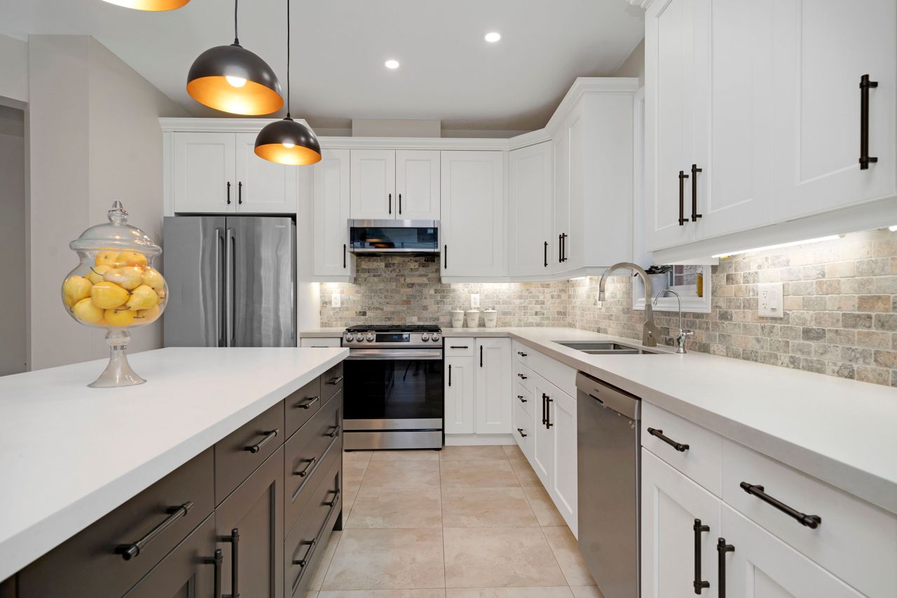 Appliances, Gas Stove, Quartz Counters, Undermount Sink, Pot Lights and extra cupboards. Feat