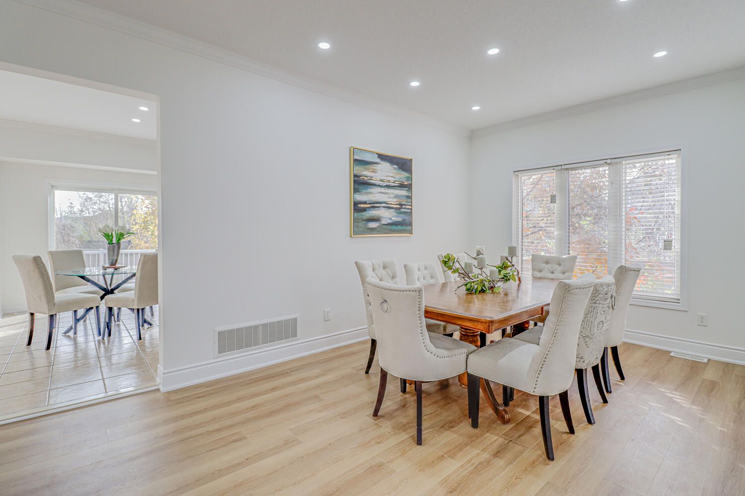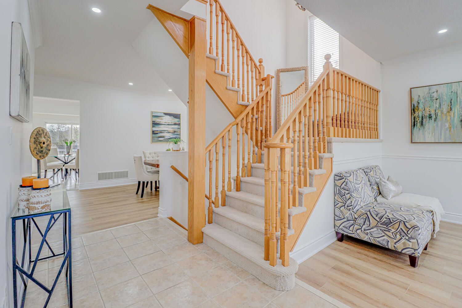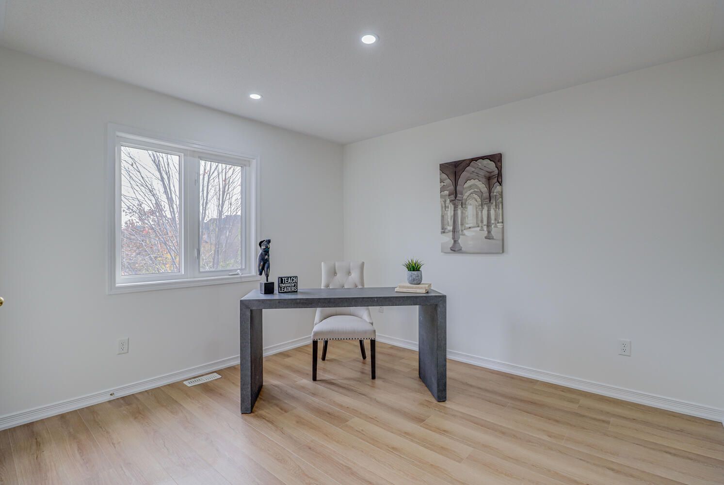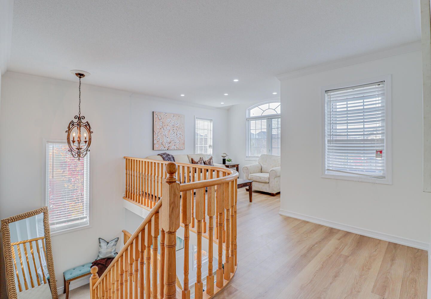 Upgrade to a Ravine Rimmed Haven with no neighbours overlooking into your home! The brick-stone detached home boasts 9ft ceilings on the main floor featuring new laminate flooring in family room, a large formal dining area & library. A new quartz countertop gleams in the efficient kitchen. New potlights brighten the freshly painted home. The same finishes grace expansive living spaces on the upper level featuring a separate large office area, 4 spacious bedrooms & 2 large washrooms. The home exudes warmth as ample natural light dances through every window. In the coveted Alton Village, this home combines functionality with elegant design, for the discerning buyer. The home is spotless & move in ready. In a desirable school district of Burlington, there is instant access to the 407 & Go Bus Terminal. A short drive away are Appleby Go Station & QEW. |The neighbourhood has plazas, big box & grocery stores. The Niagara Escarpment & Bronte Creek Trail nearby, offer plenty to do outdoors