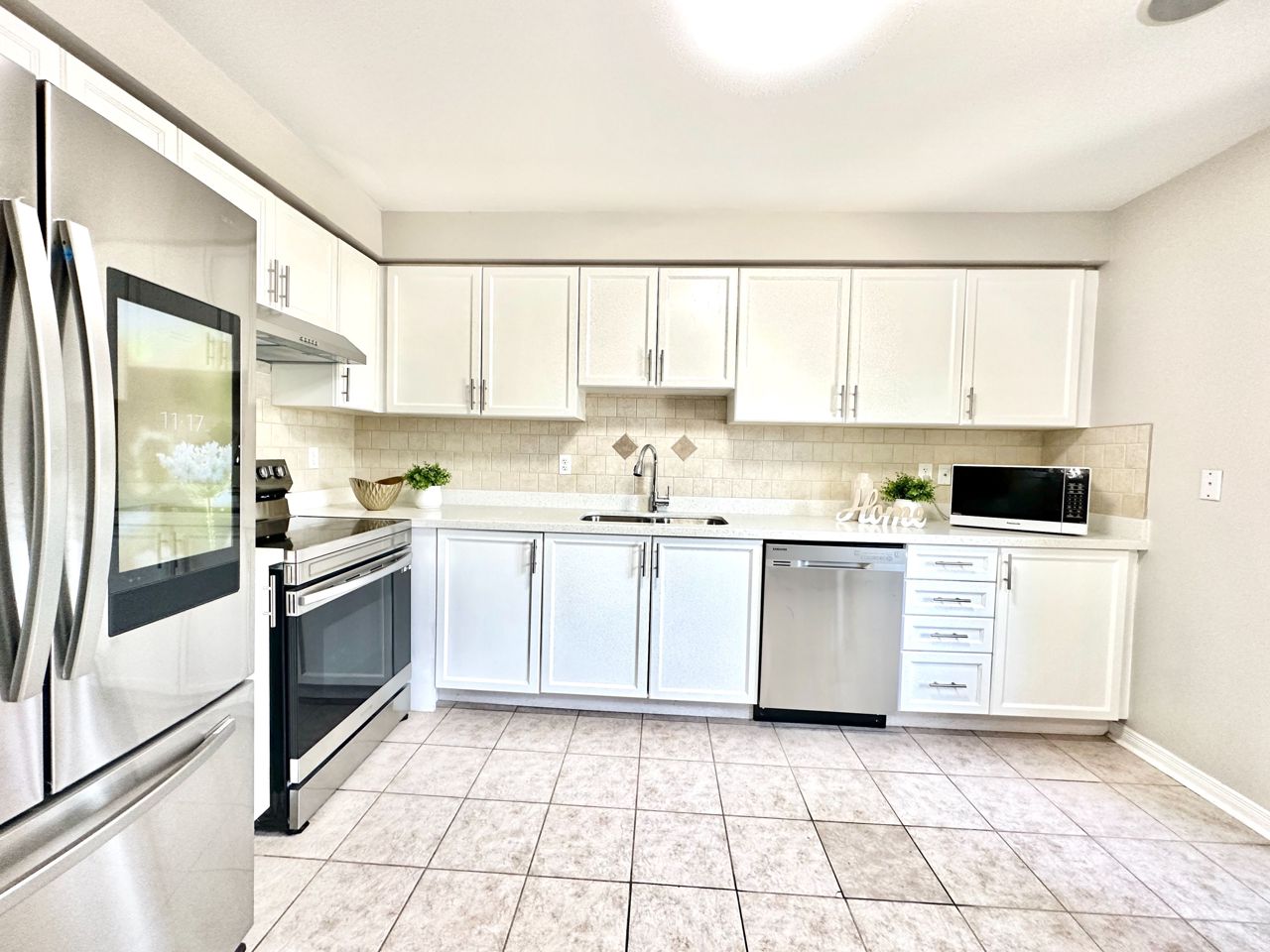 Tile Floor Stainless Steel Appl Quartz Counter