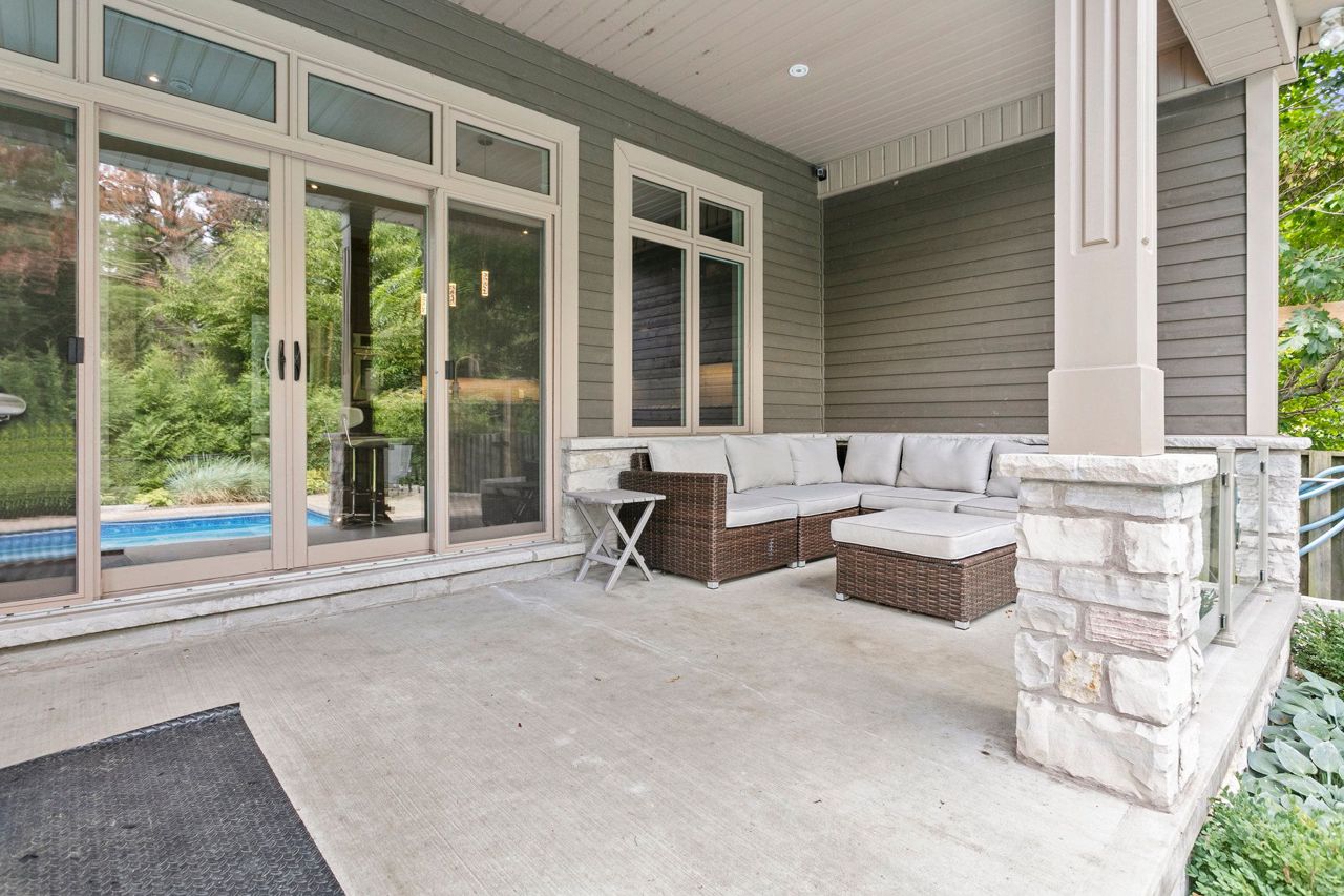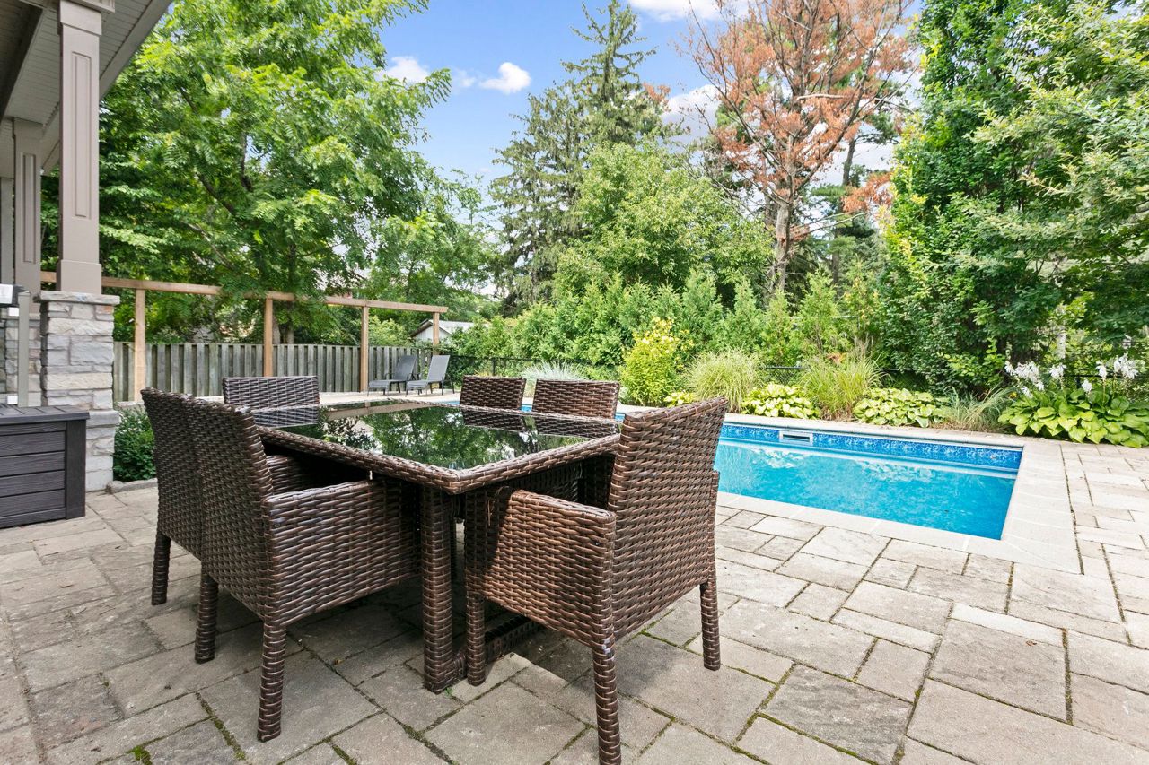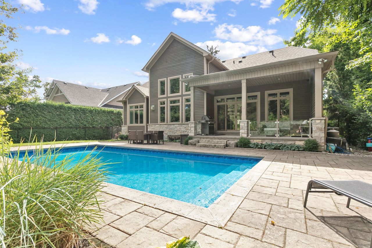 Welcome to Aldershot Village. An exclusive pocket of the beautiful Burlington waterfront. This spectacular scenic oasis is full of tree lined streets, trails, water and gorgeous custom homes. This customer designed and exclusively built home boasts over 4000 square feet of functional living space and includes a main floor primary bedroom, cathedral ceilings, a second floor loft iving room, a main floor office, beautiful mud room, a Master Chef's kitchen and a private backyard. The covered porch and salt water pool provide the perfect backyard summer setting. This home features many upgrades including a newly renovated basement with surround sound speakers throughout, a custom gym, a premium bar for entertainment, and an additional bedroom perfect as an in-law suite and so much more. One of the bedroom in the basement is converted into exercise room.Custom design entertainment centre